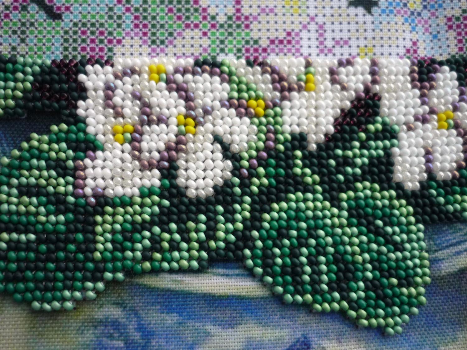 4 апреля 2015 Девочки, большое спасибо !!! Потихоньку продолжаю фиалку, не обходится без маленьких неприятностей... Кончился один цвет бисера , хотя куплено было по ключу...Хорошо, нашла такой цвет в своих остатках от прошлых вышивок. Да и бисер в голубых цветочках покрупнее, приходится уталкивать бисеринки на место. Зато очень радуют жёлтенькие сердцевинки - как натуральные! СветикСемицветик, alex1942, ЛАДОМИРА и 5 других сказали спасибо Поделиться сообщением Ссылка на сообщение