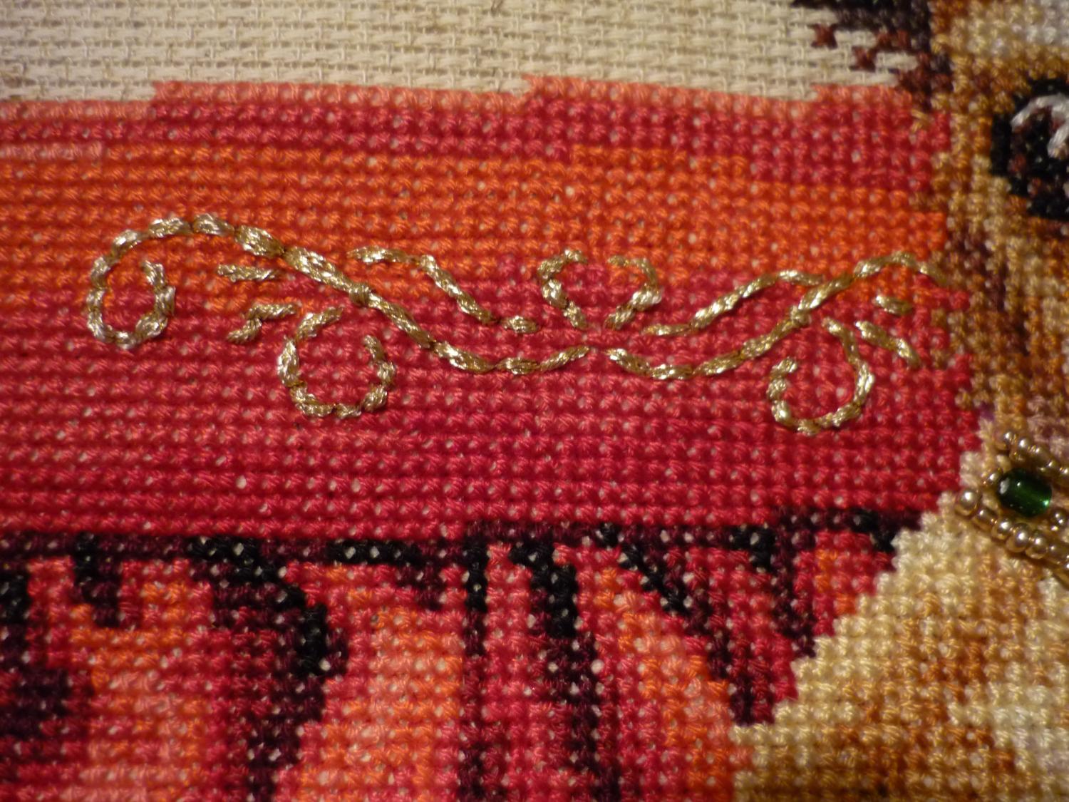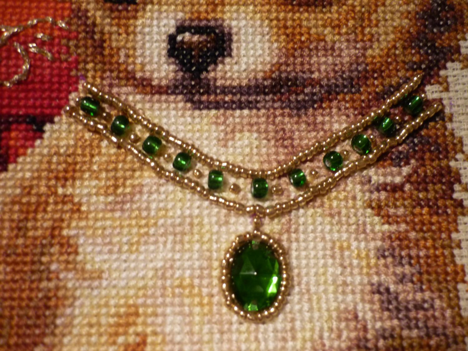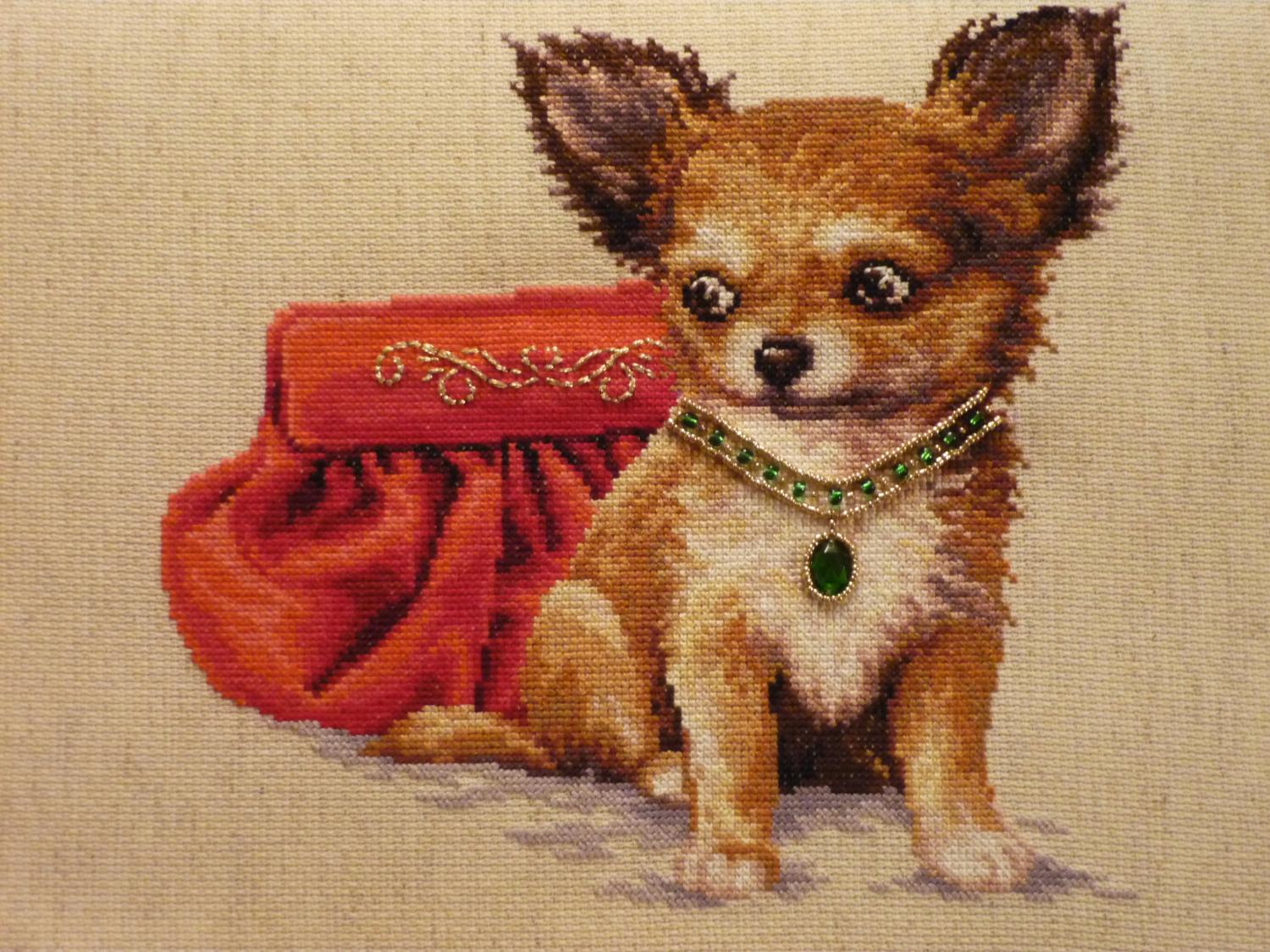 6 сентября 2015 Ура, готова собачка, что значит дождь на улице, сразу работоспособность поднимается Намучалась с украшательствами.. Золотая пасма из 12 нитей, выкладывается рисунок полной пасмой, тяжело,где-то получилось выкладная нить, где-то просто шов...да ещё надо смотреть, чтобы симметрично всё было( кстати, нитки этой в упор, остался маленький хвостик )Если распускать, то вообще не хватит... Про бисер уже написала в галерее... Обидно, что назвали набор "Наша ГЛАМУРНЕНЬКАЯ(!) девочка", золотой бисер - это ужас, какие-то обрезки, кусочки...смахнули в пакетик мусор со стола да и всё!Полное несоответствие названию набора!Да и цена у него в розницу немаленькая, за такие деньги можно и набор РТО взять с мулине DMC!Обязательно на выставке ФР подойду к стенду этой фирмы, пообщаюсь на счет бисера... В итоге ошейник вышивала целый день,выбирая более-менее ровные бисеринки, конечно, его не хватило( между зеленых бусин должно быть золотого больше).Зеленые бусинки тоже кривые, только стразик ровненький!Но это я так, поворчала, где ещё это сделать, как не у нас на форуме! Но всё-равно собачка радует, милашка! Nadinka-Blondinka, Каори, ЛАДОМИРА и 2 других сказали спасибо Поделиться сообщением Ссылка на сообщение