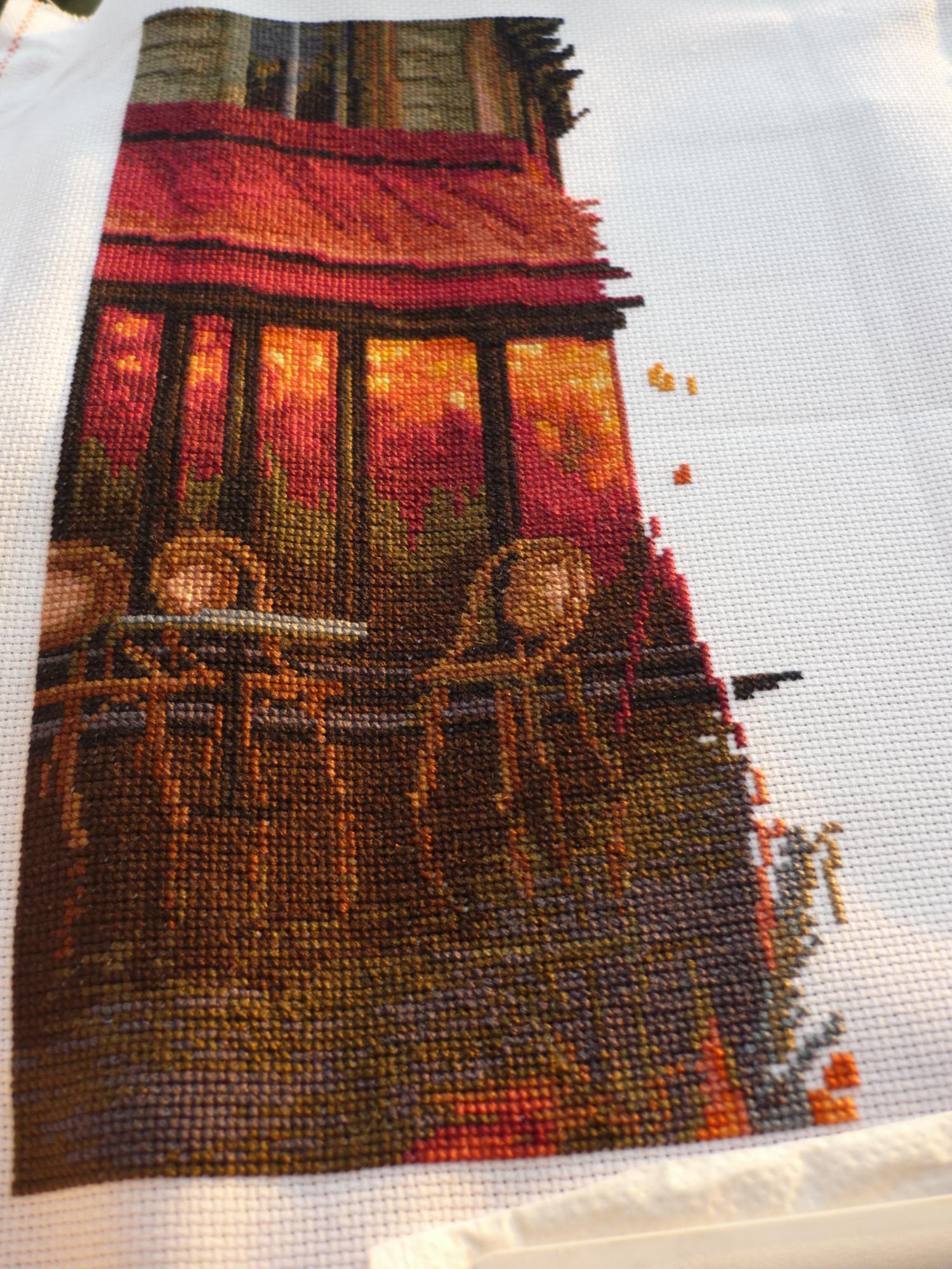 1 октября 2015 Всем привет! Как всегда, давненько не появлялась в своей темке, исправляюсь Немного продвинула котика от "Золотых ручек", вышивала его где-то в начале года, потом отложила было стало хотелось бы его, конечно, в этом году закончить! Дальше... начала вторую подушку от Вервако 727 Листопад № 2 здесь побольше зеленого и рыжего цвета, поярче,да и вообще, мои любимые дубовые листья! И ещё начала,не удержалась, набор от "Новой Слободы"- Кафе Брассери ,купила давно, сейчас решила,что пора- как раз по погоде! Канва 16,ниточки Анкор, размер 40на28 см. Схема очень понравилась,цветная, но не глянцевая, на двух больших листах, хорошо проработана,вышивается легко.Пока самое начало, темный угол,стульчики virineyalo, Nadinka-Blondinka, Наталья2013 и 8 других сказали спасибо Поделиться сообщением Ссылка на сообщение