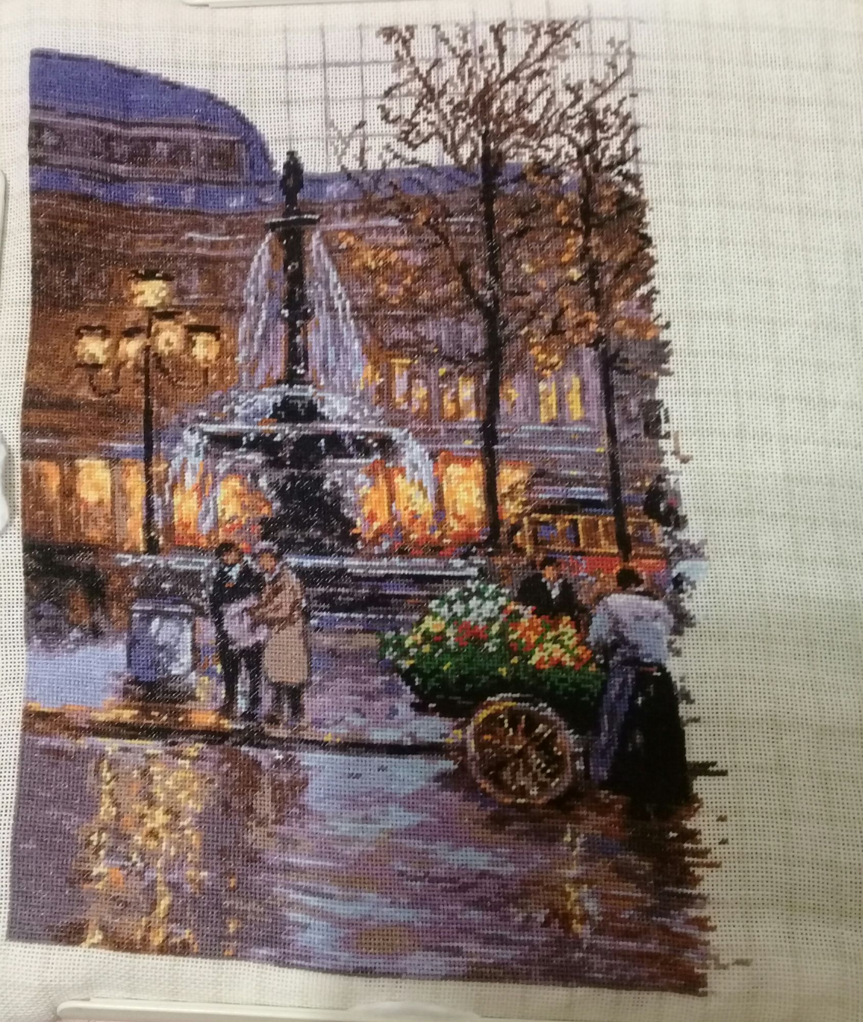 9 декабря 2019 Всем привет!Вспомнила,что разместив готовую работу в галерее,от радости забыла показать завершенный процесс работы! Вот,исправляюсь...короче,готов мой гобелен от Гобленсет.Уже подарен.Очень довольна и процессом,и результатом,работа вышивалась быстро,иной раз даже скучновато! Небольшой перекос исправила багетка,натянув работу на подрамник Ниток осталось ну очень много,действительно,в оригинальном Гобленсете щедрая комплектация,некоторых цветов хватит еще на один отшив.Так что,это точно мой не последний гобелен от Гобленсет,только конечно,дороговато....,но,что поделать! ---- И заодно покажу свой новый процессик.Уже зимний. Неожиданно для себя это "Матренин посад" с нанесенным рисунком,сам сюжет очень милый и приятный,но исполнение...это просто ужас какой-то,значки конкретно сливаются ,тяжело разобрать,где какой цвет!Попросила производителя прислать графическую схему,буквально через пару часов она уже была у меня.Сначала дело пошло веселее,но отшив кусочек,поняла,что графическая схема и сама канва с нанесенным рисунком различаются,на канве все шире и смещено на клетку,получается некрасиво...Тем более,насколько знаю,рисунок после стирки не смывается.Вот бы "Матрениному посаду" поучиться бы в нанесении у китайцев,там все четко!В итоге отложила я эту канву и взяла обычную с люрексом,а вышиваю по присланной схеме.Теперь довольна! Не знаю,правда,зачем схватила канву с люрексом,здесь полная зашивка,но может снег вышью полукрестикомда и просто приятно вышивать с блестючкой)). Да,размер небольшой,20 на 20 см.После гобеленового стежка на 14 канве крестики прям огромными кажутся! Еще немного продвинула своего зимнего бисерного кота от "Золотых ручек",хотелось бы его закончить...Но его в след раз покажу... Путешественница, ОльгаВл, ОльгаТольна и 15 других сказали спасибо Поделиться сообщением Ссылка на сообщение