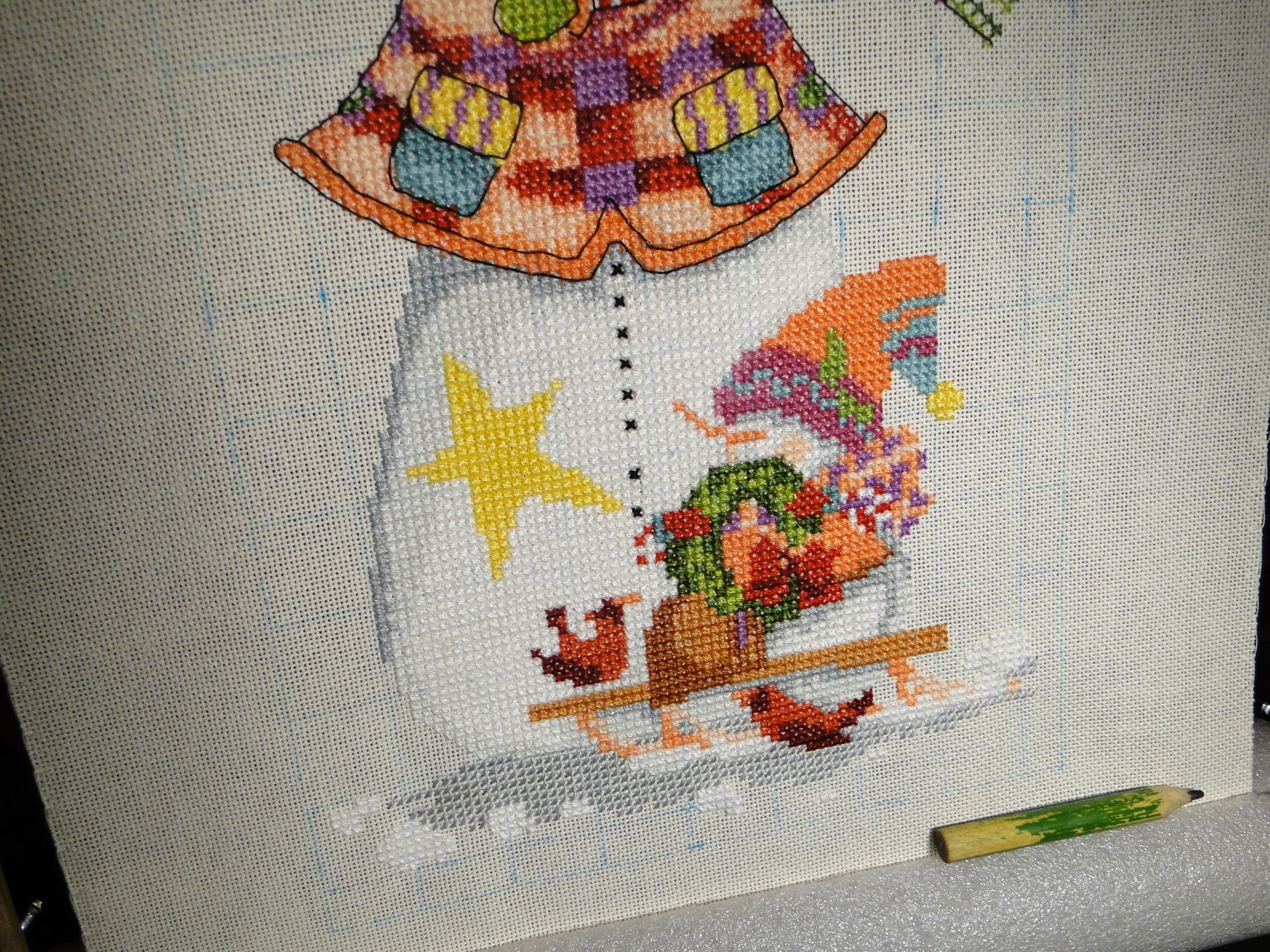 1 декабря 2015 Всем привет! Снеговик растет, уже почти половина: Закончился один цвет ниток, может и потерялись. Правда за 10 лет активного вышивания нитки я еще никогда не теряла. Но меня несколько дней не было дома (а ребенок, муж и его родители еще были), так что все может быть. К счастью, у меня остались нитки от предыдущего снеговика, а цвета там точно такие же Когда возвращалась домой, в поезде начала последнюю миниатюрку от Пермин (вышила примерно 1/3) Будет: Что есть: malenta, Хозяйка смешных зверей, marysolga и 7 других сказали спасибо Поделиться сообщением Ссылка на сообщение