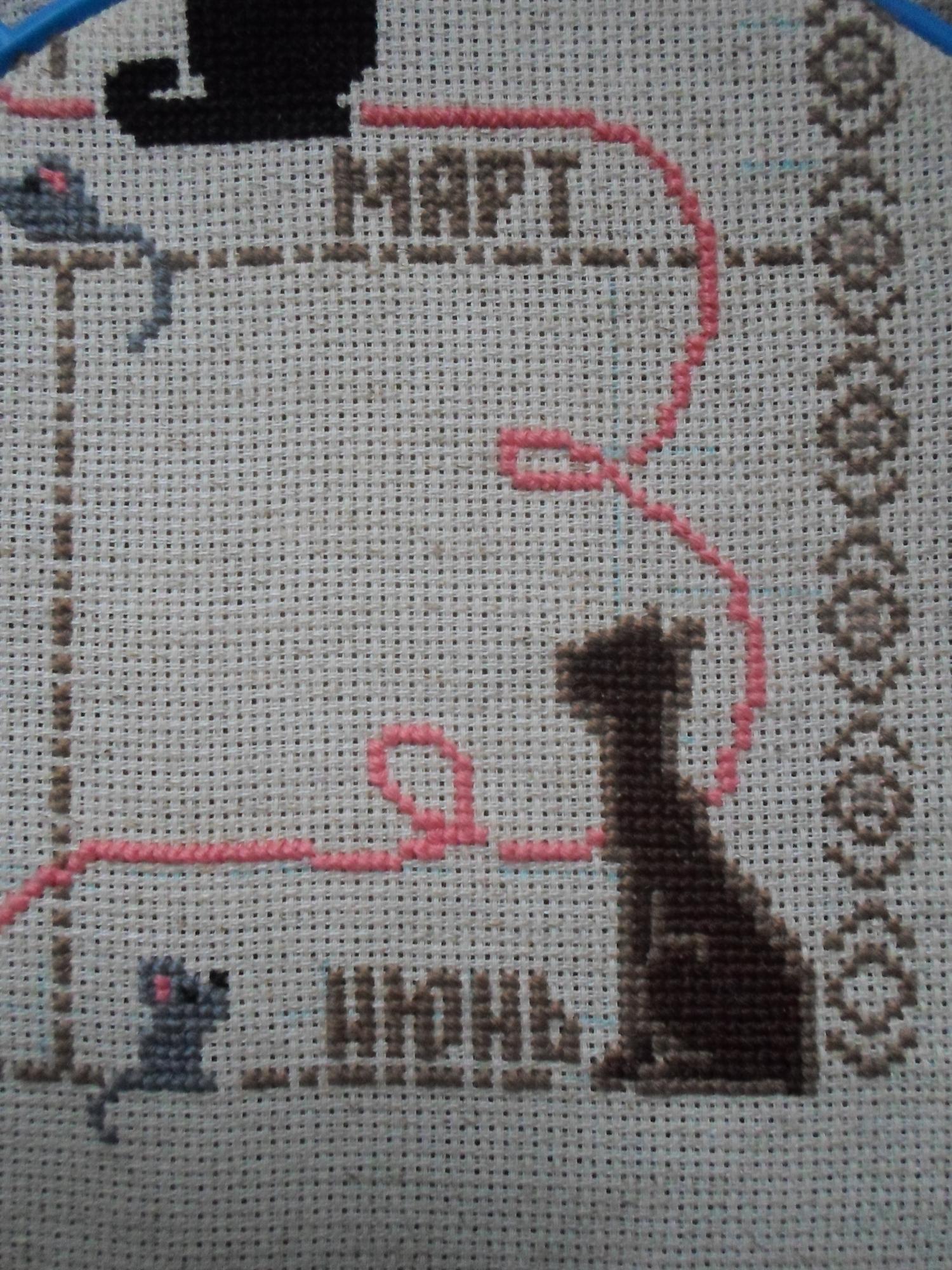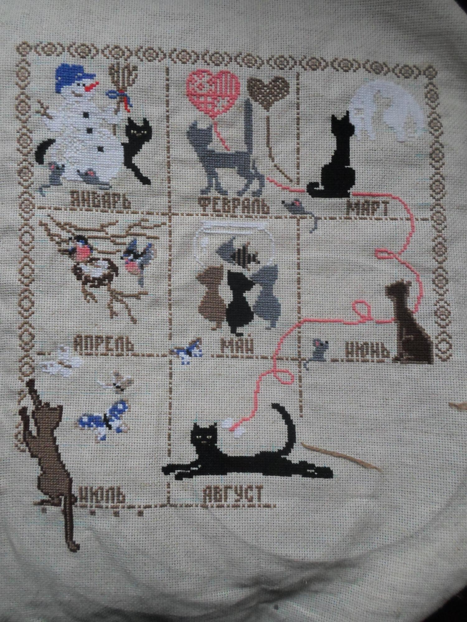 12 октября 2015 А я продолжаю свой кошачий календарь. Июнь уже готов, и кошак от июля появился, во всей красе! И впервые у Риолиса столкнулась с неприятностью - календарь тока наполовину вышит, а уже кончаются основные ниточки, св. коричневого цвета (которыми рамка шьётся и много чего еще). Причем зачем-то положено немерено белых и черных ниток... Я конечно нашла почти похожие ниточки в остатках отшитых наборов, но очень неприятный осадок остается Mushuk, alexa412, Mirella и 1 другой сказали спасибо Поделиться сообщением Ссылка на сообщение