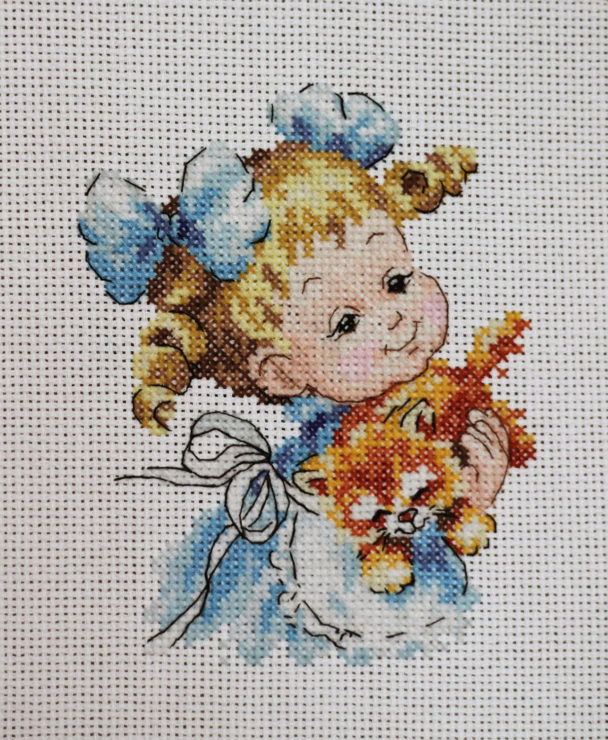 14 ноября 2015 Привет всем! Присоединяюсь к вам, с отдыхалочкой от Чудесной иглы 35-20 "Ты мой маленький!". Вышиваю я ее в подарок, для одной девочки, которая очень любит все милое и маленькое, следит за моими вышивками и, конечно же, обожает котят. К тому же, похожа на девочку, изображенную на картинке. Идеальное попадание Это будет подарок на Новый год, так что времени у меня вагон. Что касается набора. Первое знакомство с этим производителем. Раньше побаивалась приобретать, отпугивала небольшая цена Теперь же появился повод попробовать, уже не отвертеться. Посмотримммм... В комплекте 14 аида, дырочки крупные. Схема цветная, есть клеточки со значками, есть просто с цветовой заливкой. Однако, цвета контрастные, хорошо различаются, под линиями бэка тоже все видно. В работе используются 17 чистых цветов и 5 смешанных. Это порадовало очень, думала, в такой малышке их будет меньше. А так и шить интереснее, и переходы должны быть красивыми. Вышивается все крестом в две нити + бэк в одну и пять нитей (пять - только на глазах котенка). В общем, вот первые крестики: Mirella, soln33, Letto и 2 других сказали спасибо Поделиться сообщением Ссылка на сообщение