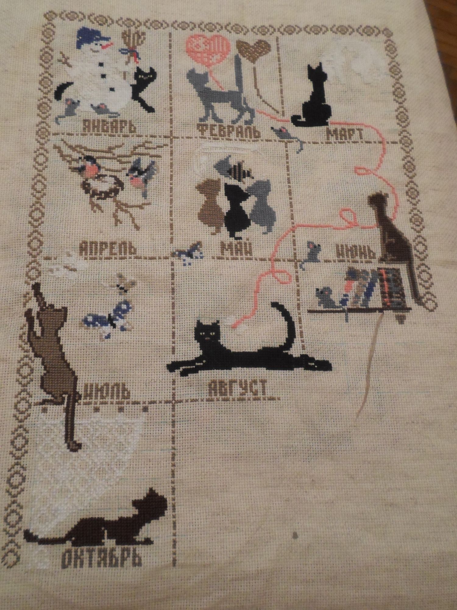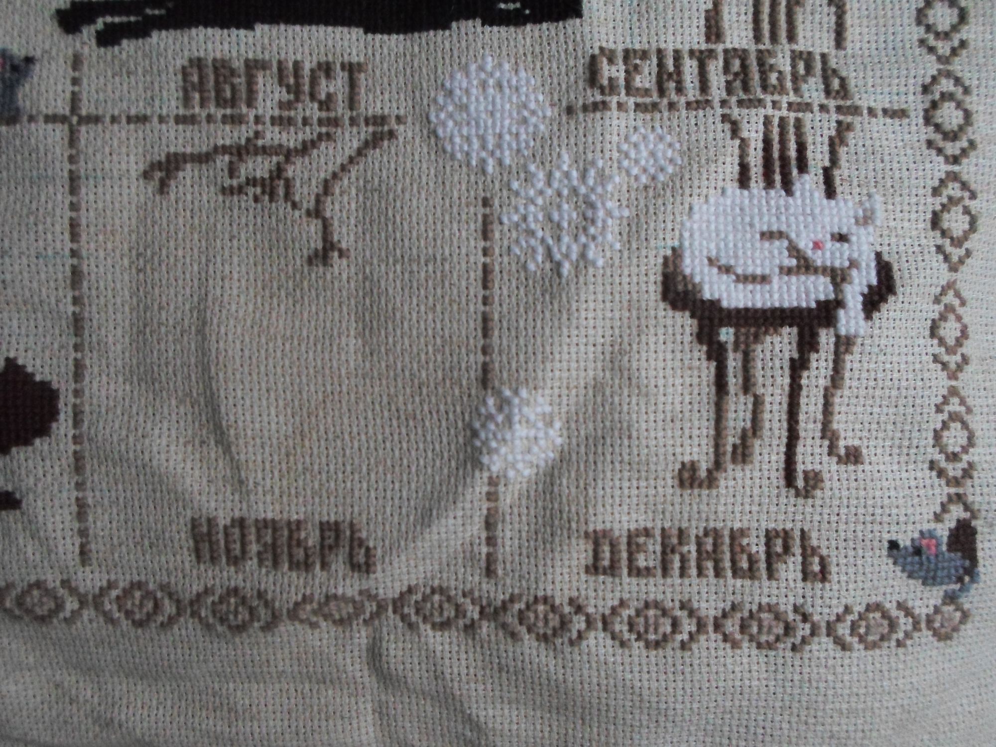 7 декабря 2015 До Нового года решила доделать все, что от жадности "понадкусывала". Привезла с дачи начатый календарь, дома быстрее получится доделать его. Было вышито 8 месяцев (на чем я и застряла еще в октябре где-то): А вот сентябрь и октябрь за выходные дошила. Осталось ноябрь и декабрь доделать - и Новый год встречаем с новым календарем)) Лаки, Mushuk, Esme и 3 других сказали спасибо Поделиться сообщением Ссылка на сообщение