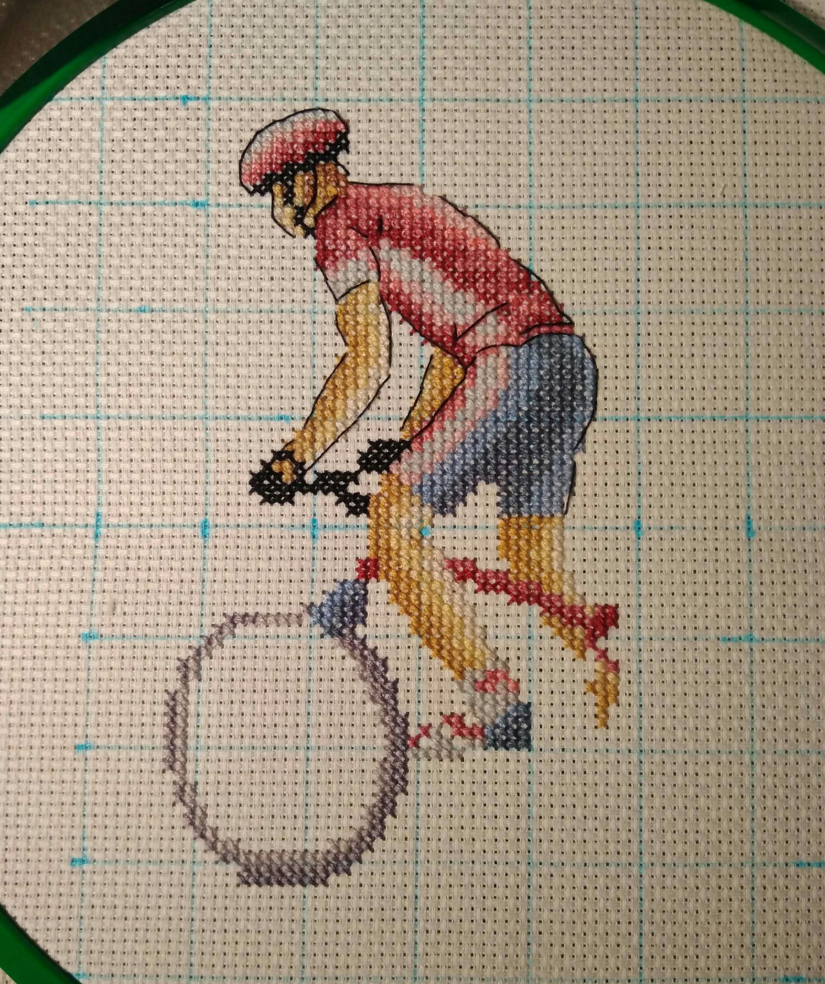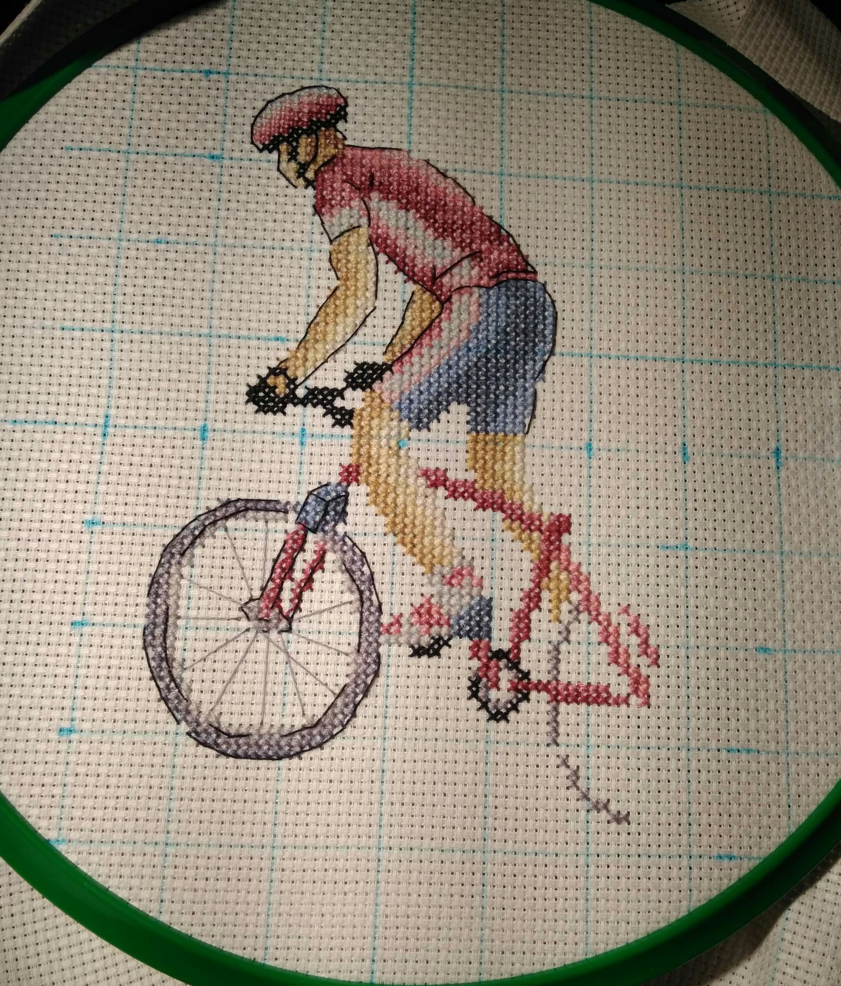 20 января 2018 2 часа назад, Lorans сказал: Девочки, привет! Я к вам . Готовлю маааленький подарок мужу на годовщину совместной жизни. Он у меня увлекается беговыми лыжами и велосипедом. Изначально была идея вышить обоих спортсменов, и как в фильме "Ёлки" задать вопрос: "Кто круче лыжник или велосипедист?". Но столкнулась с тем, что схему или набор с горнолыжником найти можно. А вот с беговыми лыжами я так и не нашла. Поэтому теперь вышиваю только велосипедиста. Буду как-то эту работу обыгрывать... Итак, Panna, Велосипедист. 19 цветов, Аида 14. Шьётся легко и быстро Если не возникнет никаких форс-мажоров, надеюсь скоро закончить Осталось немного. Пусть обойдётся без форс-мажоров Lorans сказал(а) спасибо Поделиться сообщением Ссылка на сообщение