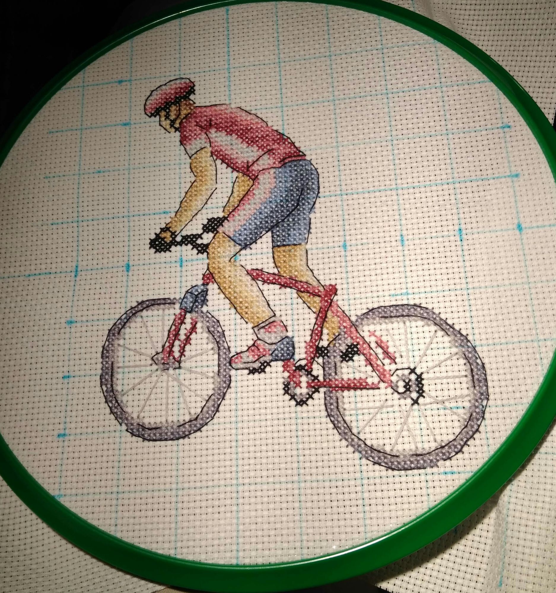 20 января 2018 Девочки, привет! Я к вам . Готовлю маааленький подарок мужу на годовщину совместной жизни. Он у меня увлекается беговыми лыжами и велосипедом. Изначально была идея вышить обоих спортсменов, и как в фильме "Ёлки" задать вопрос: "Кто круче лыжник или велосипедист?". Но столкнулась с тем, что схему или набор с горнолыжником найти можно. А вот с беговыми лыжами я так и не нашла. Поэтому теперь вышиваю только велосипедиста. Буду как-то эту работу обыгрывать... Итак, Panna, Велосипедист. 19 цветов, Аида 14. Шьётся легко и быстро Если не возникнет никаких форс-мажоров, надеюсь скоро закончить Лана05, Melawen, sakineva и 9 других сказали спасибо Поделиться сообщением Ссылка на сообщение