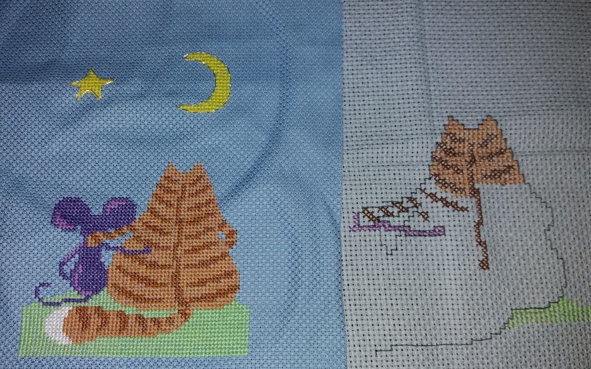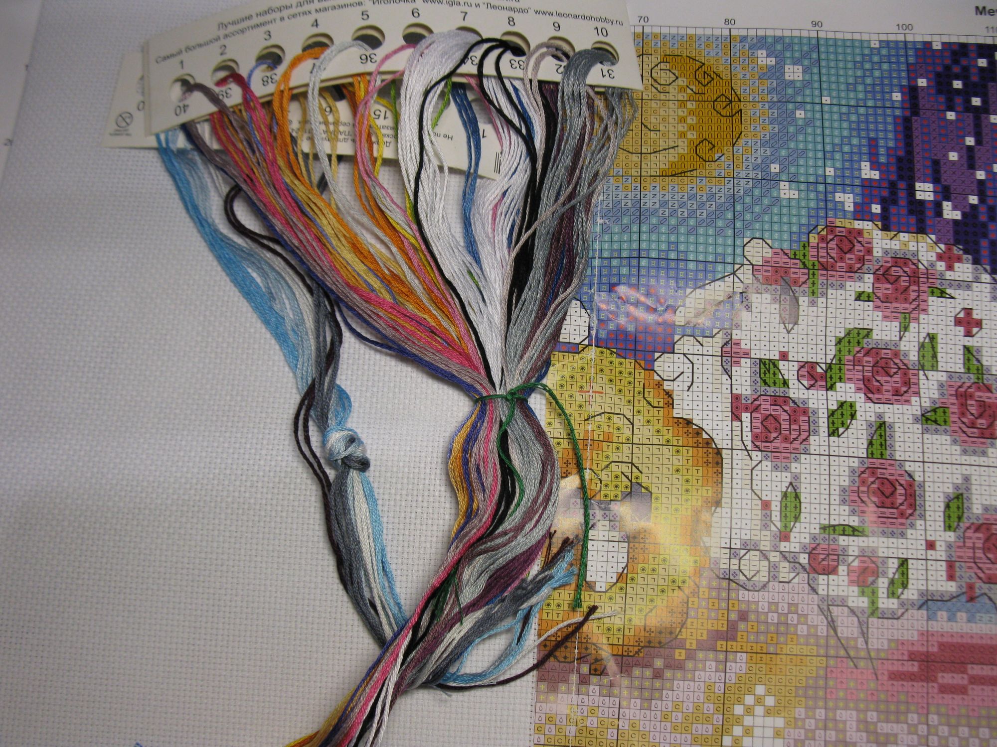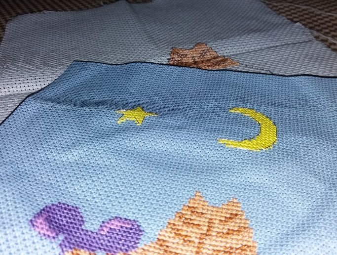 11 марта 2018 Лет десять назад мамой был куплен набор "Мечтания под луной" от Панны. Канва крупная (у меня получился 10-й каунт, но могла и криво измерить 11-й) и очень рыхлая. И да, по ней рекомендовалось вышивать именно в две нити. После первой же ошибки отложила вышивку в долгий ящик во всех смыслах слова. Недавно про него вспомнила, нашла, купила Гаммовскую канву пожёстче. Уже не вспомню, куда растащила часть ниток, но оставшиеся, хоть и были жутко помяты и коротко нарезаны, сохранились неплохо, не подряхлели. Убрала "квадратный" бэк с животных, серые нитки на луне и звезде заменила на золотистые. Alina1989, Seamy, Gold_taurus и 7 других сказали спасибо Поделиться сообщением Ссылка на сообщение
