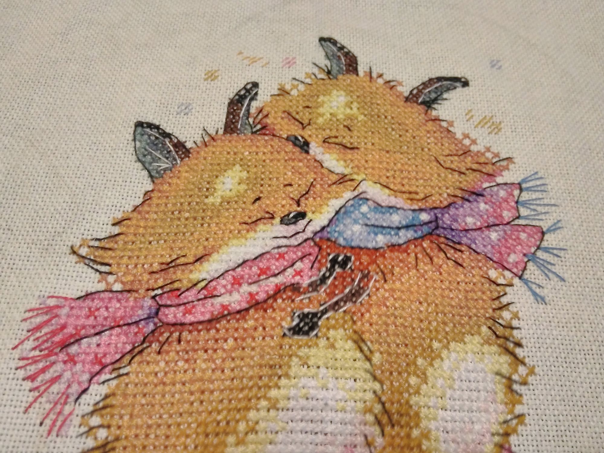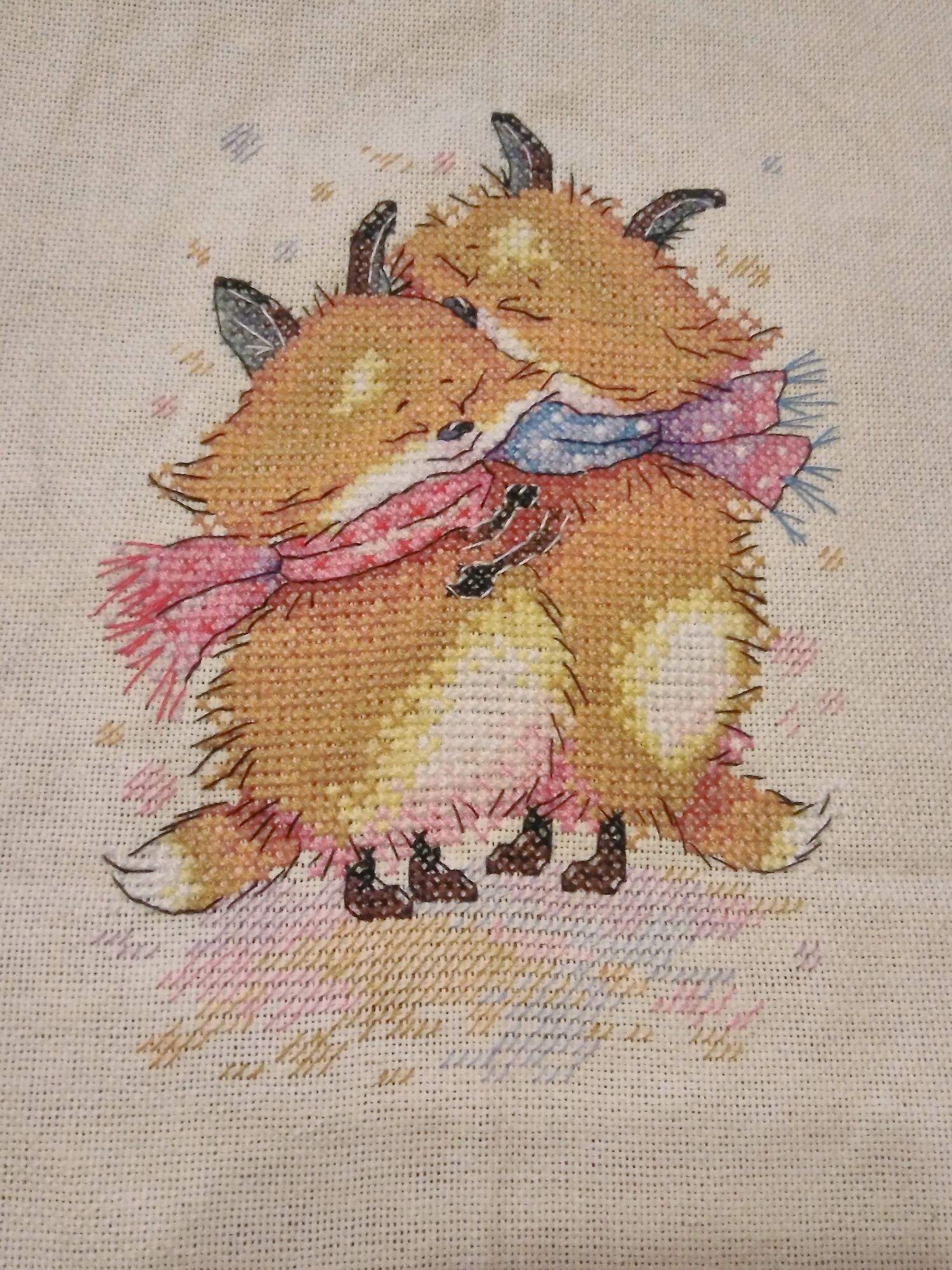11 ноября 2018 Всем привет! У меня новая миниатюрка - МП Студия М-351 под названием "Вместе теплее". Очень понравилась эта милипуська. Смотрю на неё - и тепло на душе. Увидела этих милых лисичек, и подумалось, что это я обнимаю свою "лампочку-дочку". Дочь выросла, вышла замуж и живёт далеко от нас. И, конечно, мне её очень не хватает. Так и хочется обнять её и прижать к себе. Для меня-то она всегда маленькая девочка Эта картинка - для неё. Вышивается достаточно быстро. 19 цветов + 3 бленда. Канву заменила на равномерку. Пока вышиваю - думаю над оформлением. Просто в рамку - не интересно. Хочется что-нибудь оригинальное. Но идеи пока не приходят . Так что я шью и думаю, думаю и шью.... mag, Killwale, soln33 и 12 других сказали спасибо Поделиться сообщением Ссылка на сообщение