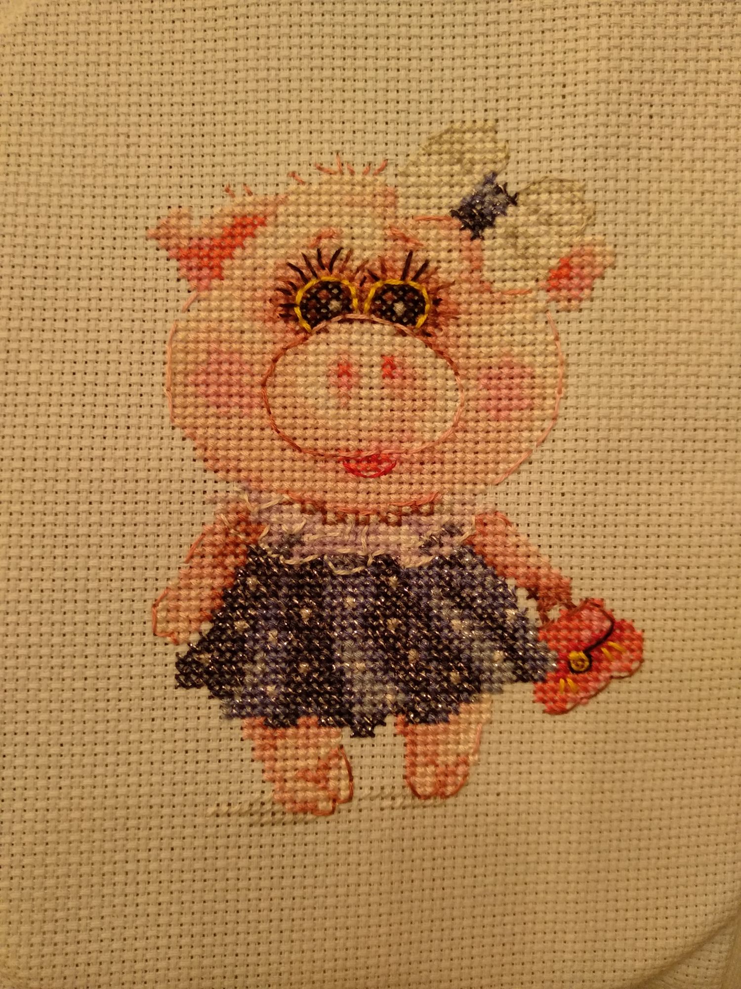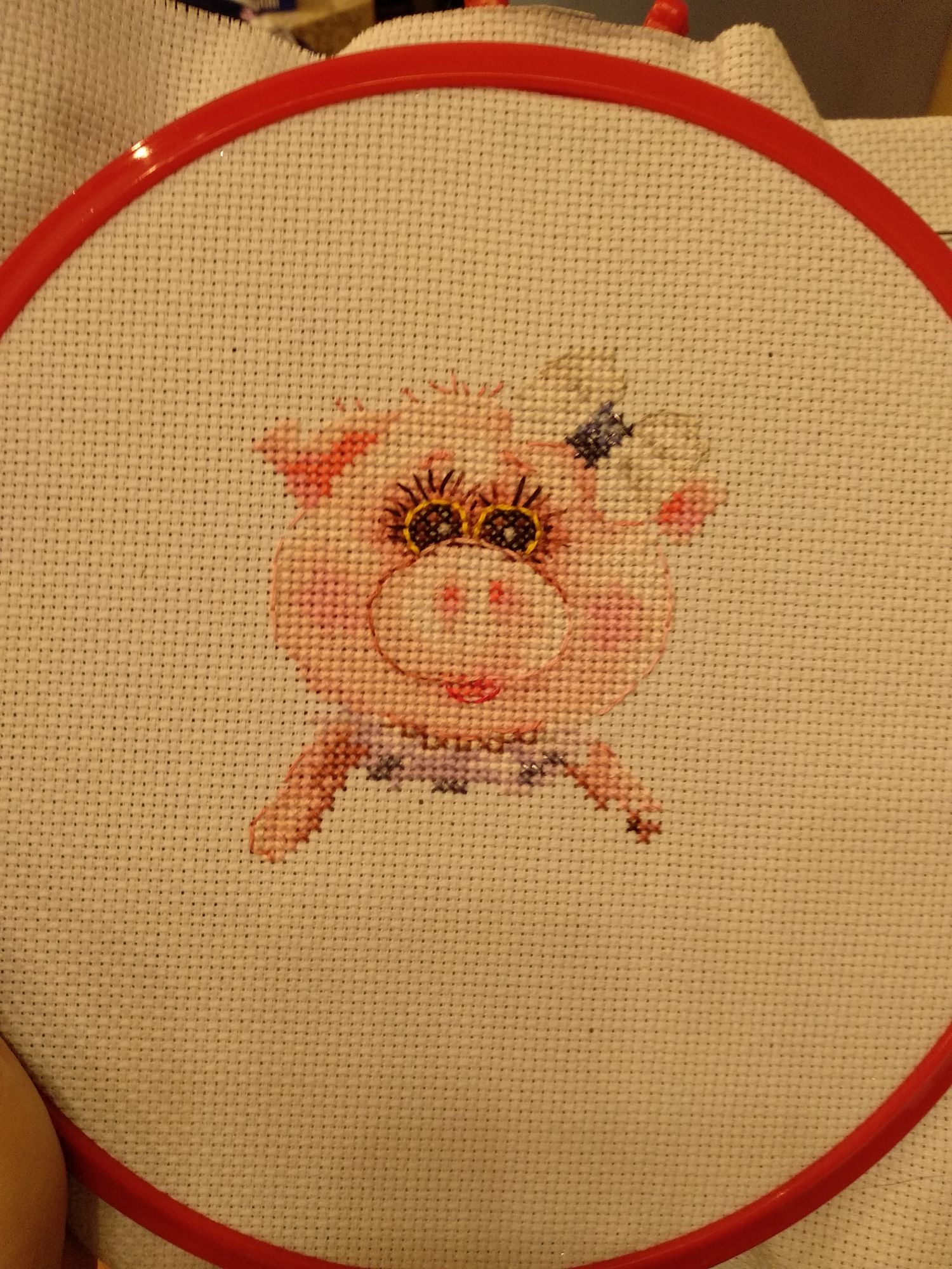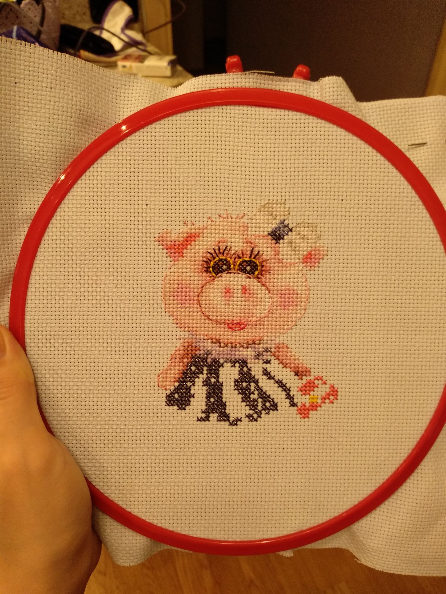18 декабря 2018 Всем здравствуйте!) Пришла я к вам не то чтоб с отдыхалочкой, но куда ещё податься со своей свинкой 9*12 я не представляю Знакомьтесь, Тося! Тося призвана стать поделкой для сына в садик на конкурс новогодних поделок. Воспитатели знают, что я занимаюсь вышивкой и очень просили сделать для группы хоть маленькую вышивочку, т.к. вышивки на конкурс почти не приносят. Ну а я что....окей) А времени уже в обрез, т.к. сын долго сидел на больничном, а сдать работы надо до 26 числа. И Тося была выбрана в виду маленького размера и милого вида))) Для большего праздничного настроения я "доработала" Тосю на свой вкус, а именно белую канву заменила на небесно-голубую, в платье и бантик добавлю крейник, а по завершении работы пришью вокруг Тоси пайетки-сердечки перламутрового оттенка, типа снежинки))) Надеюсь выйдет симпатично))) И делюсь фотографиями процесса: Avril, Сибирская Кошка, Светлана Юрьевна и 11 других сказали спасибо Поделиться сообщением Ссылка на сообщение