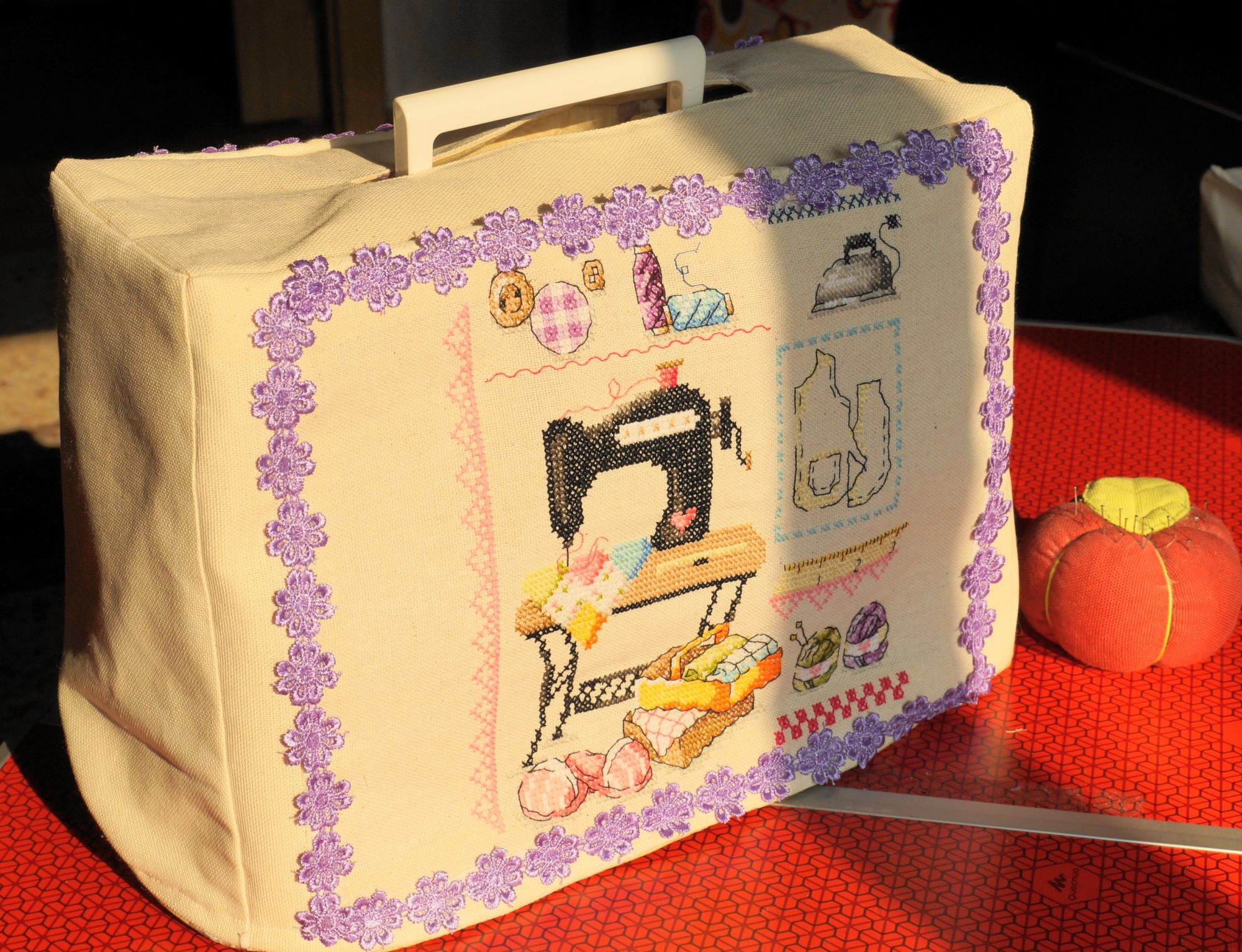 27 июля 2020 Я уже рассказывала, как купила как-то двунитку, потому что прочитала на форуме, что на ней тоже можно вышивать. Но купила, видимо, не ту. Потому что крестики на ней получались прямоугольные. Но жаба ведь давит! Стала я думать куда ее можно использовать. Методом научного тыка нашла более-менее квадратный вариант крестика: 2 нити на 3, получился примерно 10-й каунт. И решила я вышить и сшить новый чехол для швейной машинки, тем более что старый совсем развалился. Сюжеты подобрала, посчитала по размерам, но совсем забыла, что крестик-то все-равно немного продолговатенький. Поэтому один сюжет никак на тряпочку помещаться не хотел. Пришлось химичить. Это сюжеты, которые я взяла. 1.Герб рукодельницы - 101*94, 11 оттенков. 2.SO-G30 Sewing Room (швейная комната) от SODA Stitch - фрагмент 163*88, 24 оттенка. Закончила вышивать еще в марте, а дошила чехол только сегодня. Для подклада взяла простеганный синтепоном ситец. Вот что получилось в результате. violet105, Nasenak, solnishko-ym и 15 других сказали спасибо Поделиться сообщением Ссылка на сообщение