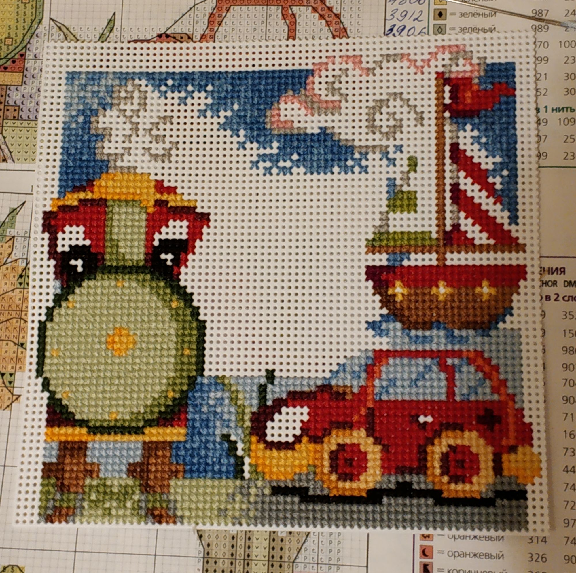 27 октября 2020 Вышиваю основной процесс на черной канве, дошла до множества бежево-коричневых тонов и поняла, что при лампе без помощи дневного света я их тупо не различаю. Поэтому решила по вечерам отдыхать от сложностей и радоваться жизни с клартовским "Монстриком путешествий". За это он мне в первый же вечер разулыбался. Ксен40, dinakopacheva, Tatiana Ch. и 11 других сказали спасибо Поделиться сообщением Ссылка на сообщение