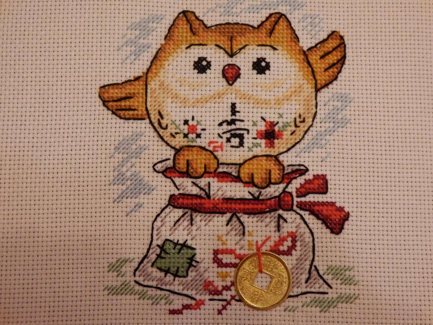 25 июля 2013 Хорошее начало. А я свою совушку почти закончила одна беда - пока вышивала детёныш куда-то монетку заиграл. Уже всю квартиру перетряхнула - нигде нет впору второй набор покупай Лина,поищите в городе сувенирную лавку,где продают всякую всячину Китайскую. И у них же спросить мотеты. Я когда шила "Прибыль в делах" по подбору,тоже вставал такой вопрос. Девочки подсказали. Нашла лавку,спросила монетки,продавец достала большой мешок с монетами и сказала выбирай какие нужны. У нас они стоят 5руб! Или же можно купить дешевый сувенир с монетками. Linka11 сказал(а) спасибо Поделиться сообщением Ссылка на сообщение