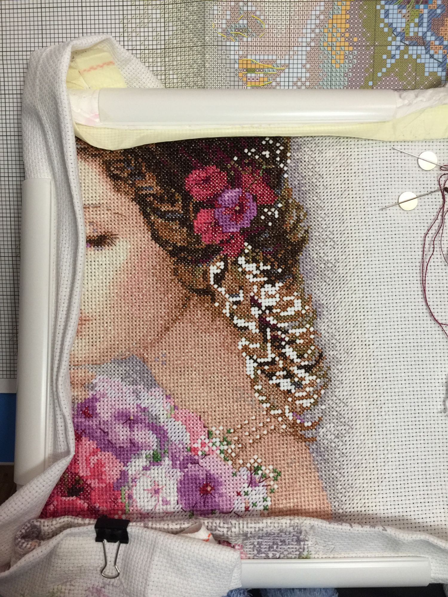 27 октября 2017 Всем привет! Хочу к вам присоединиться со своей новой работой Mirabilia «Portrait of Veronica» (Портрет Вероники): Скорее всего процесс будет долгим, но, надеюсь, не мучительным. Во-первых, Вероника, неожиданно для меня, оказалась настоящим гигантом, габариты я осознала только развернув предназначенный для нее отрез льна. Не знаю, почему не догадалась предварительно посчитать размер работы в сантиметрах, видимо ее маленький изящный вид не допускал мысли, что под этой «личиной» может скрываться женщина-гигант. Во-вторых, это не единственный мой процесс, параллельно вышиваются еще несколько небольших дизайнов. Ну и в-третьих, помимо собственно вышивальной части, здесь предполагается также бисерная составляющая. В добавок ко всему вышеперечисленному у меня еще и черепашья скорость вышивания ))) Но все это меня не очень вообще не огорчает, поскольку процесс доставляет ОГРОМНОЕ удовольствие!!! К тому же это мой первый опыт работы на льне. Начало шикарного платья Вероники и необходимые материалы: кира28, casiopea, Avril и 12 других сказали спасибо Поделиться сообщением Ссылка на сообщение