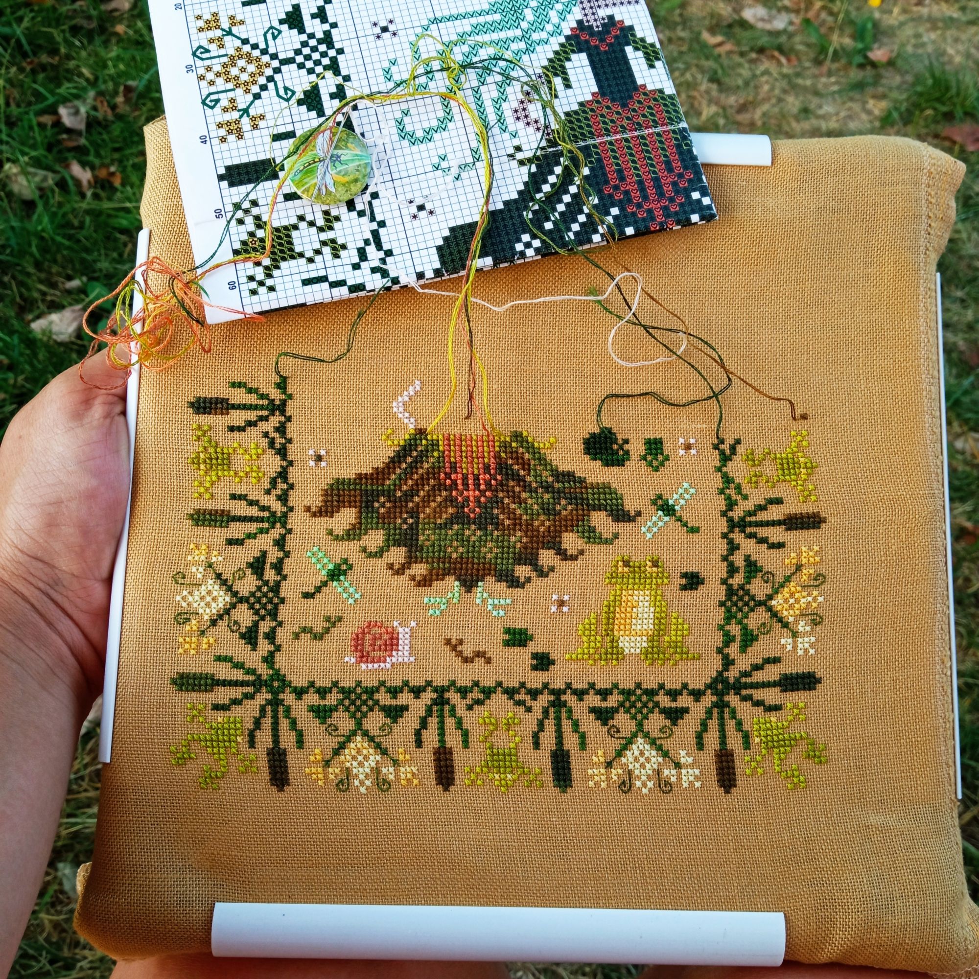 28 июня 2021 Всем привет из болотапринесла показать, как мы с Кикиморой прогрессируем Что могу сказать о наборе и процессе: мне очень нравятся комплектующие и то,как собран набор. Учтены мелочи, без которых можно обойтись, но их наличие приятно, поэтому, открывая коробочку, чувствуешь, что набор собран с любовью и понимаешь, чем объясняется цена вот внутренности набора,правда уже изрядно использованные)) фото первого вскрытия куда-то пропало. Я больше всего была рада магнитику для иголки)) очень полезная вещь, оказалось)и схему держит в несколько сложений и канву иглой дырявить не надо. Что вызывает сложности: работа с нитками секционного окрашивания. В наборе всего 7 цветов, но, глядя на работу, кажется, что их больше за счёт того,что каждый тип нити содержит до 4 цветов, плавно перетекающих друг в друга. Это хорошо видно на юбке кикиморы, она вышита одним "цветом" ( за исключением передника и верхней салатовой части). Собственно на юбке видны и проблемы, с которыми я столкнулась- такими нитками нельзя просто сесть и "штопать" большие участки, думая о чем-то своеми шить, закрывая крестики рядами, как я люблю- тоже. И парковка по квадратам, которой я пользуюсь, тоже неприменима, о чем я догадалась, увидев четкий квадрат в левой нижней части юбки закрывать крестики надо маленькими группками по 3-5 крестиков,и идти так вертикально, чтобы был красивый эффект. Либо шить по одному крестику. Мне это не особо удобно, хочется шить так,как нравится, а не так, как диктует нитка)) плюс ещё необходимо подбирать начало новой нитки под конец предыдущей. Но полученный эффект, конечно,перекрывает все эти неудобства. Однако, мне точно нужен будет отдых от такого вышивания так что в ближайшее время пополнять свои закрома Совиный лесом не буду, хотя, повторюсь, этот производитель мне очень понравился. Удерживает от покупки ещё и не маленькая цена, в этом плане круче только Мережка Но попробовать хотя бы один раз Совиный лес однозначно рекомендую- в процессе работы получаешь эстетическое удовольствие Morning, Veta, Аленка-2 и 6 других сказали спасибо Поделиться сообщением Ссылка на сообщение
