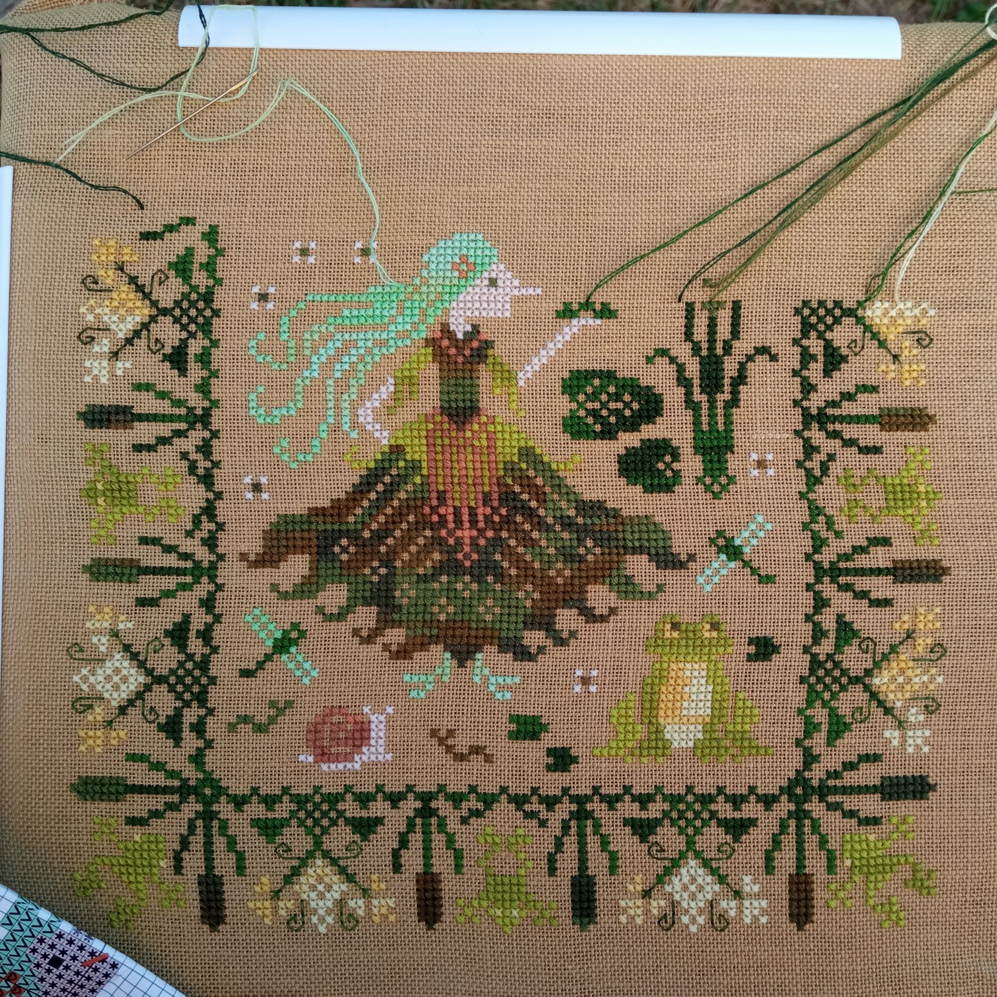 22 июня 2021 .. ...И была в то лето така жара, ой...така жара, что даже болото лесное в тех местах высохло...и показалось из глубин нечто......чёрное, косматое, тиной покрытое...Узнал местный люд про чудище болотное и стал тот лес стороной обходить...и только старожилы говорили, что не было отродясь в том болоте чудищ, а жила там всегда русалка одна, вполне себе мирная и дружелюбная...но никто им не верил... В общем, здравствуйте всем, кто рискнёт зайти в мое болото! 6 лет ничего я не показывала, не рассказывала, процессов не фиксировала, в галерею не добавляласьбудем как-нибудь исправляться. Для начала вот: Вот именно так выглядят русалки после 10 лет декретного и года на работе после этого самого декретного Собственно этот автопортрет от Совиного леса я и вышиваю сейчас. На данный момент нахожусь на этой стадии: Процесс прелестный, материалы великолепны, в общем я в восторге от производителя, надеюсь ещё с ним встретиться Последнее добавление в папочку с вышитыми работами у меня было, страшно сказать, в июле 2015-го сегодня полдня извлекала из разных труднодоступных мест вышитые за 6 лет работы...была удивлена...о некоторых уже и не помнила Прежде чем их показать путникам, рискнувших пройти через мое болото,хочу уточнить,что раньше ( не знаю как с этим дело обстоит сейчас) модно было вышивать на примету,по сути каждый сюжет можно было натянуть на какое-нибудь желаниепоэтому не удивляйтесь историям, связанными с моими вышитыми работами...Итаааак: Путешественница, Tatiana Ch., Хозяйка смешных зверей и 12 других сказали спасибо Поделиться сообщением Ссылка на сообщение