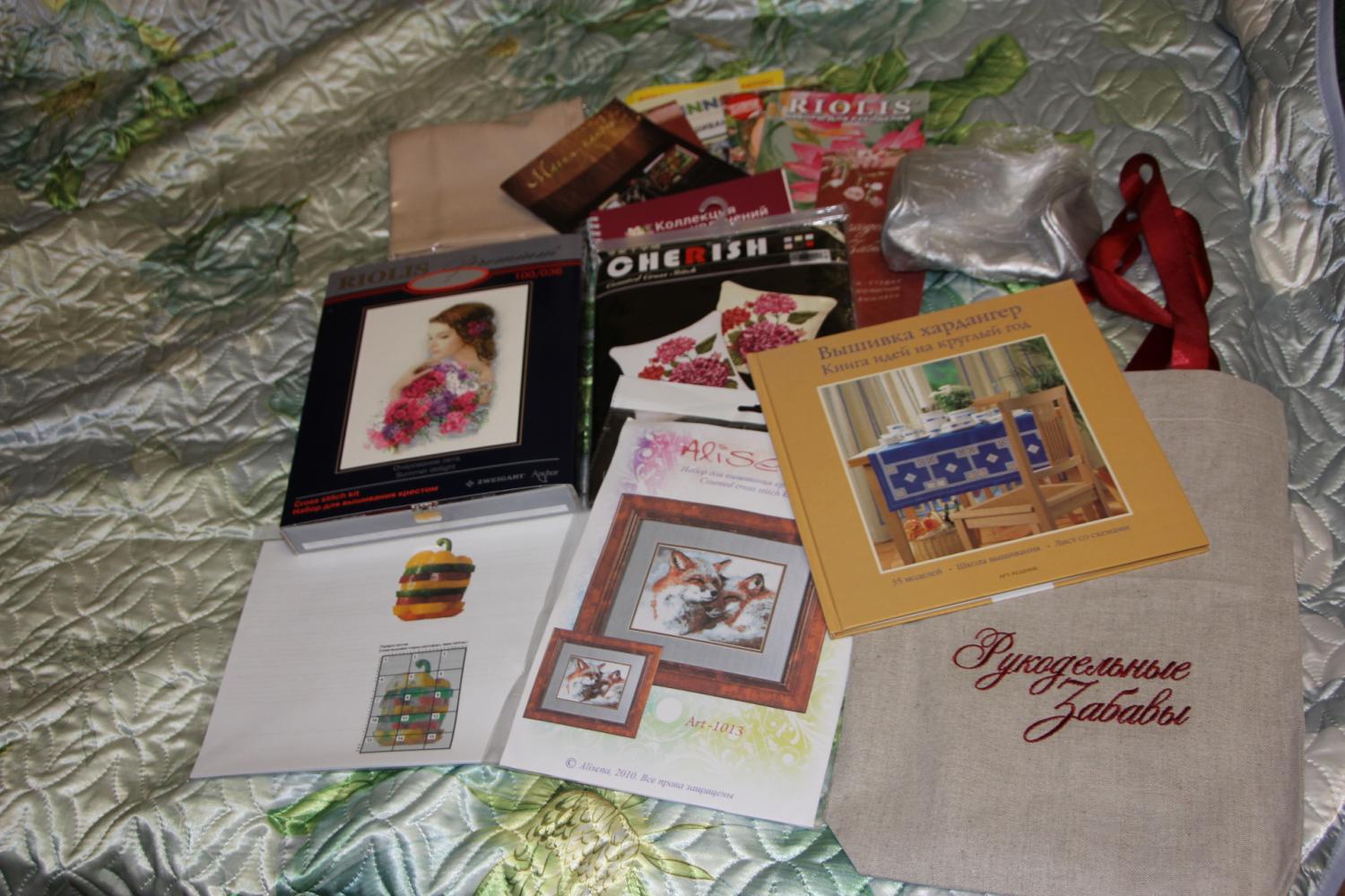 29 сентября 2012 Девочки, я тоже недавно вернулась с выставки. Сколько бы я там всего купила, если бы не останавливал муж. Вот оно моё богатство: Косметичку "Риолис" выиграла в лотерею. Схему перца очень давно хотела прикупить, увидела и приобрела. От книги " Вышивка хардангер" прибалдела, когда ее полистала. Буду осваивать новые приемы в вышивке. Купила еще кое-что, но не покажу, это я приготовила к зимней игре-сюрпризе. чеба и mrn1970 сказали спасибо Поделиться сообщением Ссылка на сообщение