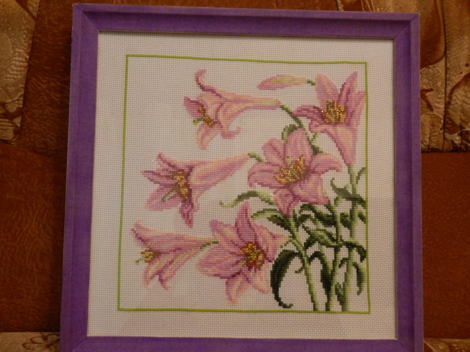 18 апреля 2014 Лилии. Набор китайский. Был нанесен рисунок на канву. Когда подбирала багет,то попросила такую рамку,но розового цвета. Показала на лилиях какой это розовый. Он походил,посмотрел и сказал,можно,сделаю. А рамка интересная-пластик обтянут тканью. Пришла забирать и испытала шок-рамка фиолетовая! Но потом присмотрелась,а ведь это красивее! (а вообще у китайцев странное понятие цвета. выбираем орхидею,она только дала цветочную стрелку. спрашиваем какого она цвета? китаянка говорит-розовый и показывает на цветущую орхидею фиолетового цвета!) Ginger_mama, Татуся и Графиня сказали спасибо Поделиться сообщением Ссылка на сообщение
