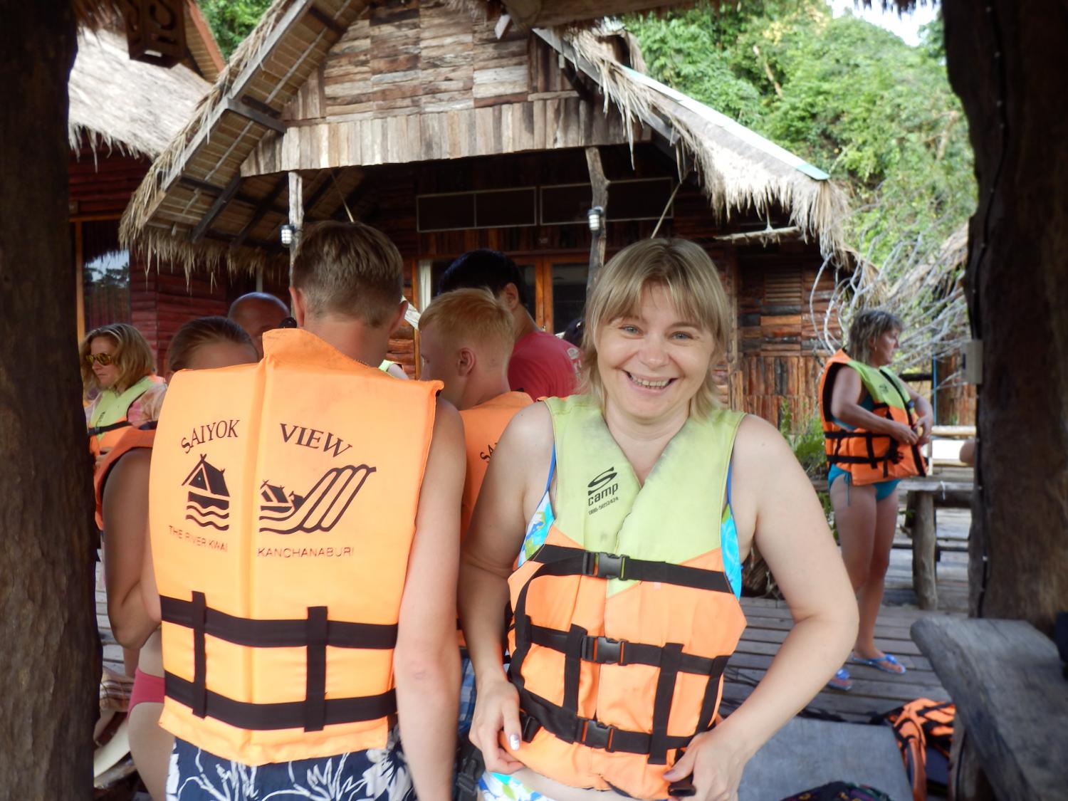 10 мая 2014 Есть фото где я в спас жилете,это мы готовимся к сплаву по реке Квай. Плот выходит на середину реки и мы прыгаем в воду. Плот уплывает и мы плывем сами,вернее нас несет течение реки. Полтора км. Ощущения суперские! Вокруг красотища,и ты один на один с природой! Я доплыла до плота первей и сфотала подругу в воде. Цвет воды бррррр... Купальники были грязненькие,да и мы не оч чистые. Но если поедем осенью,то возьму эту экскурсию и снова прыгну в воду! Плавать не умею,глубины боюсь очень сильно! Но эти ощущения словами не передать! Поделиться сообщением Ссылка на сообщение