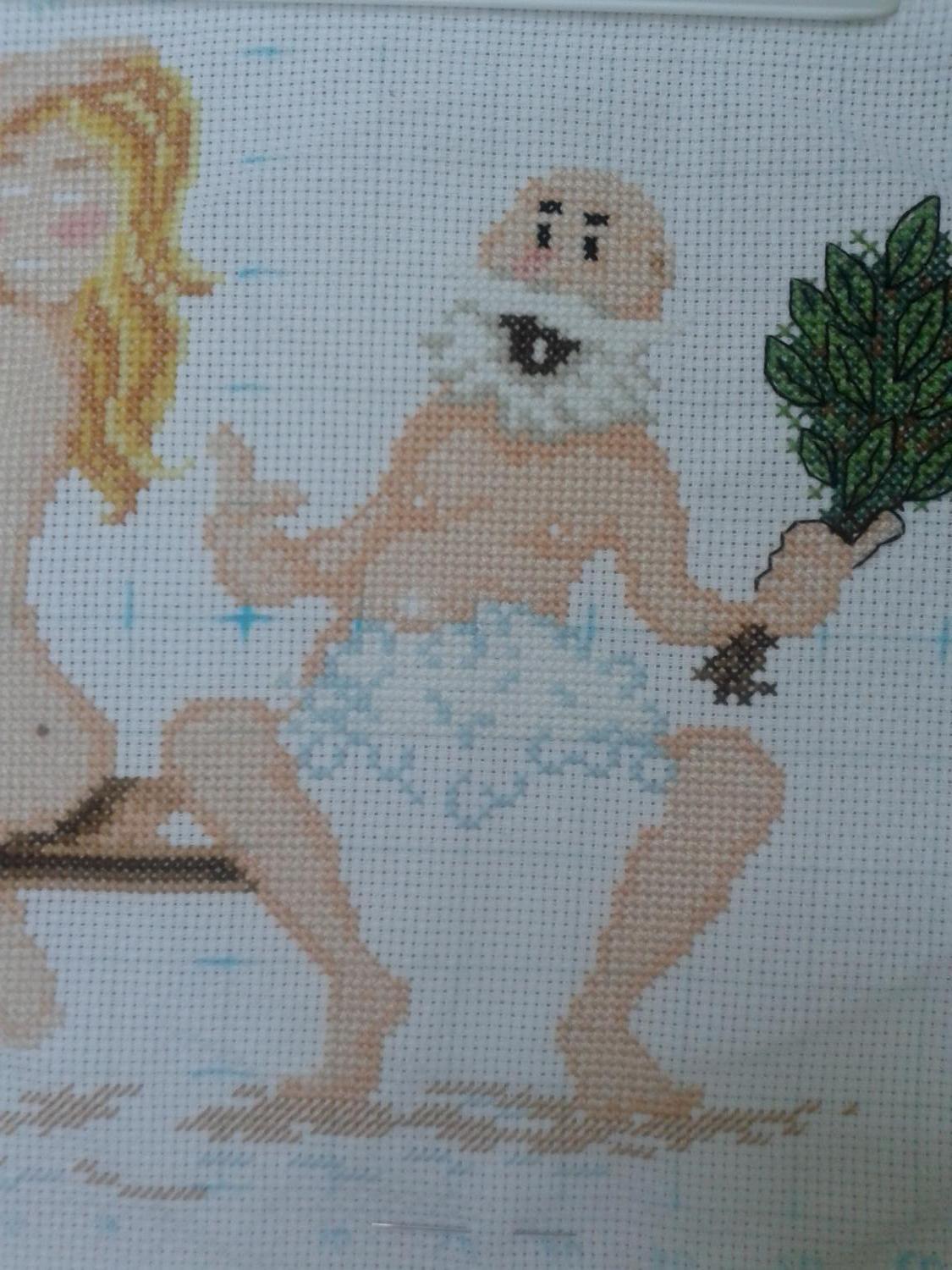 18 мая 2014 Сегодня на работе заставила себя взять в руки вышивку... И ниточка рвалась,путалась,из иголки постоянно выскальзывала,и иголка руки колола,и психовала я сидела... Но вот как то не заметно поняла что у дедуси выросли ноги! И шить то осталось всего ничего-пену,шайку и кусочек лавки,крестиков 300! Ну и бек конечно же... Но результат порадовал,молодец я однако! Autumn и Ginger_mama сказали спасибо Поделиться сообщением Ссылка на сообщение