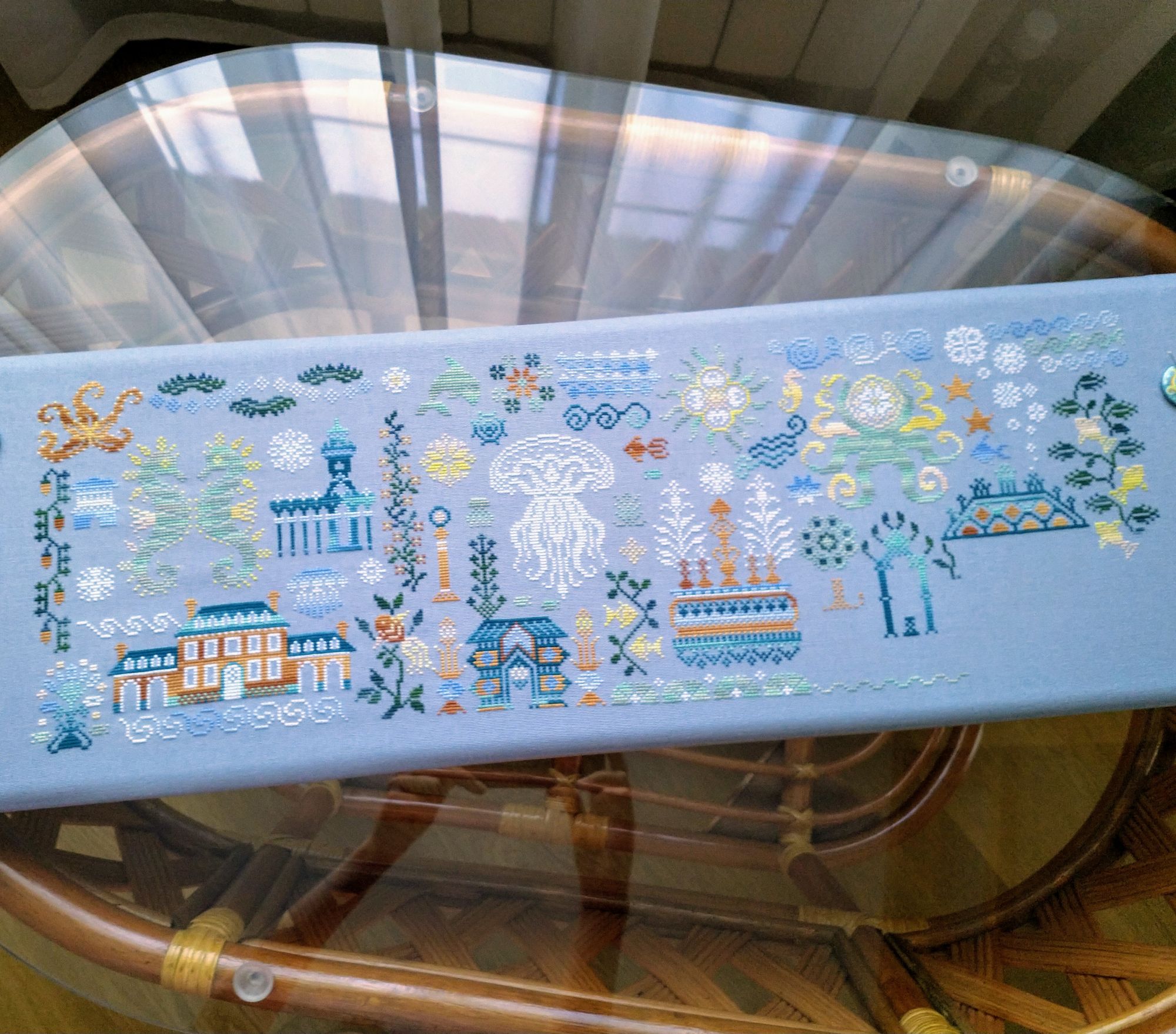 25 июля 2019 Я тут опять вышиваю втихаря, а процесс никак не выложу )) Атлантида от Совиного леса Размер 360х120 крестиков, Мурано 32 (кажется, это оттенок Синяя туча, если я ничего не путаю), 7 цветов ниток ручного окрашивания и ажжж три магнитика в наборе (ой, как я люблю все эти штучки-дрючки ))) За две недели (да, я черепаха )) я вышила первую часть из трех (в наборе предусмотрено два вида оформления, можно на одной тряпочке все три части вышивать, что я и делаю, а можно разрезать тряпочку на три кусочка и вышить отдельно, ткани на все эти манипуляции хватит, там запас ого-го)) В общем, вот, процессс: Catopuma, nogres, Selinta и 16 других сказали спасибо Поделиться сообщением Ссылка на сообщение