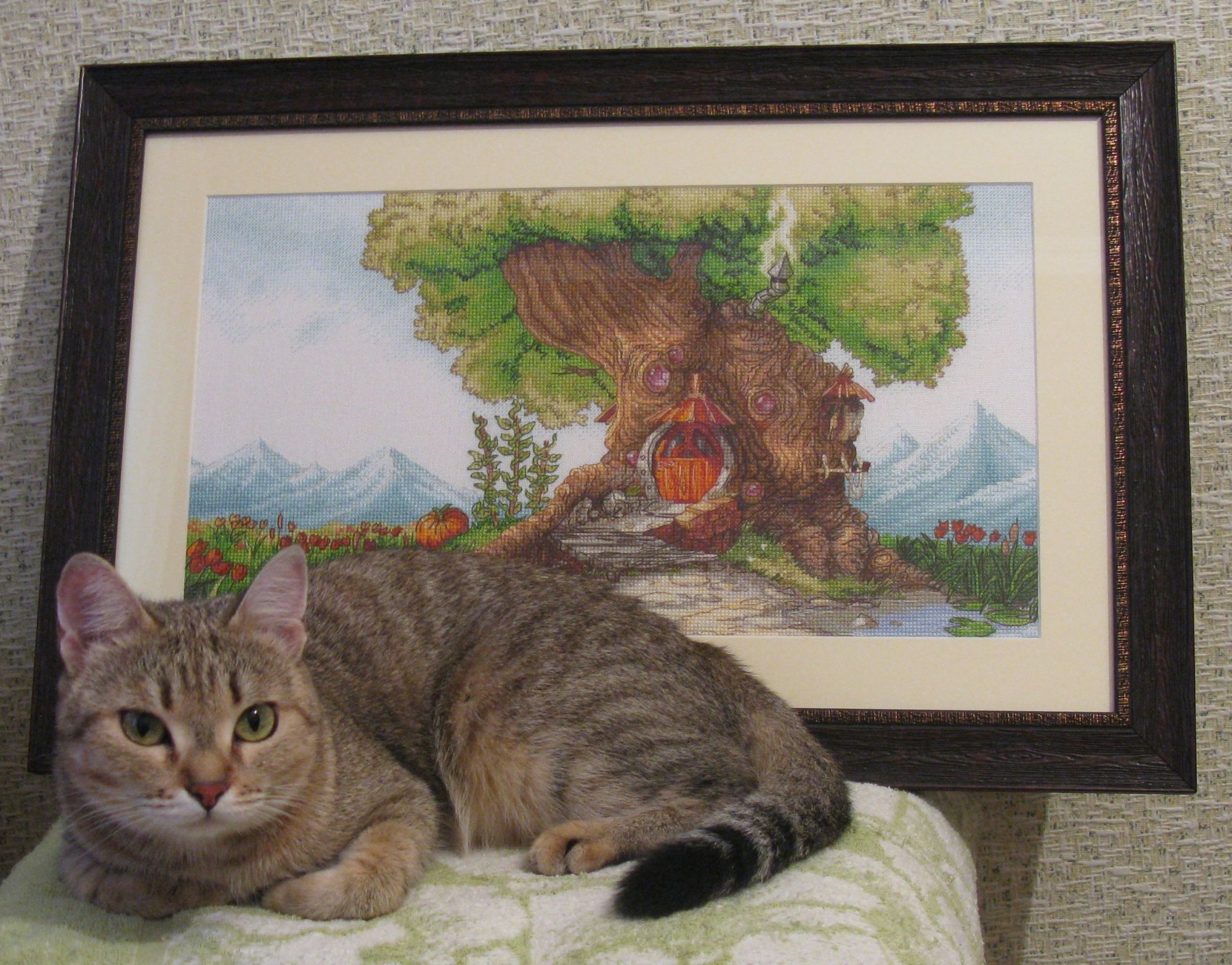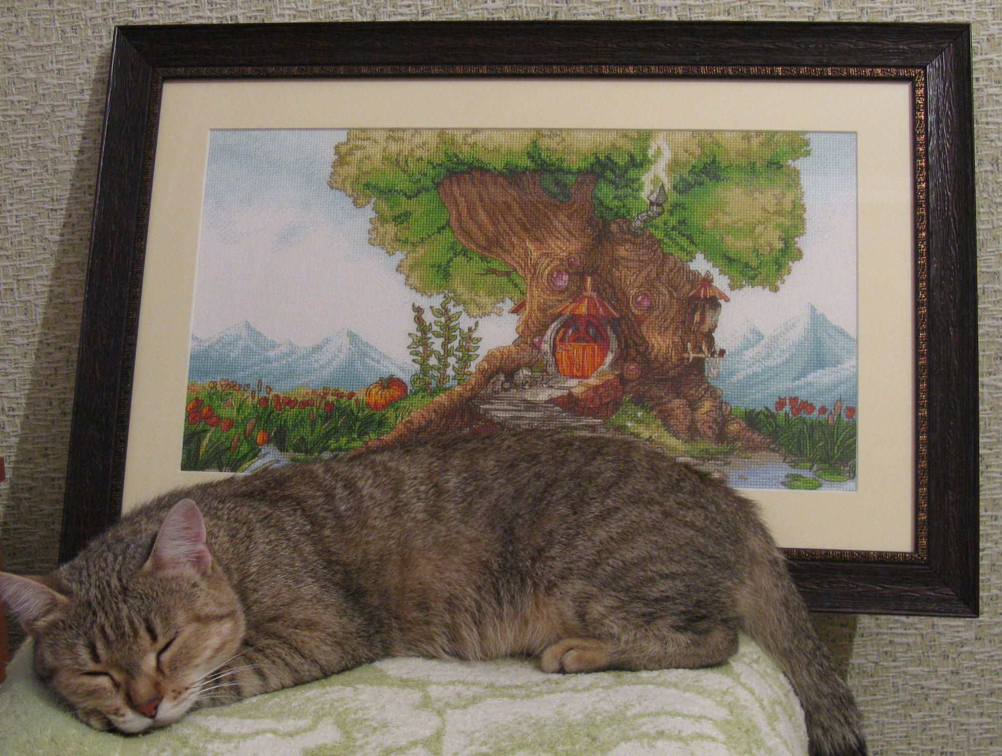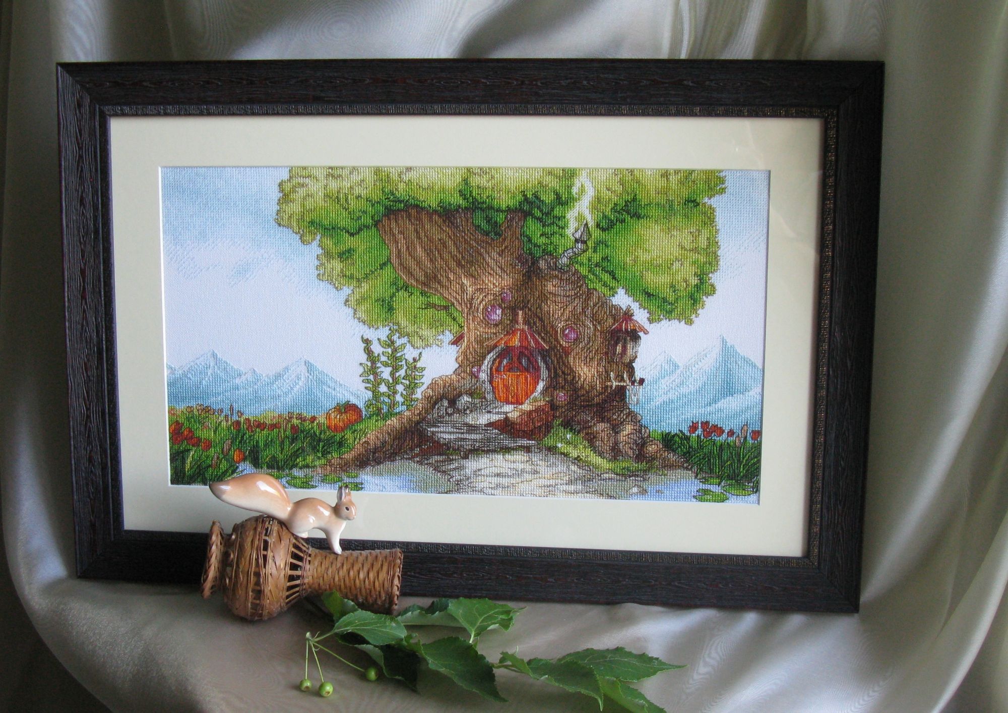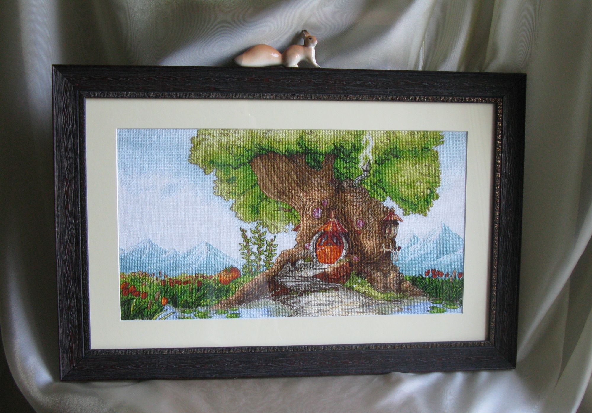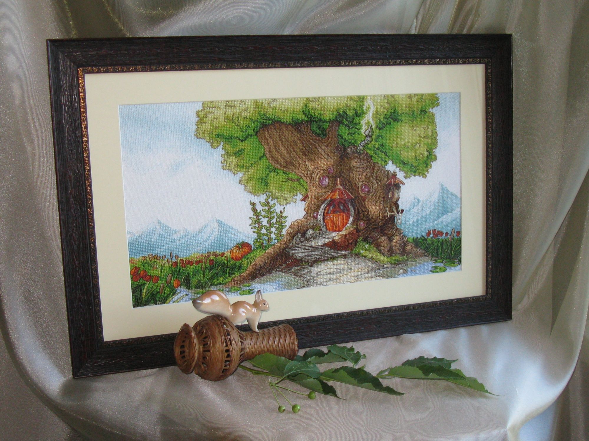 15 июля 2018 Всем привет! Я ....можно сказать... мимолетом))) С последнего отчета не прибавила ни крестика к процессам...но причина уважительная и приятная...вся в предвкушении небольшого отдыха и настроение чемоданное...зато в этих дорожных хлопотах оформила Древесный Домик...ждали будущего хозяина в гости,но не случилось...а Домик приоделся уже))) Может подарок и поедет без меня в этот раз...а может к осени и сама повезу...ещё не решили))) Но фото на всякий понаделала...и спешу похвастаться))) Багет купила в новой мастерской ( о! там обилие и драненького багета))) и увезла к своему мастеру на всю остальную сборку...так мне спокойней...а то я как-то не готова такую вышивку на степлер сажать ))) И так история про белочку...))) А это уже моя родная Белочка во всей красе))) Багет может и темноват...но коричневый был только такой оттенок...светло-серый и графитно-черный совсем не туда...зато довольна срезом под древесину )) и картинка получилась не маленькая...38/57. Это и все новости) Побежала дальше собирать сумки) У нас жарища стоит уже неделю...может удастся немного отдохнуть в местных водах...чего и всем желаю...любого отдыха при любой возможности)) Peppi, nogres, hobby_time и 23 других сказали спасибо Поделиться сообщением Ссылка на сообщение
