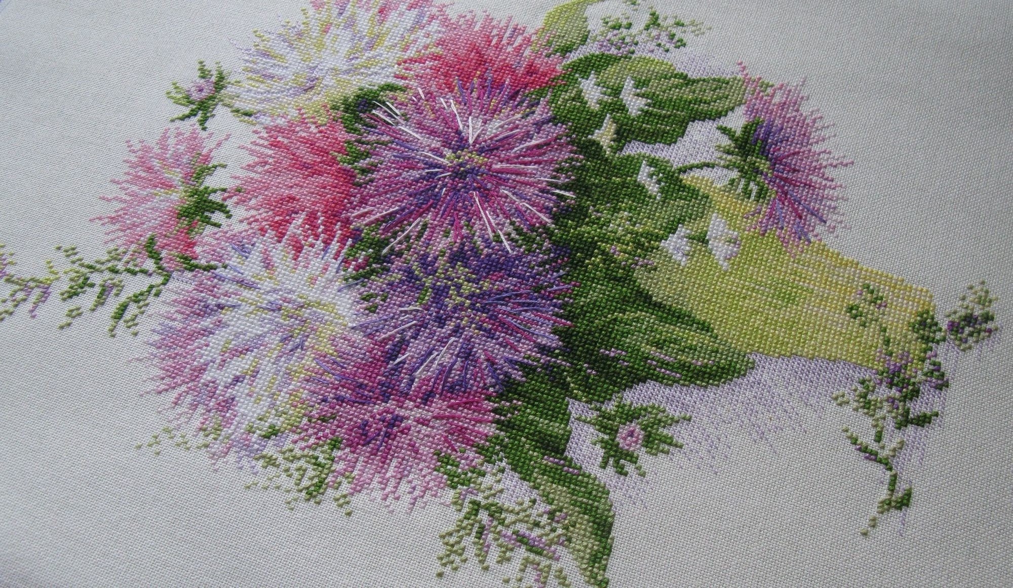 7 июня 2019 Всем привет! Как-то долго я с отчетом собиралась,что уже понаделала многоэтапных фоток в новом процессе! Это к тому,что дорога каждая минута вышивальная Астры я благополучно отбэкала...осталось чуток...отпарить и во всей красе принесу обязательно...но это потом...а теперь долгожданная Ботаника! Работа вышивается в подарок! Подарок хорошо известному нам замечательному человеку Оли (Сэйко) ...когда-то тоже уже не припомню точно ...здесь же в форумной беседе родилась эта идея...вот только с воплощением я припозднилась малость...но что такое для вышивальщицы какая-то пара лет...все равно все случается когда больше всего надо! Т.е. время пришло! Врать не буду...основа как маркируется не имею никакого понятия...куплена в Екатеринбурге даже уже не помню когда...без опознавательных знаков...могу только описать свои ощущения...лен,довольно жесткий,скользкий,но до Перминовского льна ему далеко...этот более тонкий что ли. Первый вечер намучилась я с ним...пока привыкла...уж слишком большой разбег в толщине ниток основы...но ничего...наверное,привыкла и теперь кайфую уже)))) Нитки ДМС. Разноцветный сюжет выполняется в две нити...монохромный (всего два цвета) и он основной выполнен крестом в одну нить...вот где я кайфанула по полной...и никакого полукреста! Последнее фото мне особенно нра!)) Вот это трехдневный отчет) ну,и ,конечно,же я не забываю про Дим...тут все коротко...он прекрасен!!!... было/стало: Призрачная бабочка уже машет крылом и появился левый контур работы. Чуть не забыла...вышивая маленький цветочек обнаружила,что один из розовых оттенков лепестков шьется крестом в 1 нить...о ужас! большой цветок зафигачен полностью в 2 нити...увы...пришлось распускать...и делать как надо...казалось бы... а чего? а ведь дают некую прозрачность лепесткам эти однониточные крестики))) Поражаюсь лишний раз продуманности Димыча) Постараюсь не затягивать с астрами...убежала чертополошить! Всем летних отдыхательных выходных! Юнона1960, maui, Egelia и 18 других сказали спасибо Поделиться сообщением Ссылка на сообщение