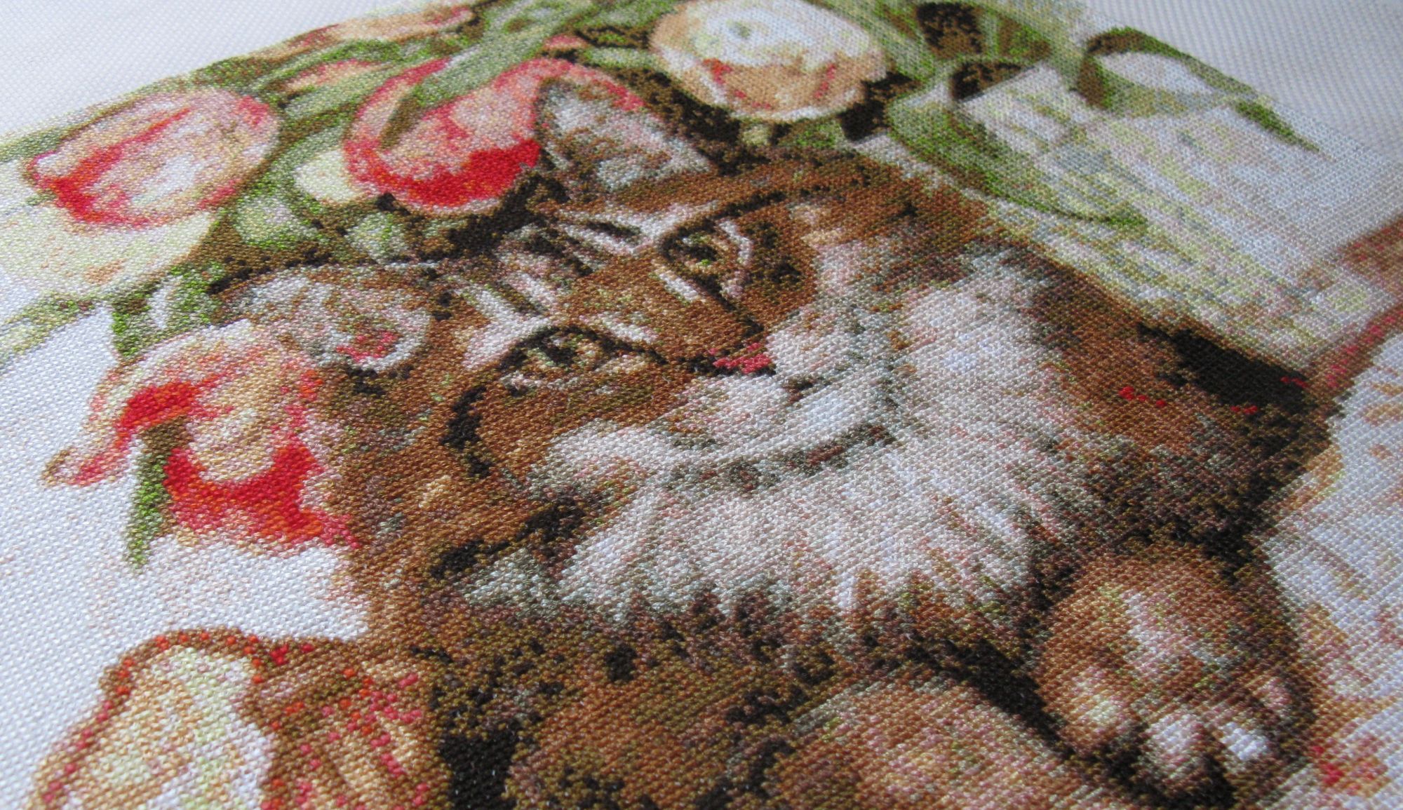19 августа 2020 Какие красивые котики! И на вышивке и в жизни! С окончательным окончанием КК! Мне очень нравится. На взгляд кажется, что канва 16-го или даже 18-го каунта. А на самом деле 14-го? Или вышивалось не по оригинальному набору? Лично мне не заметно, что крестики неровные. Может быть потому, что нет макро фото. Ощущение, что это как-то Хаед с кучищей цветов... Подушка тоже очень очаровательная! Кажется, кошке тоже по душе! Nat717 сказал(а) спасибо Поделиться сообщением Ссылка на сообщение