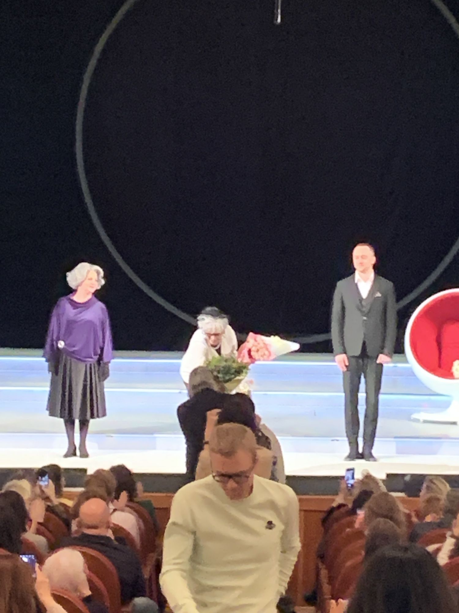 10 марта 2023 А я 8 марта, девочки, в театр ходила на спектакль, поставленный к 80-летию Веры Алентовой, которой сейчас уже 81 год. И была поражена. Я не увидела ни одного признака скованности в движениях, ни одного скудного жеста или тона голоса, ни грамма лишнего веса. Она не выглядит тощей, ну или …хм… стройной, подобно Гурченко, а просто исключительно подтянутой. И столько энергии! На каблуках в сантиметров 6 почти все 2.5 часа спектакля. Я вышла в смутном ощущении какого-то своего диссонанса. Натолкнулась на секрет, который не знаю, разгадаю ли. Понятно, что генетика, понятно, что человек полон сил, потому что живет любимым делом, но все же это, девочки, не все. А что еще, не знаю. Да и ладно, ведь я просто восхищена. Поскольку фото спектакля просили не делать, я, как человек воспитанный, эту просьбу выполнила (в отличие от большинства окружавших меня граждан) . И могу показать вам только невнятные кадры поклона. Но хотя бы они. Iharu, vasilisa-1977, Tatiana2406 и 16 других сказали спасибо Поделиться сообщением Ссылка на сообщение