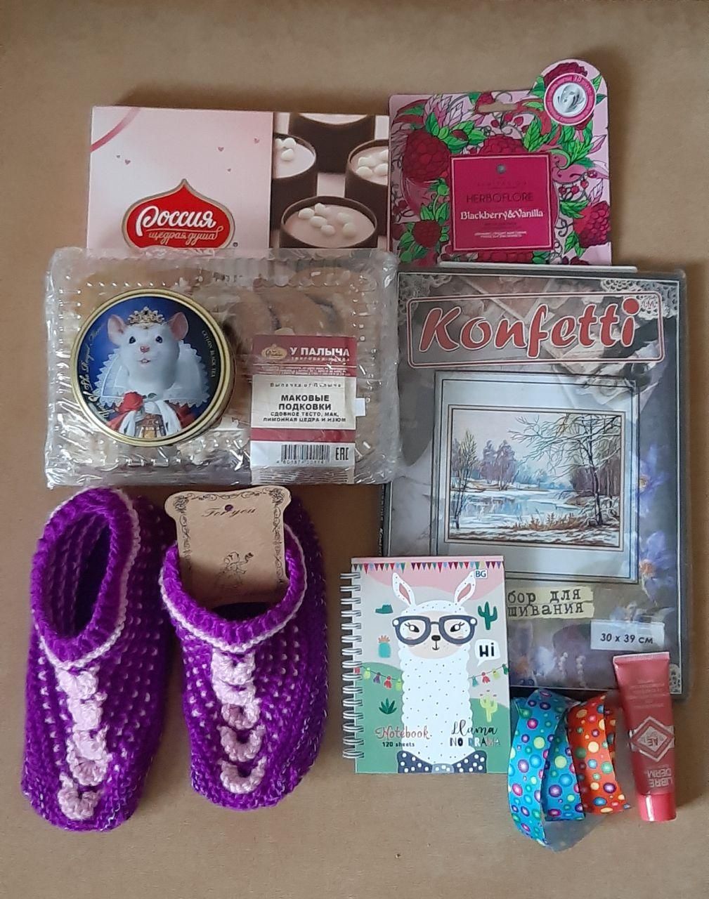 6 мая 2020 Девочки, у меня скопились новости! Опять всяка)) Начну все же не с вышивального, хоть и форум у нас тематический, но мой дом - мои правила)) Сегодня получила посылку на почте от Наташи Lorans . Подарок был сделан не по случаю, а просто так! Потому, что мы подружились, потому, что так здорово общаемся, потому, что Наташе захотелось доставить мне радость. Это безумно приятно! Мы с Наташей уже чудесно поговорили по телефону. У меня полное ощущение, что я ее знаю уже очень много лет, легкое и приятное общение! Наташенька, спасибо тебе еще раз огромное!!! Вот моя порция радости: Все продумано, весь подарок собран с огромной любовью и вниманием, даже к мелочам. Во-первых, чудесный привет от Наташиной мамы в виде вот таких ярких мягких тапочек-носочков! Я их буквально уже сняла два или три раза с ног младшего сына, они ему очень приглянулись. В конце концов убрала с глаз)). Не то, чтобы жалко, но это моё.... Хотя нет, жалко)) Наташ, маме огромное спасибо от меня передавай! И пожелание крепкого здоровья! И вот такой набор там был! Я просто поражена, это правда!!! Болела давно этим дизайном у Овна, но его сняли с производства. Думаю, еще вполне реально найти, так как только-только завершили выпуск, но специально не стала искать, так как ну очень стараюсь не покупать новые наборы, руководствуясь мудростью "нельзя объять необъятное". В общем, искать я его не стала, но поныть об этом где-то успела, как водится))). Ничто не прошло незамеченным и вот.... получите и распишитесь, что называется))). Это набор Ново Слободы по той же картине сделано, скорее всего, но я такой даже не видела! Он, наверно, снят был еще раньше, чем у Овна. Мне очень понравилось!!! Я в таком счастье!!! У картины немного другое настроение. Хоть мне и у Овна не казался унылым этот сюжет, но тем не менее... Даже в названиях чувствуется разница. У Овна это "Уходящая осень", у Ново Слободы "Первый снег". Я, конечно, распотрошила уже). Мне все нравится. Канва уже разлинована мононитью, схема цветная, в моем самом любимом стиле, похожа на то, как делает Риолис. Я их легче всего воспринимаю, бумага не глянцевая. И нитки сплетены в фирменную косичку Ново Слободы, не Аврора, по виду - х/б мулине. Даже нитковдеватель в наборе. Фото не в гайку И много еще всего самого разного! Маска, крем для рук, блокнотик со смешной ламой)), ленточки веселые (вот и здесь Наташа внимательна к моему хобби), сладости фирменные Самарские и баночка с чаем. Баночка!!!))) Она прекрасна))). Опять же моя слабость к баночкам, Наташа и это учла)). И стильная открыточка с хорошими словами от доброго человека! Спасибо!!! Никогда не участвовала в обмене подарками, хотя читаю эти темы иногда. А вот теперь поняла - насколько это приятно и весело!!! Убеждаюсь еще раз в правильности поговорки: Спешите делать добро! Теперь покажу свою подопечную - Царевну))). Вышила еще 20 рядов, итого получается готово 60%. Девушка встает на крыло потихоньку. Вон там, слева, светлый кусочек начинает появляться это как раз то самое крыло и есть))). Втянулась, пошло немного побыстрее. Для модераторов: фото дублирую из СП Стоянки И покажу, что вышила от нового процесса по схеме Ворожеи. Пока получилась картошка с ростками))). А вообще-то, это готов главный герой - мишка))) Это фото в гайку: Опробовала Нурге - восторг!! Никуда ничего не провисает, ничего подтягивать не надо - ну просто праздник какой-то) И еще со