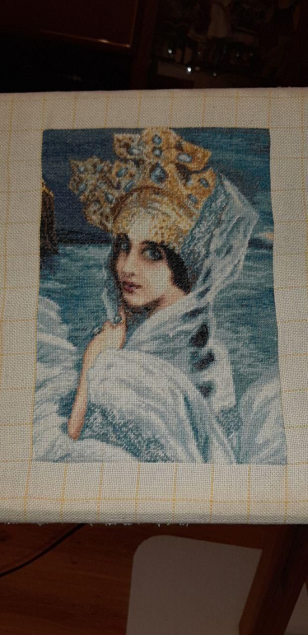 13 июня 2020 4 часа назад, mag сказал(а): Лена, поздравляю с завершением! Она великолепна! Удачного оформления! 4 часа назад, ms_flora сказал(а): А Царевна выше всяких похвал, такая ювелирная работа, и ты справилась на все 100. Поздравляю. 3 часа назад, igolkinitki сказал(а): Царевна красавица, удачного оформления! 1 час назад, nata2017 сказал(а): С завершением Царевны,она получилась обалденная)))) 54 минуты назад, ОльгаТольна сказал(а): Леночка, с завершением царевны! Какая она!!!! хороша!!! Думается мне в багетке тебе помогут!!! Вытянут!!!! 32 минуты назад, Tata44 сказал(а): Леночка, поздравляю тебя с завершением! Результат восхитительный! Хотя сколько было у тебя сомнений: и по поводу разметки канвы - будет просвечивать на лице или не будет, и как одолеть парковку, и нитки заканчивались - в общем, попортила она тебе нервы, но ты её победила! Молодец. В багетку отвезла уже? Спасибо!!! Да, я теперь гуру парковки! Кстати, руки чешутся на крестиках этот способ применить, но с сурикатами, наверно, не стоит заморачиваться, а вот на полной зашивке очень даже можно будет попробовать. Отвезла в багетку. Как я и предполагала - все получилось в конце концов по классическим канонам. Бархатное паспарту со слипом и багет весь в завитушках)). Справедливости ради скажу, что и в нежном бело-голубом варианте пробовали и под основной цвет моря. В связи с пандемией у них проблемы с поставками, так что некоторые цвета, которые хотели примерить просто напросто отсутствовали. Но все равно: светлое оформление на мой взгляд совершенно "съело" корону, цвет моря превратил в утопленницу саму героиню ну и так, по мелочи придирки))). Остановились на густом чернильного цвета паспарту, цвет такой есть на небе, на самом верху картины. И багет в гамме этого паспарту с золотыми элементами. Она получилась, как будто из сказки! Темновато, мне кажется, я думала, будет все же посветлее, но зато загадочность зашкаливает))). Обещали через 3 недели сделать, ну, а уж когда встретимся с ней нос к носу - пока не знаю. sta.nsk, Lenara, махно и 11 других сказали спасибо Поделиться сообщением Ссылка на сообщение