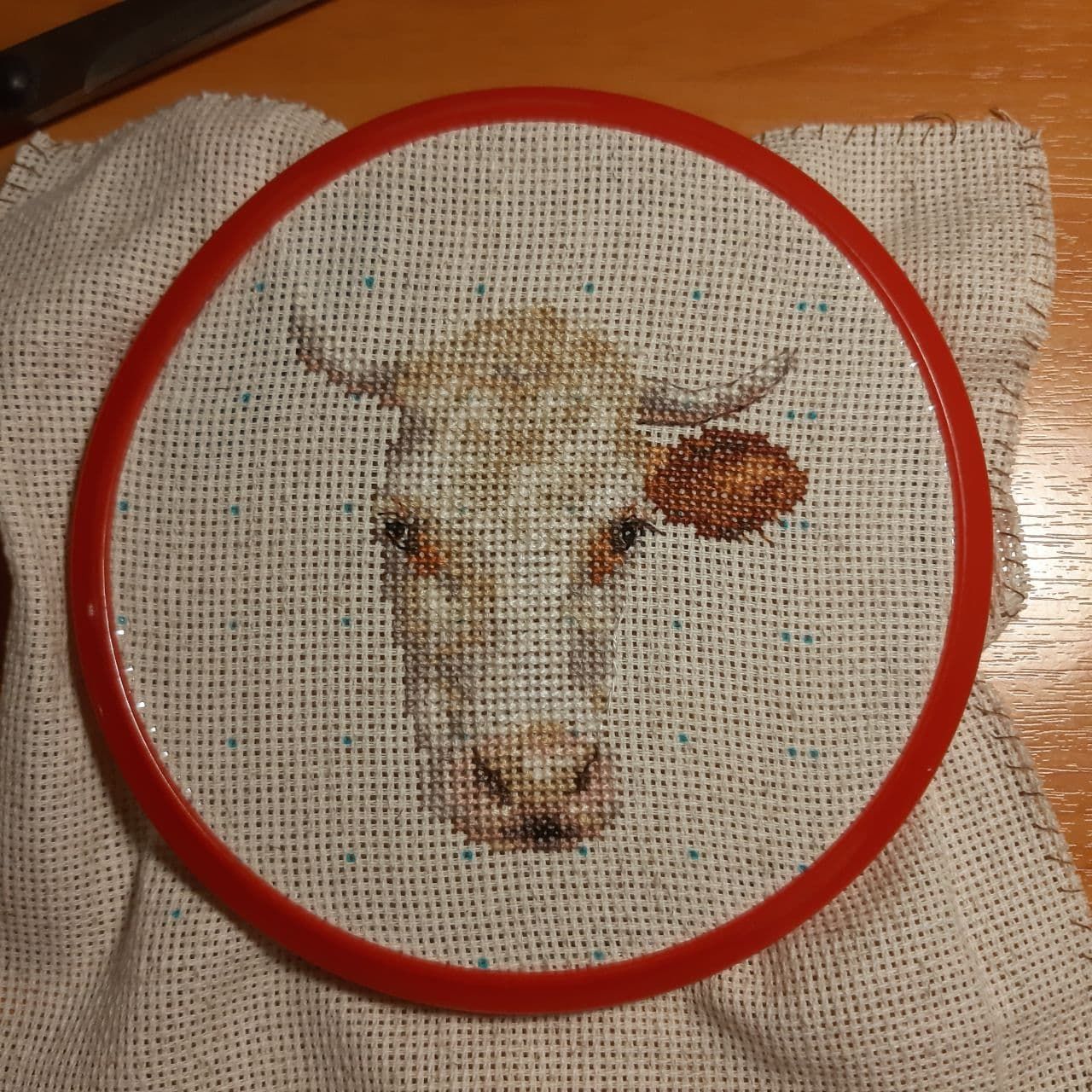 18 декабря 2020 4 часа назад, lenning сказал(а): Девочки, привет! Я с маленьким промежуточным этапом заглянула, просто весь вечер вчера смеялась над ситуацией и не могу не поделиться с вами. Итак, корову я вышиваю, надеясь еще успеть оформить в подушку к новому году. Сижу с пяльцами, как раз заканчивая бэкстич на морде. Подходит Степа, становится строго напротив меня, смотрит на мою работу и вдруг говорит: это кого же ты такого милого вышиваешь? Суслика?) Я с удивлением рассматриваю коровью морду без ушей и с одним рогом и как-то особой милоты не наблюдаю, а уж суслика и подавно). Говорю ему, что это корова. Тут настала очередь удивиться Степе, который упорно видит в ней суслика. Разобрались когда, я очень долго смеялась. Итак! Вот что вижу я, когда вышиваю А вот что видит Степа, стоя напротив работы)) Суслик не суслик, но явно какой-то грызун)). Видите? Мордочка, лапки, даже хвостик лежит, то, что на самом деле рог коровы)). Классно получилось, правда?)) Фантазия работает и это круто! nata2017, Lorans, mag и 6 других сказали спасибо Поделиться сообщением Ссылка на сообщение