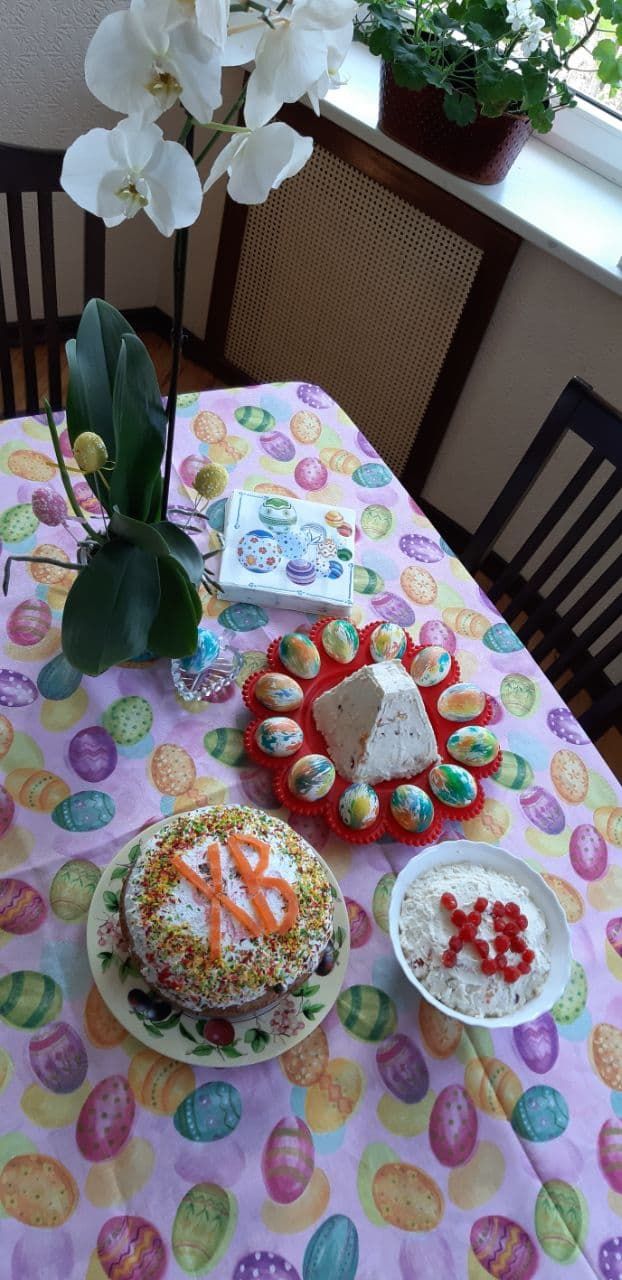 12 мая 2021 11.05.2021 в 18:33, Lorans сказал(а): Жажду фото! ЛЮБЫЕ! Балкона, мужа, обновленной комнаты, тебя, сестры, цветов... короче, хватит нам зубы заговаривать гони документальное подтверждение! Листала судорожно свой телефон на предмет этих самых фотографий)). Их как всегда крайне мало)), так что только как мы праздновали Пасху могу показать. Я в этом году решила покрасить яйца как-то по новому, нашла быстрый и очень простой способ в интернете и купила краски. На этом успокоилась. Ближе к делу, когда уже решила, что уеду, я вообще выбросила из головы покраску яиц. И вдруг прям накануне отъезда довольно поздним уже вечером муж мне вдруг говорит: а почему ты яйца-то не красишь? Вроде собиралась. Я ему ответила, что давным давно передумала, а сейчас уже поздно и я не хочу. Неожиданно муж стал настаивать, и я поплелась на кухню. Получилось просто ужасно! Видимо мое нежелание передалось этому процессу, я, кстати, уже когда яйца только поставила варить, уже была уверена, что у меня получится плохо, вот прям знала уже. Не ошиблась))) Вот "моя прелесть" Хотя...если немного прищуриться... и посмотреть немного сбоку.... наклонив голову, то некий налёт акварельности всё же можно уловить в этом окрасе, если будет сильное желание уловить . В общем, посчитала, что праздник мужу я организовала и пошла собирать чемодан, уже в ночи)). А у сестры мы вот чего наделали! Ну она у меня в принципе всегда украшает к праздникам дом, так что и без моего приезда было бы все так же празднично. Там еще много чего красивого было, но я вот только зелененькую композицию сфотографировала . Яйца мы покрасили всё тем же способом, каким я и дома хотела. Наверно дело было в красителях, хотя и еще кое-что мы изменили. Получилось как раз то, что я и хотела получить. Утром 2-го мая мы отправили эти фотографии моему мужу, как поздравительные открытки, на что он нам прислала свой суровый праздник . Это он мой пустой стул сфотографировал, это моё негласное место за столом Коричневые яйца это от родителей, он к ним с утра съездил, поздравил и отвез куличи, которые сам пёк, так что кулич у него, хоть и страшненький, но оооочень вкусный, просто он его не украшал. Нашла всё-таки фотографию цветка в саду сестры! Милый меховой первоцвет)) Цитата Лен, как Степа в Москву съездил? Как они с Витей время провели? Наташ, отлично! Там Витя целую программу разработал по приему гостя, приятно). В Москвариум съездили, гуляли по центру, в кино сходили, в компьютерный клуб, по ночной Москве Витя его катал на машине, показать какая она красивая в огнях, и даже полностью его нарядил на предстоящую свадьбу брата)). Сначала Витя что-то пытался сам искать, но так это очень трудно, потому как этого нет, то потом просто приходили в отдел, показывал продавцу Стёпу и спрашивал: что на него есть? Дело в том, что Стёпа сейчас вошёл в тот чудесный возраст, когда он уже вырос из детской одежды, а до взрослой ещё не дорос. Я и с Витей, помнится, мучилась этой проблемой, но ничего не изменилось за долгие годы, промышленность продолжает игнорировать этот возраст. Витя мне в растерянности звонил, что не может ничего найти. Я говорю: ладно, брось, у себя поищем в городе. Но сын уже закусил удила, что называется, поэтому Степа поступил домой с фирменным пакетом Levis . Сердце кровью обливается, честно говоря, потому как вещи без запаса совсем, сейчас немного подрастет и в
