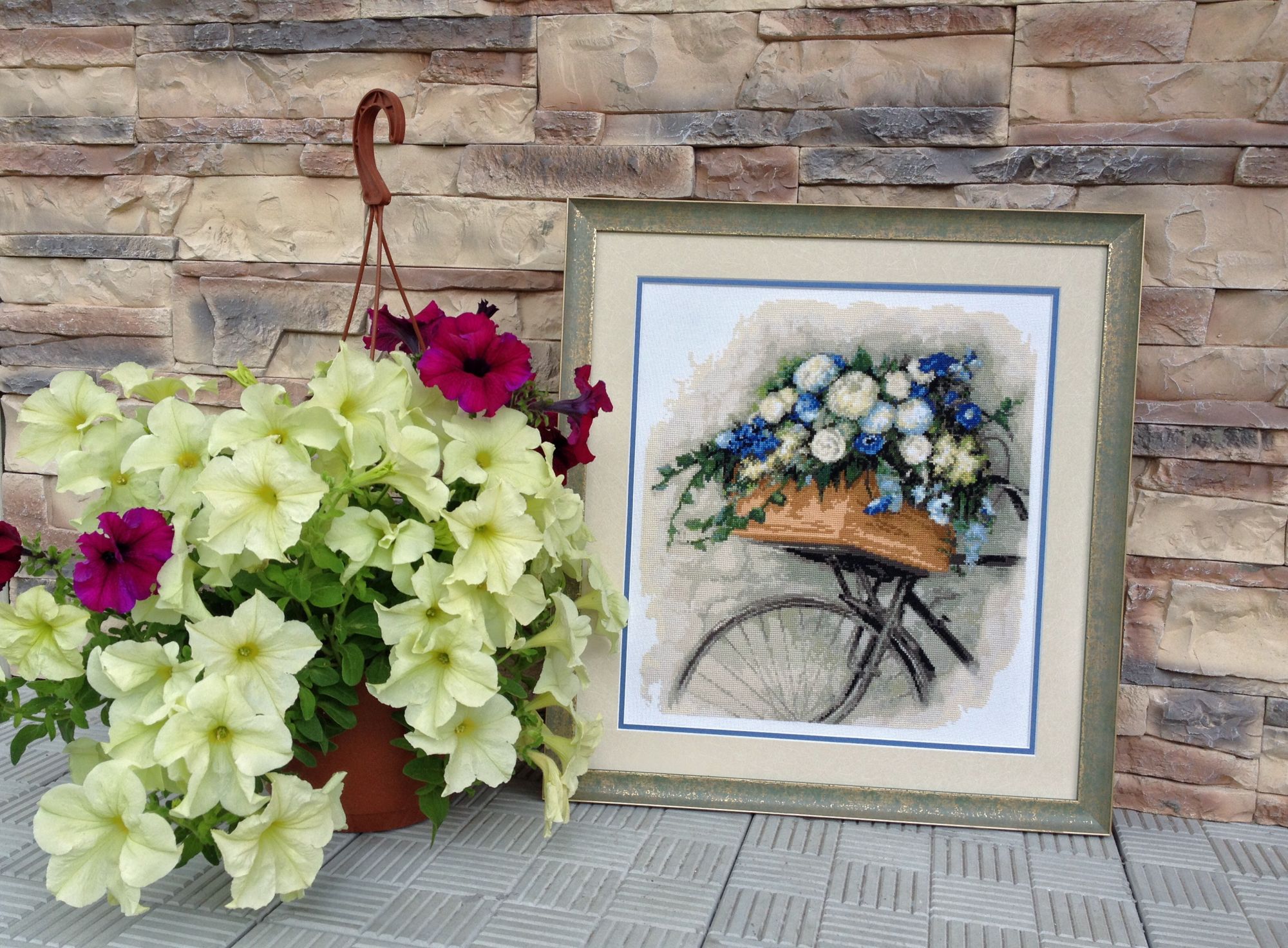 10 июля 2016 3 hours ago, Жекочка said: Ириш, какой же красивый велосипед, а цветы, а крестики просто идеальные, я прям зависла над этим фото Поздравляю! Молодец - всё успела! Я вообще-то прибежала на оформленный смотреть. В Инстаграме увидела и бегом сюда. Такая красота получилась, очень всё сочетается и паспарту и багет, хотя у тебя и не бывает по-другому Кстати, размерчик такой внушительный получился! Покажи здесь фоток побольше. Хочется получше твою красоту разглядеть. Женечка, спасибо!! Этот велосипед мне нравится очень, наверно, он теперь самый любимый! Оформился быстро, результатом я очень довольна И очень рада, что вышила его А вот с фото туго Почти все со мной Что случилось впервые, обычно мне совсем не хочется фоткаться с вышивками Оформление доволи простое, но как я люблю: синее паспарту нижнее и бежевое с разводами верхнее ( на фото с горшком петуний в правом верхнем углу это немного видно) и рама, перкликающаяся с сюжетом и паспарту. Я ещё птичку-невеличку и гортензию оформила, но о них в следующий раз, я теперь у родителей, время летит с бешеной скоростью Всем желаю хорошего лета! Надеюсь, я скоро добреду и до форума, и до вышивки, и, может, до книг, а то у меня все это поставлено на паузу Desha, svenlanos, tavenir и 28 других сказали спасибо Поделиться сообщением Ссылка на сообщение