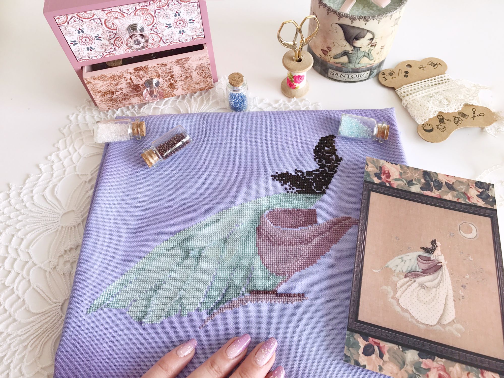 3 октября 2017 Девочки, привет!! Если вы меня ещё помните, я бы хотела вернуться в вашу тёплую компанию Планирую писать и появляться значительно чаще! Лето у меня выдалось абсолютно не писательным и очень мало вышивательным Зато было хорошим, как компенсация за прошлое, когда я начала седеть... Лирику в сторону, теперь процессы! Пожалуй, начну с Королевства Книг, кое-как дошла до половины Все же отношение у меня к нему противоречивое, я все никак с нитками не полажу Лишь бы какие они, честно, я не продираюсь, потому что все нитки люблю и ничем не привередничаю. Но в то же время, отшив кусочек схемы и особенно, если отнести его даже на незначительное расстояние, вполне довольна результатом Мое летнее продвижение Королевство шилось только в Греции, вернувшись, отправилось в кладовку на хранение Временами меня накрывает волна нежности к моей коллекции наборов и схем, тогда я подолгу все рассматриваю и мечтаю о предстоящем процессе И вот в один из таких моментов попались мне на глаза схемы Мирабилии, и я наконец-то решила, что хватит мечтать, пора шить! Выбор пал на Фею Луны (Fairy Moon). Основу (у меня Мурано) я красила сама, чем осталась вполне довольна! Выбрала этот способ лишь потому, что обалдела от цен на окрашенные ткани, тот оттенок, что мне понравился, стоит 25 фунтов Процесс пошёл бойко, но со временем энтузиазм поутих. Я очень люблю Инстаграм, в нем все, что мне надо: фото и масса идей и вдохновения, поэтому захожу туда часто и заметила массовые отшивы Мирабилии Видимо, это и заставило меня немного притормозить. Абсолютно внепланово (перебирая старые журналы) у меня появился новый процесс! Хотя скорее, процессик - Мишка. Схема их журнала Cross Stitch Collection N239 Медведь вышился как-то залпом, и следом возник ещё один спонтанный процесс -- Цветущие сапожки (Blossoming Wellies) от DMC. Здесь покажу только подготовку, продолжение должно быть на днях Вот как легко из убеждённой "однопроцессницы" у меня стало 4 проекта! Один вышился, что уже радует! И напоследок покажу кое-какие обновки и не совсем :-) В последнее время очень нравятся работы Уильяма Морриса, хочу вышить что-то по этим мотивам, поэтому купила пару книг В Афинах случайно обнаружила чудо-магазин с тканями В итоге чемодан стал на пару кг тяжелее И мои любимые Мирабилии и Lavender and Lace На этом, пожалуй, все. То, что не показывала месяцы, показала все за раз И это без фото "не по теме"! Кстати, кому интересно, в моем Инстаграме масса всего! Я там irina_kostakis Всем солнечного сентябрьского настроения! Лена1973, Melawen, Desha и 28 других сказали спасибо Поделиться сообщением Ссылка на сообщение