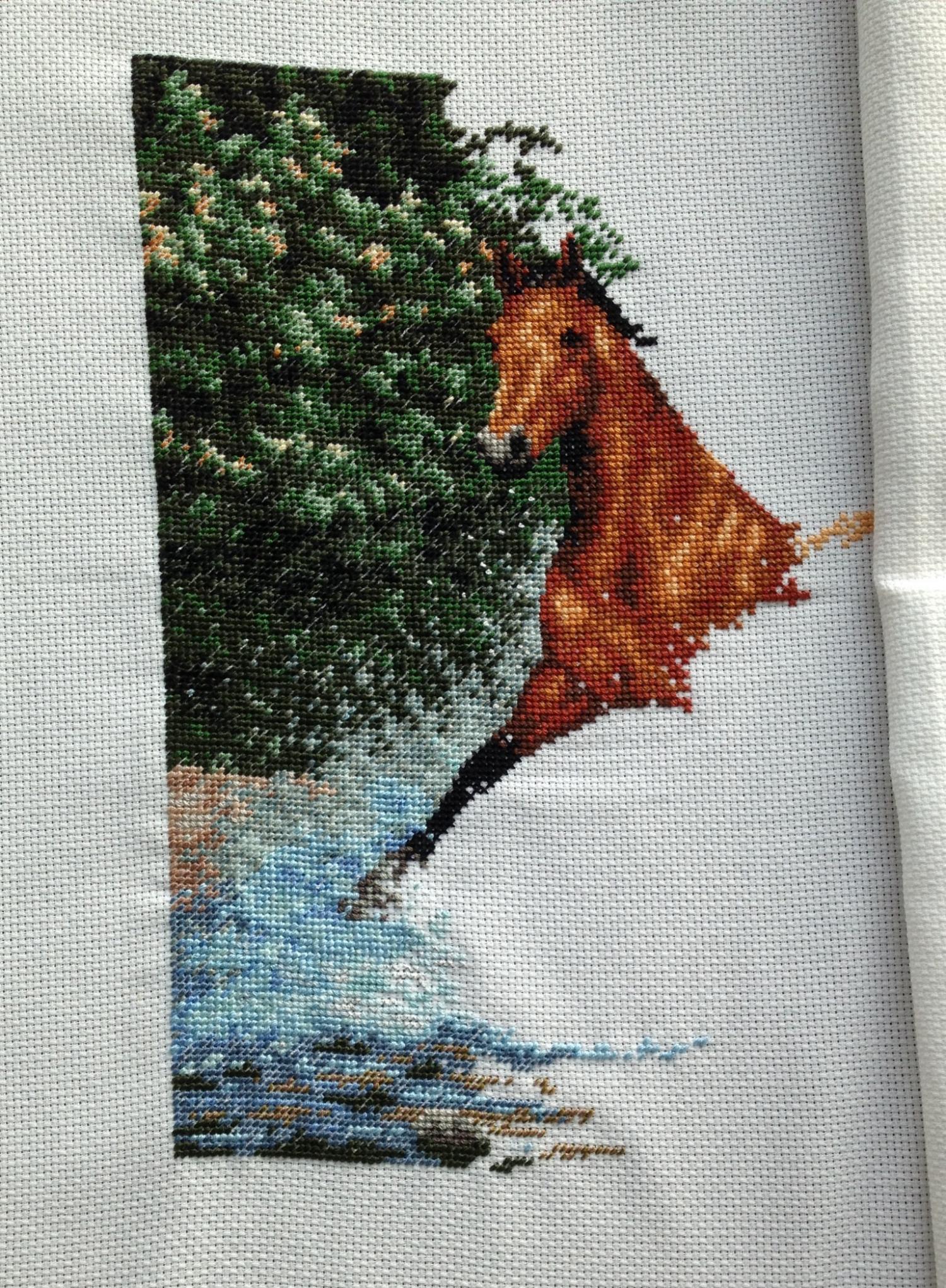 19 января 2014 Emeraldrose-Роза, Жекочка-Женя, hobby_time-Елена, Лена1973-Елена, Meri Poppins-Оксана, Nat717-Наташа, Lilyana-Лиляна, ирония-Татьяна, Annette_S -Анна, девочки, спасибо, что заходите в гости!! А я все шью лошадей Правда, урывками, да в основном ранней ночью Поэтому тащусь, как черепаха, ну а когда на линейку посмотрю, то аж стыдно становится, что так смело всем рассказывала, что планировала их вышить к концу января! Приколистка, блин! Перешила я переходы в воде, которые мне не нравились, вроде лучше стало. Премного благодарна неизвестной девочке, чей процесс я нашла в каком-то блоге, нитки я подбирала по ее фотке В общем, вот, что есть Попробовала гологафическую ниточку Мадейры, прикольная такая, блестит клево, да и шить ей не сложно, хоть она и норовит постоянно выскользнуть из ушка иголки Еще раз спасибо всем, кто заходит на огонек, мне ооочень приятно!! Meri Poppins, Juliay, Юнона1960 и 12 других сказали спасибо Поделиться сообщением Ссылка на сообщение