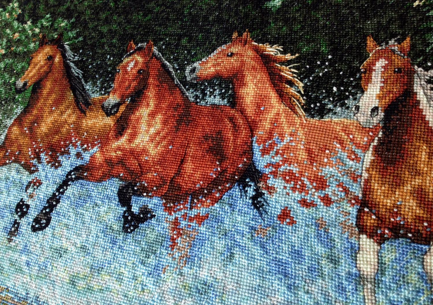 4 мая 2014 Девочки, привет!! Поздравляю вас с майскими праздниками! Желаю отличного настроения, теплой и солнечной погоды, пикника на даче и свободного времени для приятных дел!! Я же хочу поделиться радостью! Вернее, радостями -- их у меня аж 3!!! Радость первая -- вчера я получила первый презент к 7 мая (это мой ДР) от Оксаны Meri Poppins!! Оксаночка, спасибо огромное!!! Так приятно!!!! Ты умеешь читать мысли - эта пташка мне давненько приглянулась! И спасибо за открытку с такими теплыми пожеланиями Вот ты и начала пополнять мои закрома Радость номер два -- я вышила лошадей!!!! Честно скажу, что горда собой, тк успела к сроку! Тяжеловато они мне дались, так долго я их мучала, и осилила 30 апреля. По-моему, смотрятся они красиво, столько в них силы и мощи, кажется, что вот-вот проскачут мимо и окатят брызгами. Но все же эта работа на результат, близко ее рассматривать я сама стесняюсь, столько неровных полукрестиков в глаза бросается, жуть... Да ладно, зато вышила. Шила подбором, одно время сомневалась в некоторых цветах, но вроде все смотрится реалистично И третья радость -- 1 мая я принялась вышивать новый наборчик Bothy Threads If Only!! Как же мне нравится эта девочка!! Чем-то принцессу напоминает , но не гламурную, а настоящую Вышила несколько рядов фона сверху, какое удовольствие шить крестиком в одну ниточку после полукрестов в 5 и 6 сложений!! Одним словом, кайфую по полной! Чего и всем желаю на весь прекрасный месяц май!! Peppi, tanya_mirymir, Meri Poppins и 17 других сказали спасибо Поделиться сообщением Ссылка на сообщение