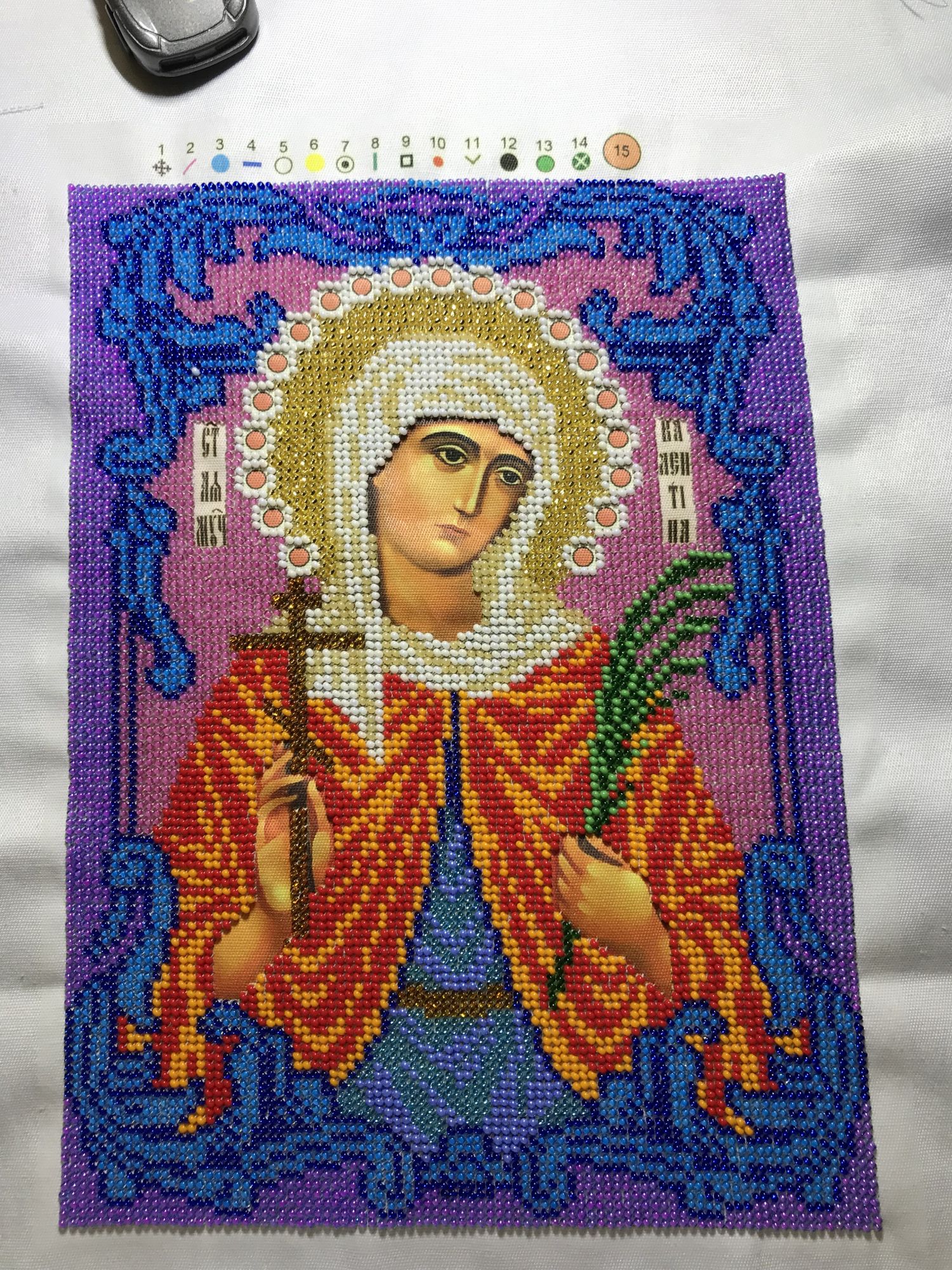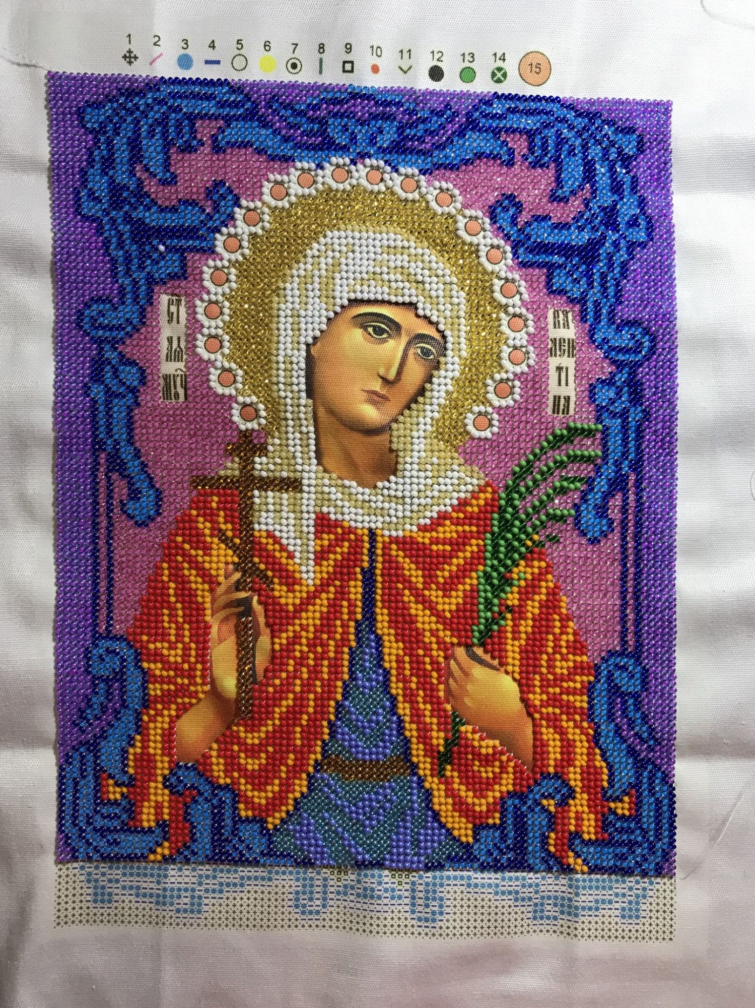 23 апреля 2018 2. Вне плана я вспомнила про бабушкин юбилей и решила ей вышить именую икону) В итоге был куплен набор Вышиваем бисером «Святая Валентина». Вышивалось быстро, интересно, бракованного бисера совсем немного) Осталось приклеить стразы и надеюсь завтра позеленю эту гаичку)) jetemi, irinka-mandarinka, Nadinka-Blondinka и 2 других сказали спасибо Поделиться сообщением Ссылка на сообщение