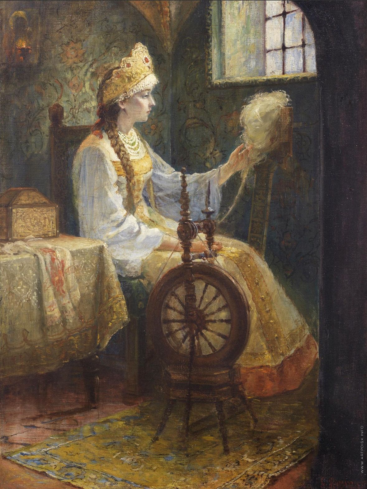 21 апреля 2018 Девочки, я уж по теме прях немножечко ещё пройдусь, так сказать, стихотворной поступью. Вот как пряли на Руси-матушке: "Ночь и непогодь. Избушка плохо топлена. Нитки бедная старушка сучит у окна. Уж грозы ль она боится, скучно ли,— сидит, Спать ложилась, да не спится, сердце всё щемит. И трещит, трещит лучина, свет на пряху льет. Прожитая грусть-кручина за сердце берет. Бедность, бедность! ..." (Иван Никитин) И вот как пряли у них там (стихи Иоганна Гёте): "Села прясть я как-то раз, принялась за дело... Да, видать, в недобрый час я за прялку села. Вдруг - прохожий. Взгляд, вопрос - денешься куда же? Хвалит лен моих волос и льяную пряжу. Вижу: чувств не может скрыть, я сама смешалась. И моя льняная нить раз - и разорвалась. Тут уж все пошло вверх дном: прялка и работа. С тонкой пряжей, с белым льном сбилась я со счета... " Несправедливо это - у них белый лен да тонкая пряжа, а у нас такое, что только сучить можно... monstrochka, alen_73, letka и 10 других сказали спасибо Поделиться сообщением Ссылка на сообщение