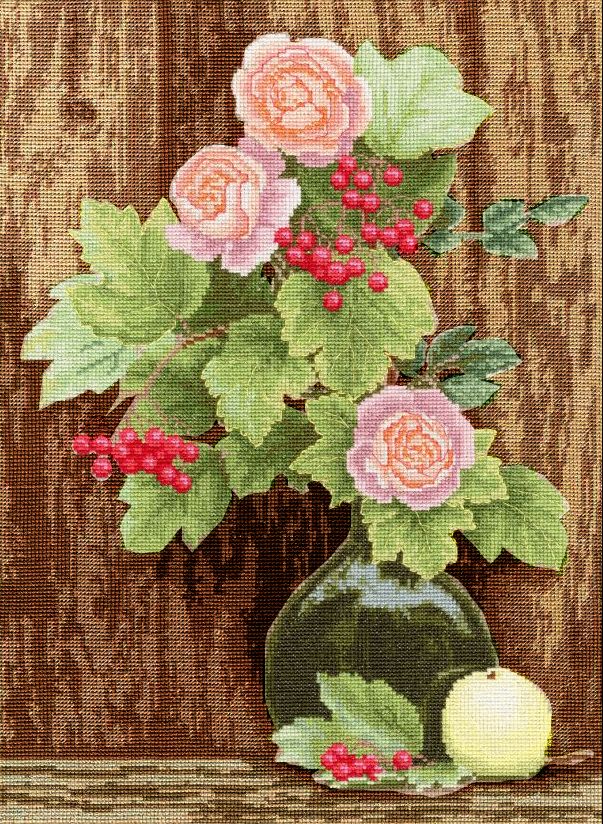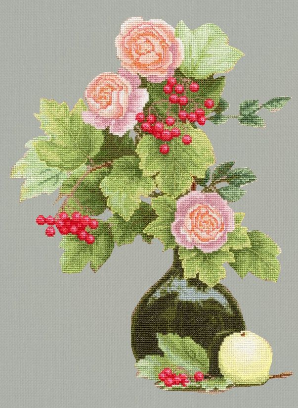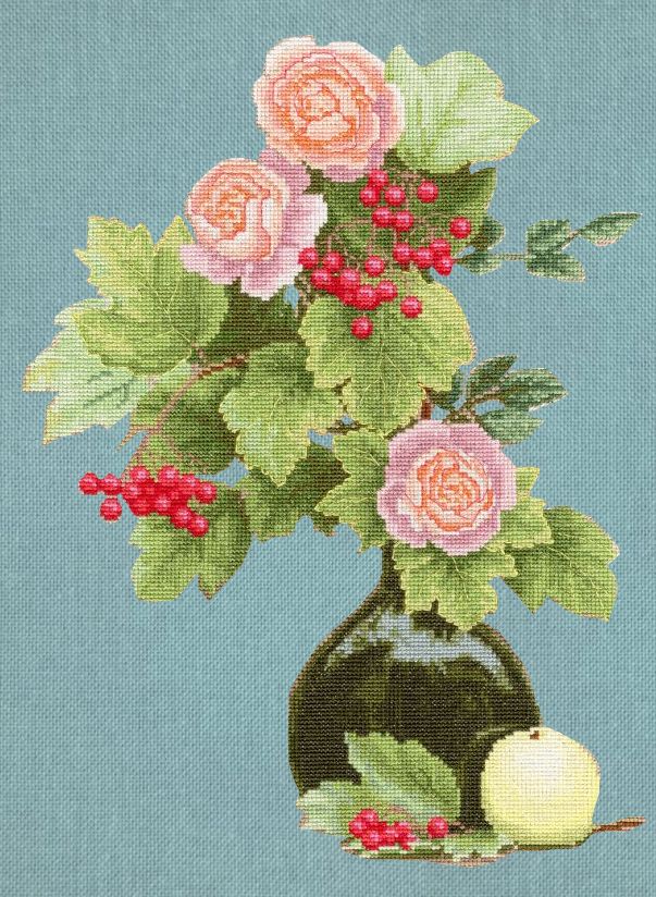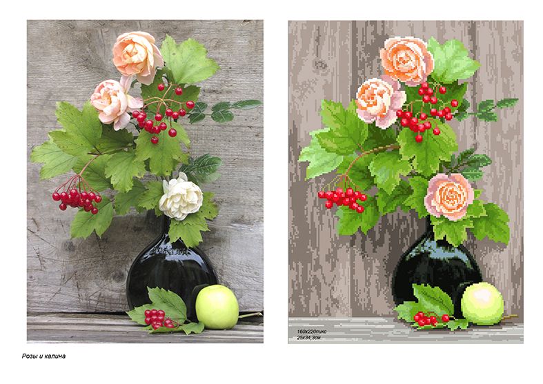 2 октября 2018 В 01.10.2018 в 19:07, Jemmalinne сказал: Мне очень понравилась вот эта разработка "Калина и розы" 10 часов назад, Леся Песня сказал: Мне она тоже понравилась, единственная из всего, наверное... Не очень понимаю, правда, что это там слева лежит (яблоко?.. Мне упорно видится очищенная луковица), и теней не хватает, но нравится. Если вышить на равномерке цвета какао, можно с фоном страшненьким не заморачиваться. 9 часов назад, Luba52 сказал: Калина и розочки очень приятны по цветам! Теней не хватает да, упрощает...но цвета необычайно нежные и вкусные! Спасибо за внимание к работе. У меня самой впервые не однозначное отношение к своему дизайну. Обычно как то чётко, либо нравится, либо не нравится. На этой работе я зависла. Мне нравится листва, мне нравится, как сочетаются по цвету ягодки калины и розы. Над розами долго думала, разные варианты пробовала, вот свои рабочие образцы решила показать. Согласна, яблоко вышло плоским, думаю этот эффект усиливает реалистичная, объёмная бутылка. «Страшненьких фонов» больше не будет, хотя по моему мнению, он здесь нужен, я бы его ещё темнее сделала, но вижу, что не нравится народу. В дальнейшем, для цветочных композиций, в основном планирую фон делать, как в работе «Пионы в вазе». Белый фон, лёгкая тень. У кого есть мнение на сей счёт, поделитесь. АриЯ, N.Natali, Пумочка-13 и 25 других сказали спасибо Поделиться сообщением Ссылка на сообщение