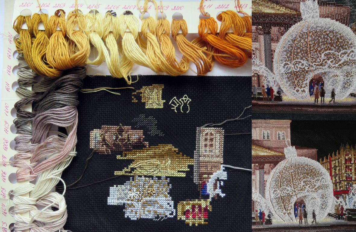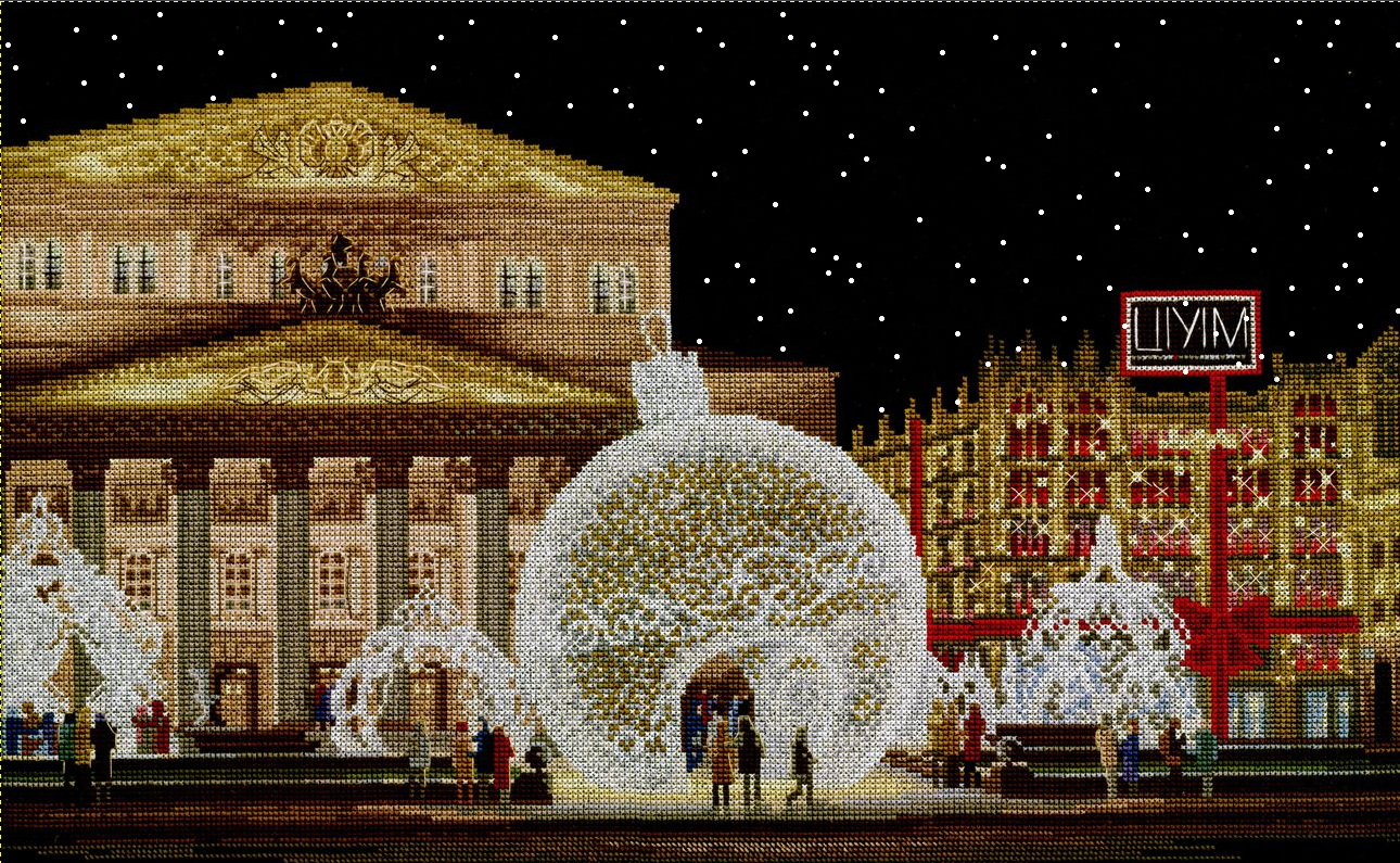3 декабря 2020 5 часов назад, Радуга Мира сказал(а): Всем здравствуйте, всем спасибо за проявленный интерес и комментарии к моей новой работе)) Я начну с неба. Увы, но в городе мы не видим звёзд, и чем ярче освещение, тем чернее небо. Итоговый вариант выбран не случайно, были варианты с заполнением неба облаками и луной( месяцем ), но не понравились. По мимо того, что это противоречит природе вещей, ну да ладно, казалось бы можем же мы что то да приукрасить, оказалась вот какая закавыка - вариант с полной луной, которая допустим могла бы подсветить облака, подавляющему большинству из тех с кем обсуждался дизайн, не понравился. Было сказано, что луна вызывает чувство не ясной тревоги, и ещё, что она спорит с центральным шаром, вот как то так. Я пробовала месяц, но лично у меня этот вариант вызывает чувство неправдоподобности. В результате пришла к тому, что видела - освещённая архитектура и чёрно-бархатное небо. По поводу надписи ЦУМ. Я как то воспринимаю её таким же арт-объектом, как и все присутствующие световые конструкции, всё вместе и даёт ощущение конкретного места. Бывает, что в процессе работы вносишь изменения в пейзаж, но здесь ничего менять мне не захотелось, по моим ощущениям здесь всё в равновесии. Варианты отрисовки с разным небом показать в хорошем качестве не могу, поскольку это готовая схема. Но зато принесла фото от вышивальщицы, оно очень удачное по цвету, сделано при естественном освещении. Так же выкладываю скрин отшива без рамы. Лично у меня есть ощущение, что рамы на скрине много, хотя думаю в реальности паспарту(оно бархатное) выгодно подчеркивает дизайн. Ещё добавлю фото, которые подвигли на этот дизайн. Фото было много, впечатлений ещё больше и очень захотелось перенести это в вышивку. Это декабрь 2019. Мне давно хотелось увидеть праздничную Москву своими глазами, а не по телевизору, но даже живя рядом с Москвой, всё как то не получалось. Друзья и знакомые сказали, что если хотим увидеть, что ни будь кроме толп таких же гуляющих, надо выбраться до начала праздничных дней и обязательно в будни. Всё у нас сложилось, прогулка получилась чудесной. Бывает так, что ожидания не оправдываются, а здесь получилось перевыполнение празднично-новогодних впечатлений. Единственно чего не хватало, так это снега. Его полное отсутствие вносило какую то сюрреалистическую нотку, но это даже как то усилило ощущение сказочности предновогоднего города. Очень сильная работа. Живая. А еще меня "зацепили" люди. Почему то начала я сравнивать фото и вышивку по людям. Они, конечно, не везде совпадали))) Кроме центральной пары возле шарика. И я подумала, что эти люди даже не знают, что их запечатлели в вышивке. И кто знает, сколько людей их вышьет и у кого они дома будут "висеть" Хоть со спины, но все-же))) Аж завидно! Буду теперь внимательно присматриваться к дизайнам. А вдруг и я где-то там есть) Tatiana Ch., kas_julia, Сибирская Кошка и 15 других сказали спасибо Поделиться сообщением Ссылка на сообщение