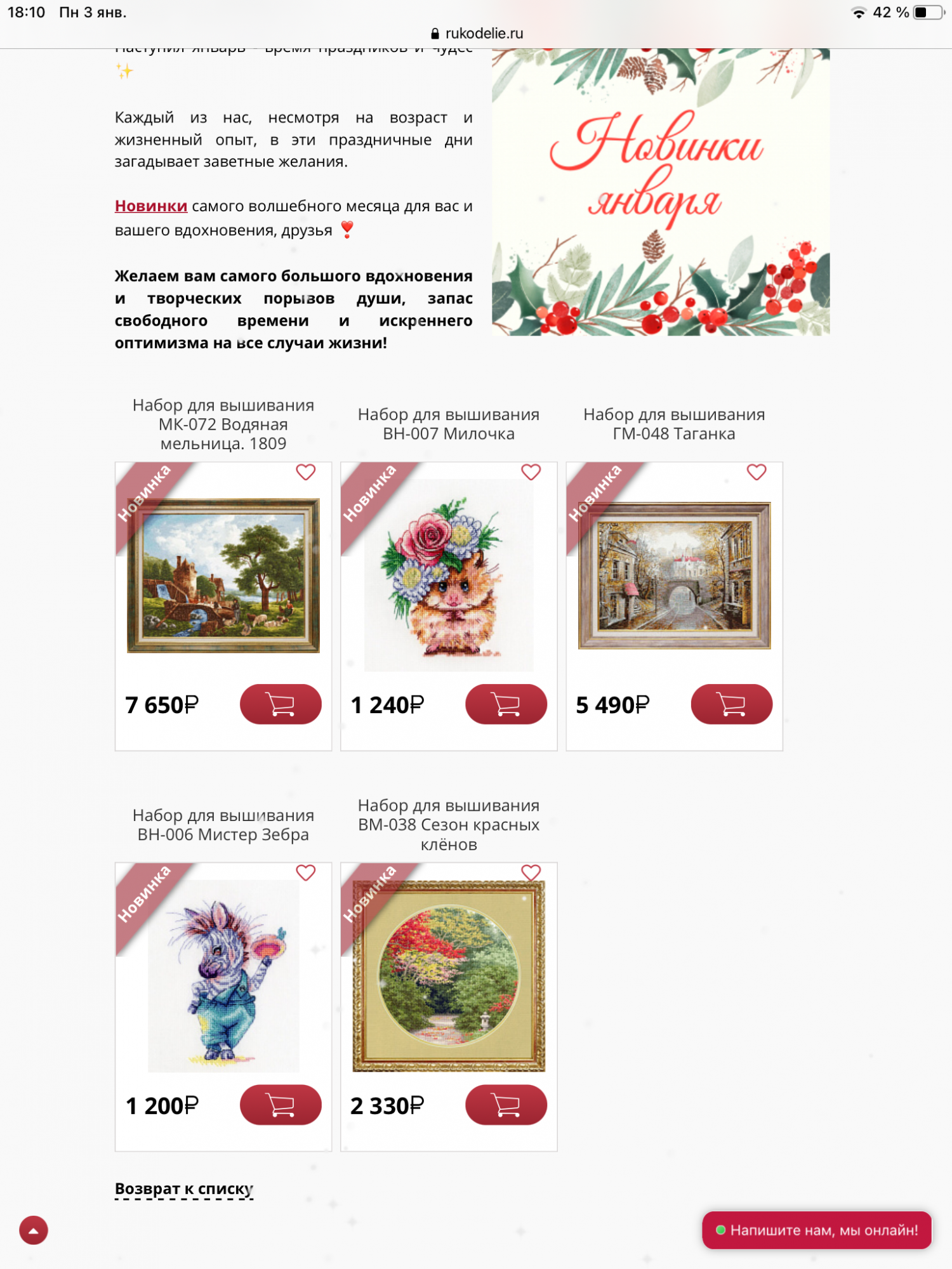 3 января 2022 1 час назад, Persik77777 сказал(а): Там ещё есть новинки. Зебра и то ли свинка то ли крыска. Но почему то милочка ) цены конечно шокируют) особенно на первый набор ) Зы хомяк и зебра на водорастворимой канве. О как) У Водяной мельницы размер:59,7× 77,2 см Сезон красных клёнов выпустили Эх, где бы растяжитель времени взять.... lamina-65, MargoNik, Persik77777 и 2 других сказали спасибо Поделиться сообщением Ссылка на сообщение