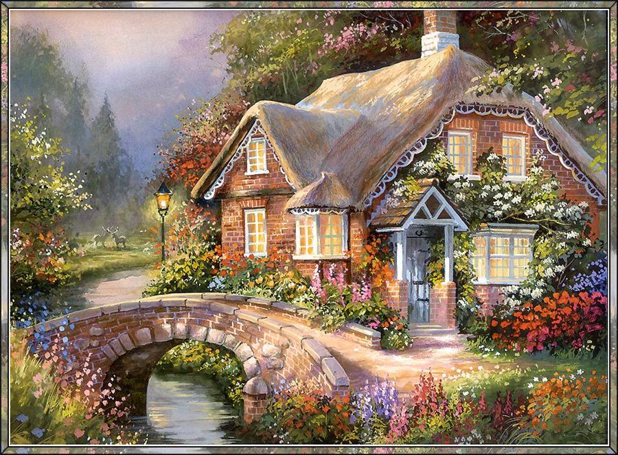 26 декабря 2013 Девочки, это же вышивка по картине английского художника Джима Митчела, вот зеркальный оригинал . У него такой стиль рисования. Посмотрите другие его картины. Английский художник Джим Митчелл (Jim Mitchell) родился в 1935 году. Его работы наполнены позитивом, которые дарят хорошее настроение и оптимизм. Джим специализируется на поздравительных открытках и детских иллюстрациях. Здесь такой домик, залитый солнечным светом. Может в жизни мы и не видели такого неба, но в сказке возможно всё Думаю, если сделать небо голубого оттенка, то получится дисгармония. Мне домик целиком нравится таким, какой он есть, может даже куплю в будущем (когда разгребу свои запасы ). А на оригинале голубизна все-таки присутствует ))) Juliay сказал(а) спасибо Поделиться сообщением Ссылка на сообщение