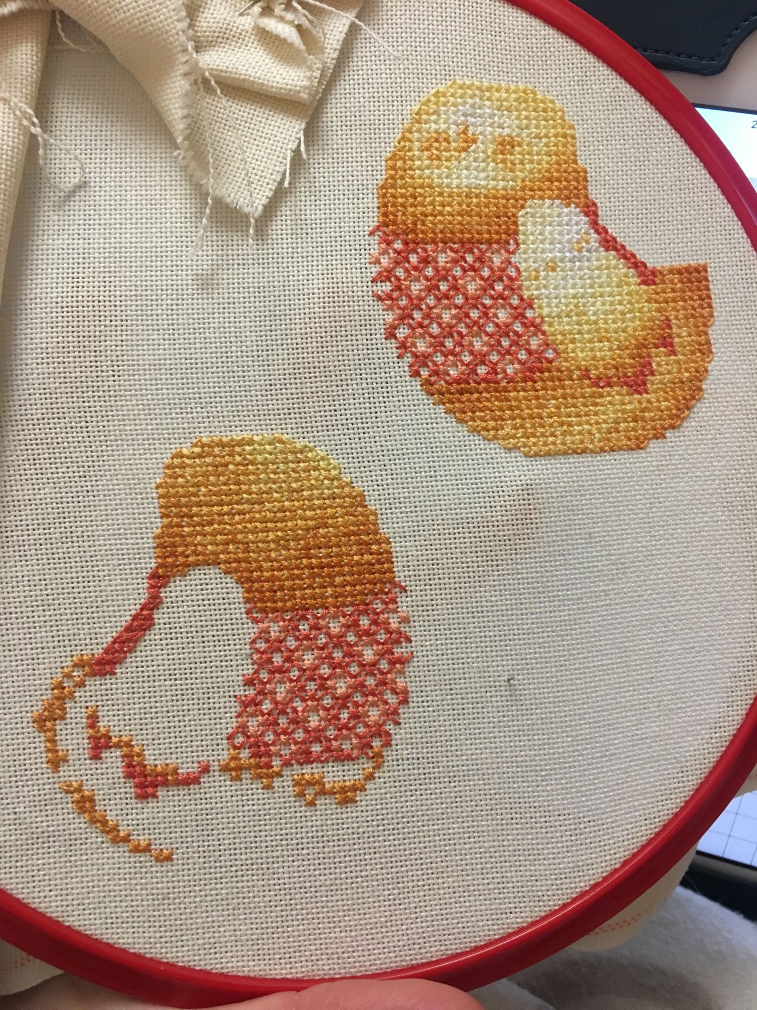 7 января 2019 С Новым годом пупсики! а я с первой работой 2019! И с при этом с тремя финишами! а как вам такой поворот?))? интрига? читайте дальше: во-первых, я добила хард салфетку. прошу вас не разглядывать и не комментировать. Увы я ошиблась, сильно и уже хотела выкинуть. Потому что все. Силы меня покинули. но девочка, которая хотела салфетку, попросила отдать так. Окошки не вырезала, доделала еле еле.. через себя. Просто хочу закрыть эту работу и про неё не вспоминать. потом мы с девочками решили шить ещё один пончик - зимний. Вышила за 5 часов. Поэтому вот вам фото переда и зада: и вот она первая от и до: смородина по схеме Екатерины Волковой как выяснили шила я на флобе 36ct у меня с этой смородой случилось происшествие. Нас ночью залил сосед и я уже когда ложилась обратно спать махнула на эмоциях рукой и уронила стакан, в котором было недопитое вино... и конечно разбила и пролила... в общем в пять утра я стирала вышивку выглядело все так.. я уже была в расстройстве... но меня спас ванишь! Все отошло! Я очень рада была. а как ваши каникулы? А ещё собрала птичку Sky026, Путешественница, Norna003 и 9 других сказали спасибо Поделиться сообщением Ссылка на сообщение