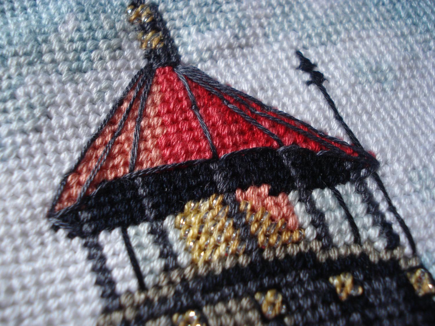 8 марта 2015 Поздравляю всех вышивальщиц с праздником Весны, желаю побольше теплых солнечных деньков и свободного времени для рукоделия! Закончила маяк, постирала, переживала, отстирается ли грязь на сгибах и не полиняют ли нитки. Все отстиралось, ничего не полиняло - это плюс. Вытягивала еще влажную работу сначала руками, потом закрепила канцелярскими зажимами. Снимала со скоб, вытягивала еще несколько раз, закрепляла опять. Не помогло... Вышивка перекошена до ужаса - это минус. Я сама в этом виновата - читала, что такие работы надо вышивать как минимум на пяльцах - гобелен, да еще в 6 нитей. Понадеялась на авось - мол, я же осторожно, не буду сильно затягивать стежки, да и сколько раз уже вышивала на руках. Теперь будет мне наука! А так вся надежда на багетку. Это до стирки и бэка: Это после стирки и украшательств (добавила металлик в свет лампы): Почти весь бэк заменила на выкладную нить, потому что практически везде это длинные прямые линии, которые прерывистыми стежками вообще не смотрятся. По поводу нанесенного на страмин рисунка: так получилось, что практически сразу после начала маяка я попробовала наволочки от Вервако тоже на страмине, и там рисунок был нанесен идеально ровно, тютелька в тютельку, аккурат по клеточкам. Здесь же - полнейшая лотерея. Начала я с неба, где всего три цвета и переходы не так катастрофичны. Потом перешла на маяк, где симметрия играет немаловажную роль и малость взвыла. Затем смирилась и шила "по приборам". На домике смотрителя в схему не смотрела, ориентировалась на свое восприятие. А когда остались трава, цветы, камни и дорожка, расслабилась - вот тут четкость рисунка уже не столь важна - среди такого буйства красок легкая хаотичность очень даже к месту. Понравился ли мне гобелен с нанесенным рисунком? В целом да. Хочу ли я вышить еще что-то подобное? Хочу. Буду ли я умнее и стану ли использовать пяльцы? ОДНОЗНАЧНО! CherepOlka, Татуся, terezka и 8 других сказали спасибо Поделиться сообщением Ссылка на сообщение