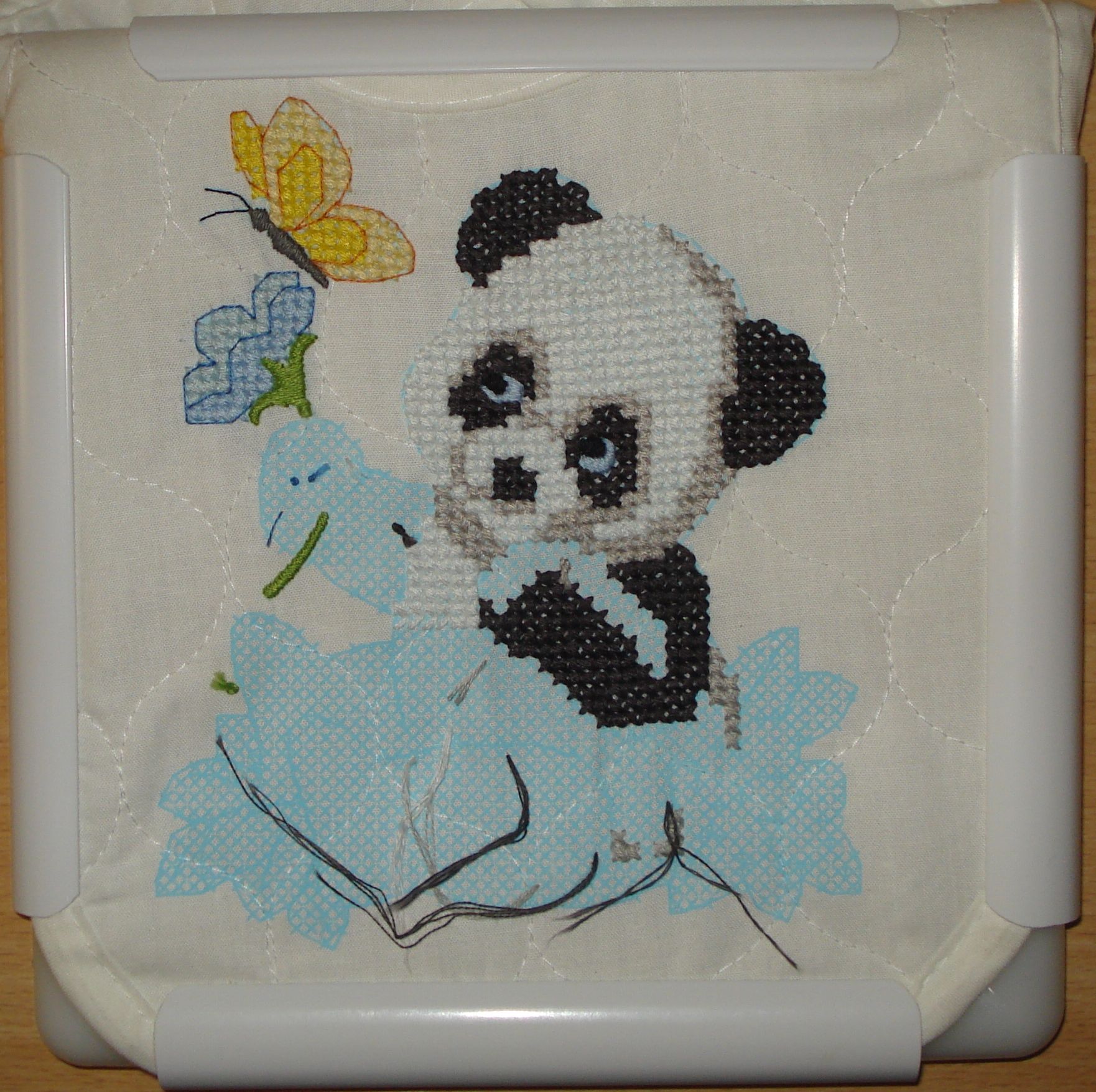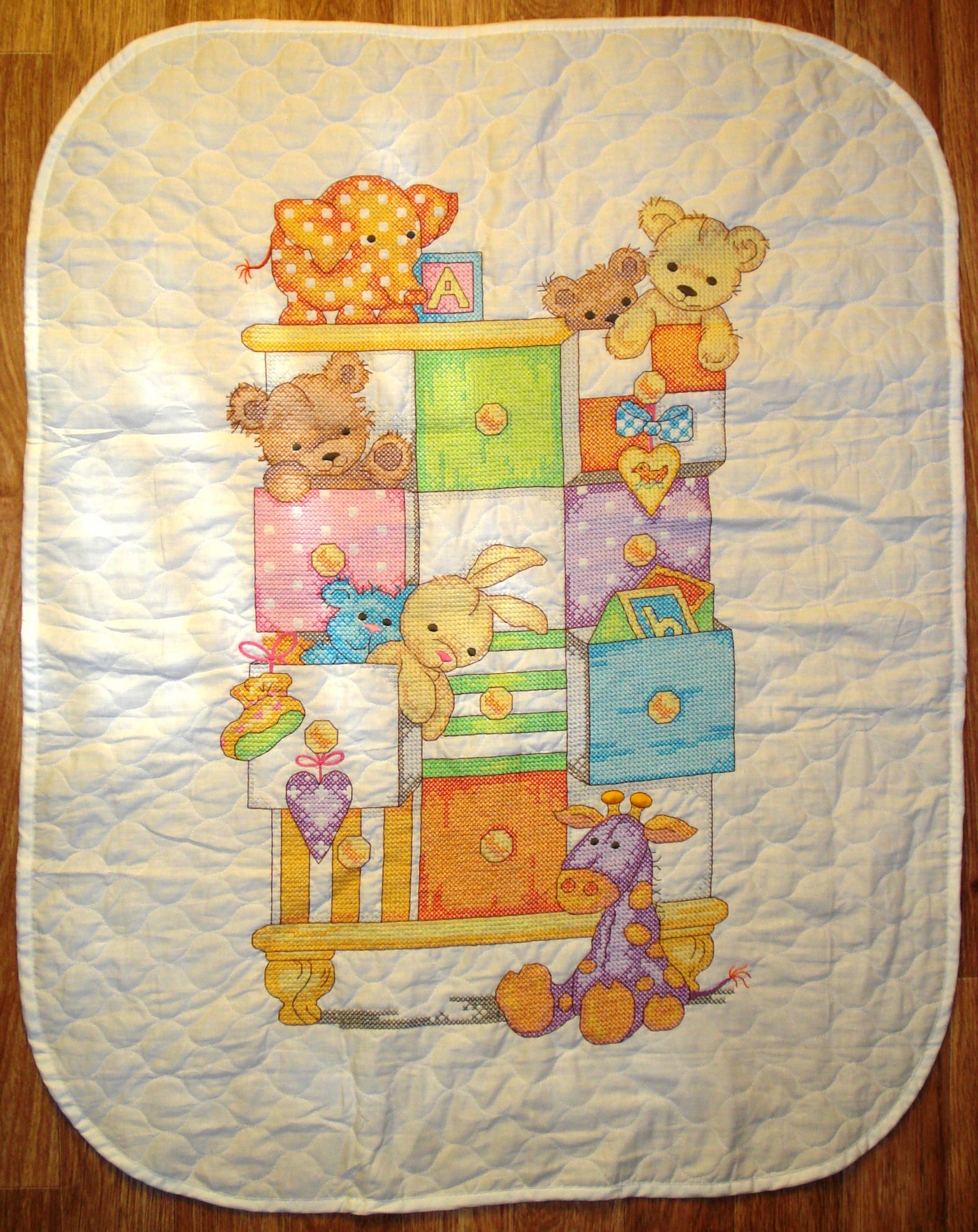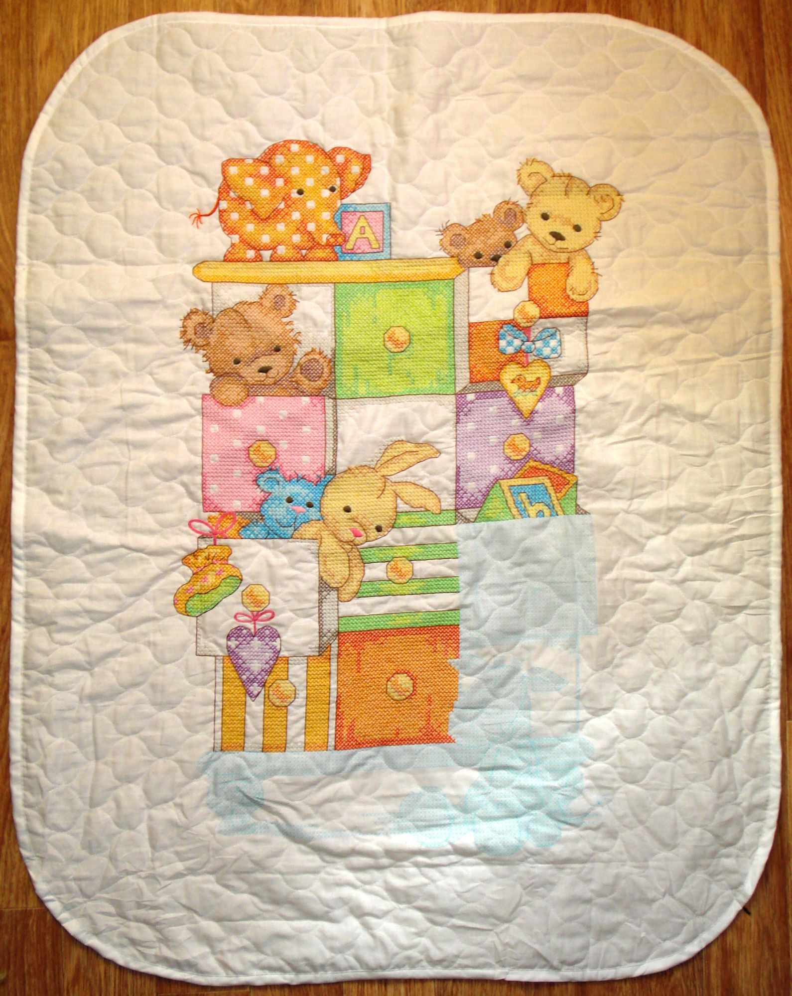 10 января 2017 Доброго зимнего дня! Поздравляю всех с прошедшими праздниками! Опять пришла набегом после большого перерыва, ибо показывать было нечего. За это время вышила и оформила милую миниатюрку от Риолис. Риолис (Сотвори Сама) 1405 От всего сердца, 11х11, лугана 25, счетный крест и вышивка бисером Вышила за 4 дня: первый день потратила на крестики, второй на бэкстич, а два оставшихся пришивала бисер. Все материалы понравились и были приятны в работе: и ниточки Анкор, и равномерная основа красивого цвета, и крупный ровный бисер. Оформила в пластиковый багет без паспарту, чтобы все внимание было не на нем, а на равномерке (как же хорошо она смотрится на незашитых участках, в отличие от аиды!). Стекло обычное, так как из-за бисера расстояние между вышивкой и стеклом больше обычного, а антиблик бы все конкретно размыл. Работу повесила в затененное место, где она совершенно не бликует. А теперь текущий процесс - моя цветотерапия этой зимой. Dimensions 73537 Одеяльце Детские вещички, 109х86, печатный крест Вышиваю и отдыхаю: схема простая, большие одноцветные участки. Первый раз за все время попробовала стебельчатый шов! Было страшно, но на деле оказалось легко и просто. Глаза и носы игрушек вышиваются гладью, я с ней особо не дружу, но выглядит вроде прилично. Ткань прокалываю насквозь, так крестики получаются быстрее и ровнее, чем в нагрудниках. Купила флис, которым закрою изнанку и утеплю одеялко. Irinaki, Хельга, ОлюшКа и 6 других сказали спасибо Поделиться сообщением Ссылка на сообщение