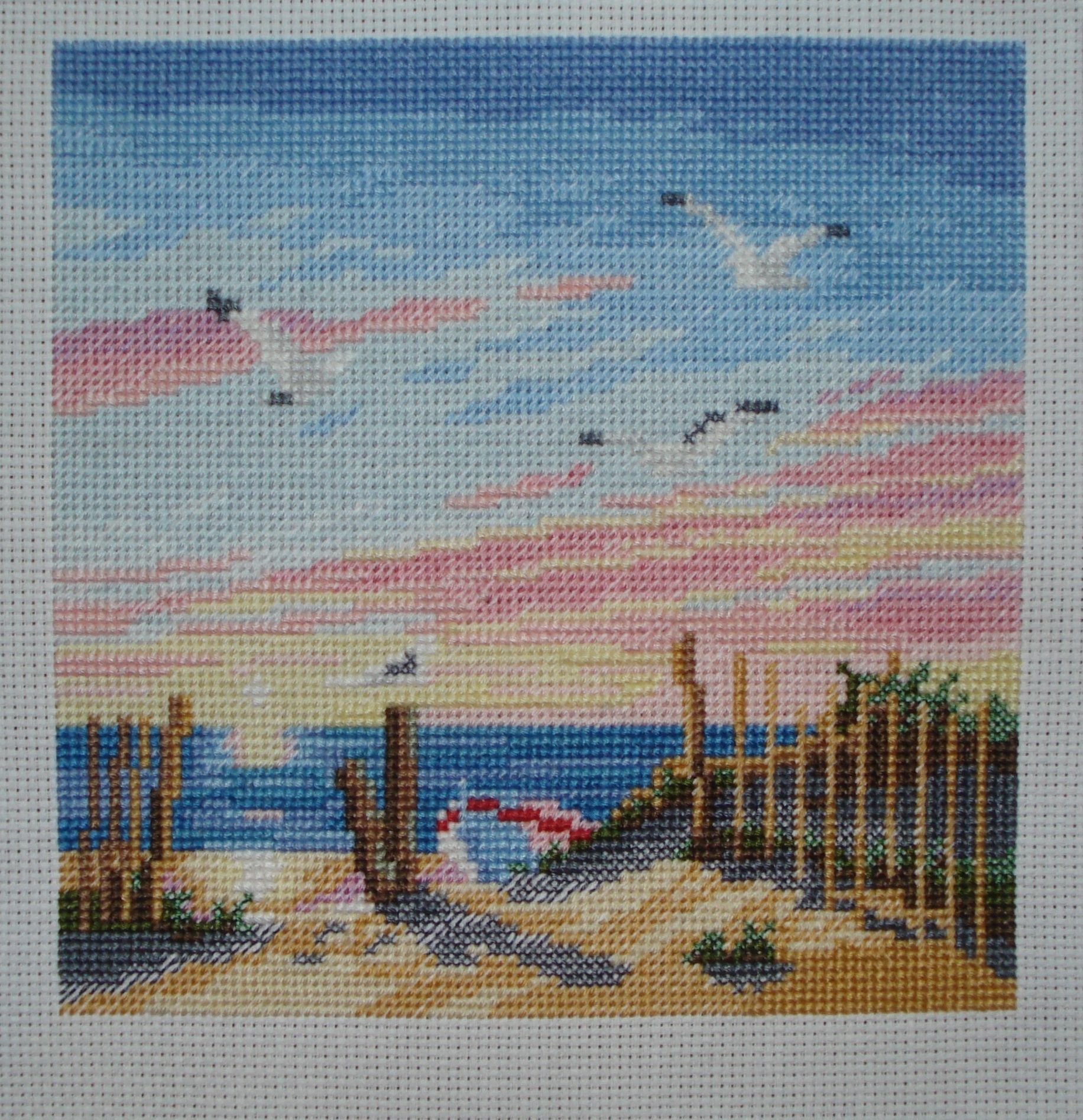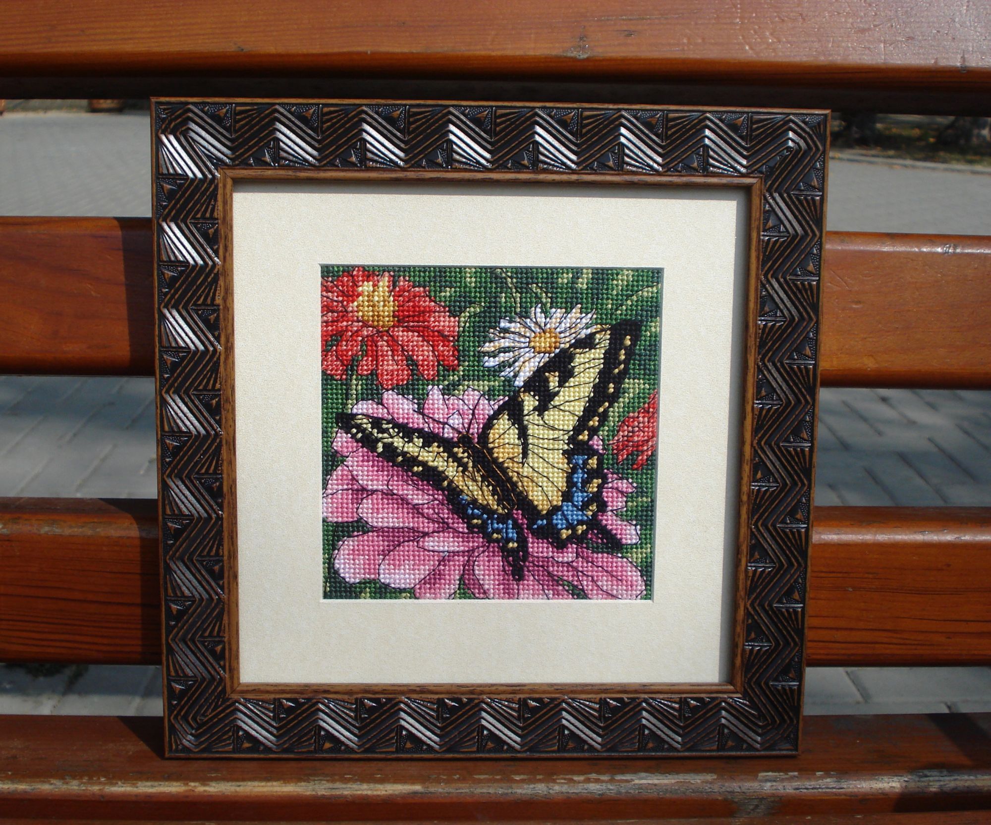 30 июля 2016 Опять я пишу с большим перерывом, зато есть что показать. Закончила входную дверь. Процесс двигался не так быстро, как я рассчитывала, потому что в этом дизайне много креста, полукрестом шьется только фон - стена и зелень. Зато результат мне очень нравится, особенно как падает тень на дверь, цветы и крыльцо. Еще образовался маленький внеплановый процесс - надо было в кратчайшие сроки вышить подарок на юбилей близкому человеку. Порылась в закромах и поняла, что гобелен 13х13 см на крупном страмине я вышью быстрее, чем мини-голд 13х18 см на 18 каунте. И вот, за неделю отдыха на море появилась бабочка. Dimensions 07232 Butterfly on Zinnia, 13х13 см, страмин, гобелен Обе работы побывали в багетке с разницей в месяц, но багет я выбрала им одинаковый. Когда несла туда бабочку, уже знала, что снова выберу его, уж очень он мне понравился. И хотя там был такой же вариант, только более темно-коричневый, я все равно решила взять точно такой же, как и у двери. И, наконец, летняя мельница, мой трехлетний долгострой. Было: Стало: Вот такие у меня летние процессы. hobby_time, Aries, pepita и 7 других сказали спасибо Поделиться сообщением Ссылка на сообщение