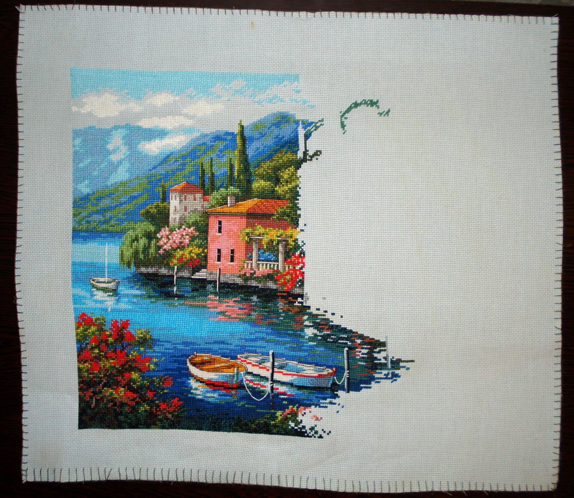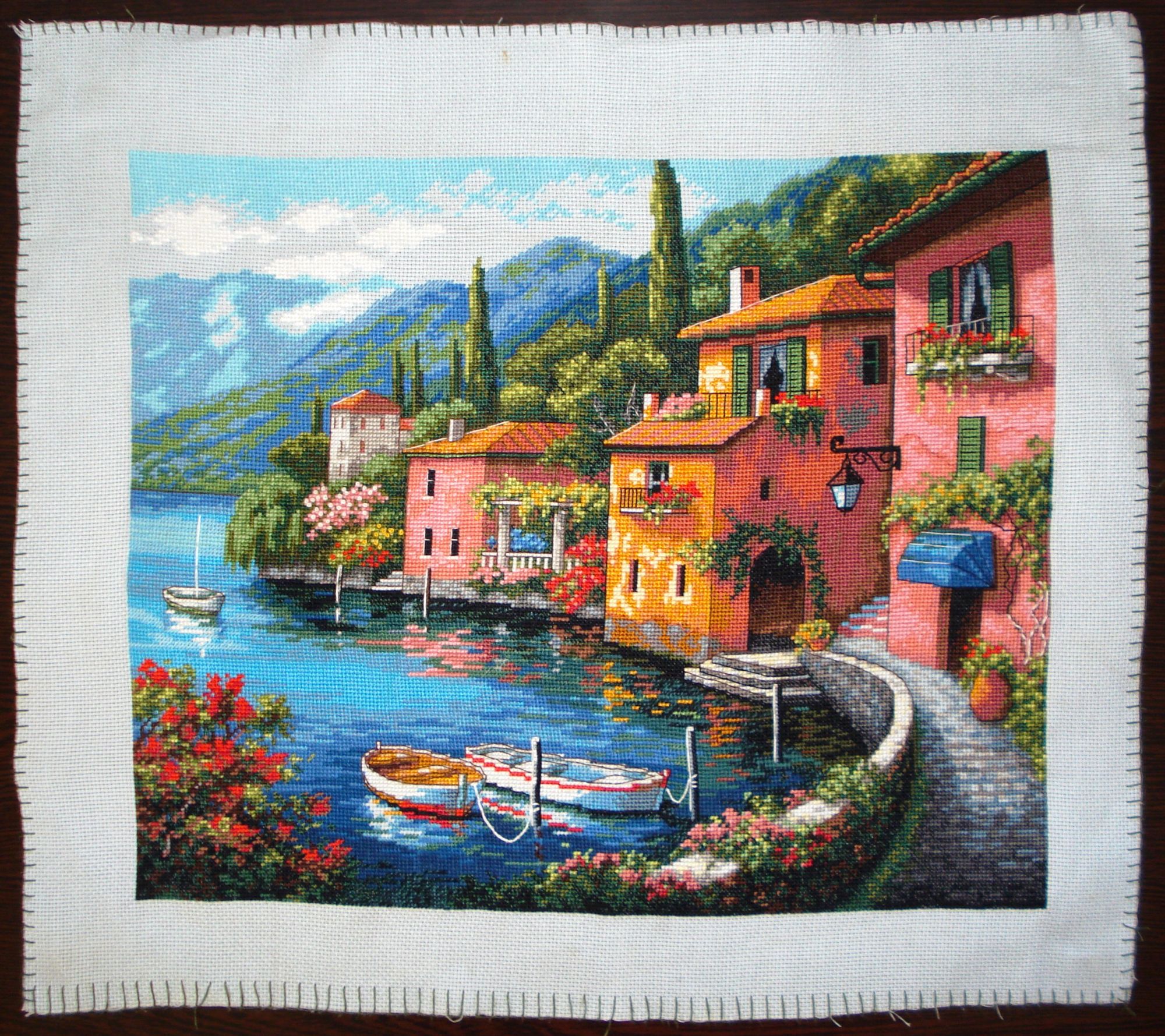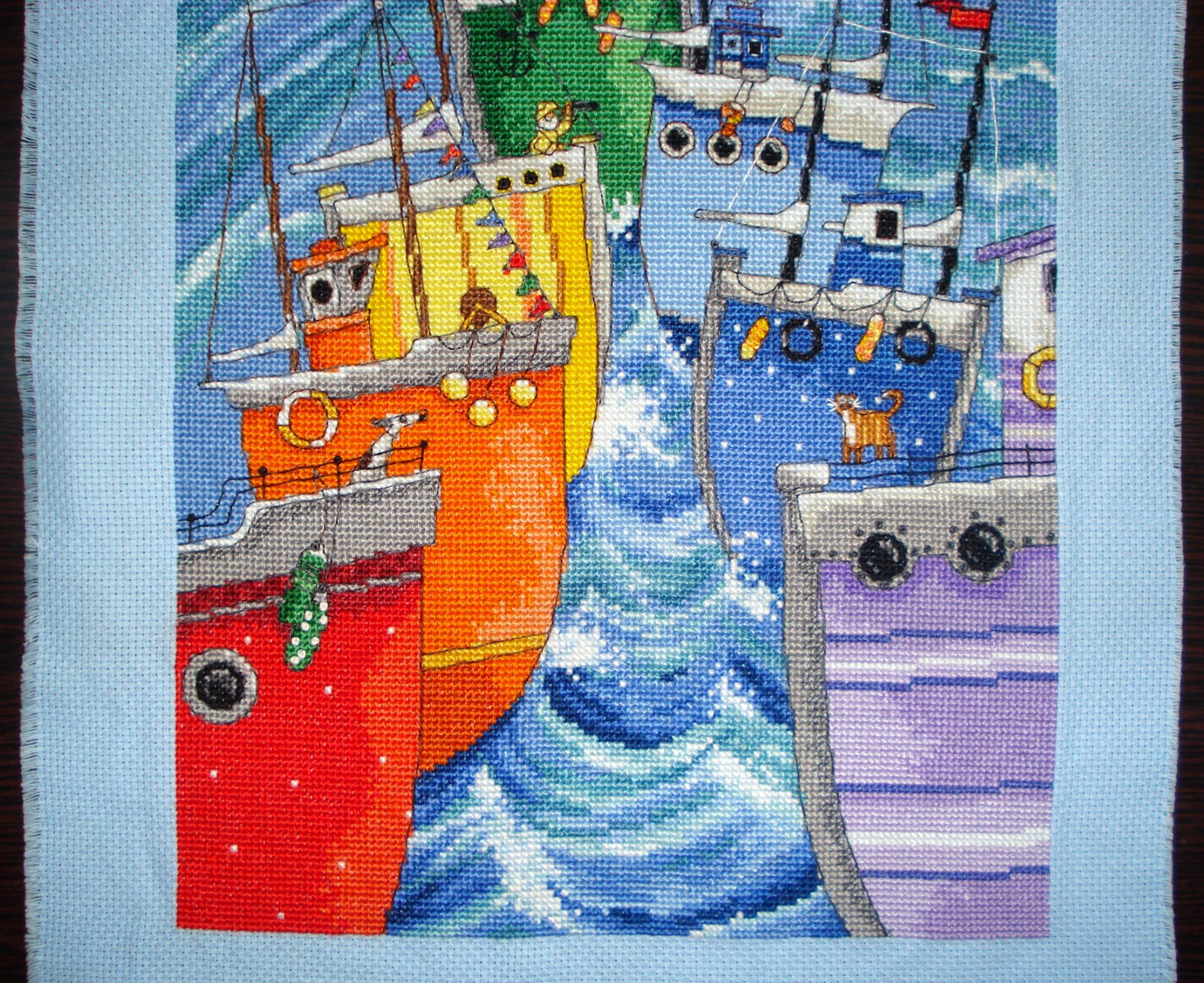 3 июля 2019 Даа, видимо, все-таки писать в свою тему я буду набегами. Зато мне есть что показать! Во-первых, я закончила свой радужный триптих от Анкора. Итак, радужная флотилия: Было: Стало: Горжусь собой, что выполнила весь бэк по схеме, все фрузелки, ничего не поменяла. Хотя было сложно. Немного протупила, что не заменила бэк на выкладную нить, когда делала канаты на корабликах, так было бы гармоничнее. Но в последующих работах исправилась и почти везде делала выкладную. Вторая работа - радужные сарайчики. Anchor PCE766 Rainbow Beach Huts, 20х30, аида 16, счетный крест И третья - самая простая благодаря минимальному бэку и большим участкам, которые зашиваются одним цветом, - радужные шезлонги. Anchor PCE767 Rainbow Deckchairs, 20х30, аида 16, счетный крест Триптих пока не оформлен, но я близка к этому! Самой не терпится увидеть это буйство цвета на стене. Во-вторых, затем я решила отдохнуть от анкоровского бэка и четверть крестиков и в качестве отдыхалочек вышила две подушки от Вервако. Vervaco PN-0153912 Цветочный рай I, 40х40, несчетный крест Vervaco PN-0154266 Цветочный рай II, 40х40, несчетный крест Прошу прощения, что во второй подушке забыла сфотографировать готовую вышивку, так хотелось побыстрее сшить из нее наволочку. И обе подушки вместе: Обратную сторону наволочек купила готовую, на молнии из польской ткани Polar молочного цвета. И в-третьих, наконец спустя столько лет я начала вышивать свой первый большой Димовский голд. Долго думала, не могла определиться с выбором, перебирала свои немаленькие закрома. Решила, что будет символично, если это будет также первый купленный мною Дим. Он ждал меня с 2012 года! Конечно, это моя любимая тема - пейзаж. Dimensions 35285 Lakeside Village, 38х30, аида 16, счетный крест До этого у Дима я вышивала только маленькие голдики 13х18 см, но после огромных (для меня) лукасовских мельниц 53х37 см волнения нет, уверена, что справлюсь легко. Тем более, что по сравнению с Анкором бэкстич здесь простой и легкий. Начала, как всегда, с левого верхнего угла. Было нудновато, пока не добралась до самого интересного - домиков. Скоро надо переставлять снапы, и я пока в раздумьях, в какую сторону двигаться дальше - в левый нижний угол или в правый верхний. Ну, там видно будет! Даже не знаю, когда напишу снова... Если посмотреть на периодичность моих сообщений, то, скорее всего, через полгода минимум. Юнона1960, ЛАДОМИРА, nata-g и 5 других сказали спасибо Поделиться сообщением Ссылка на сообщение