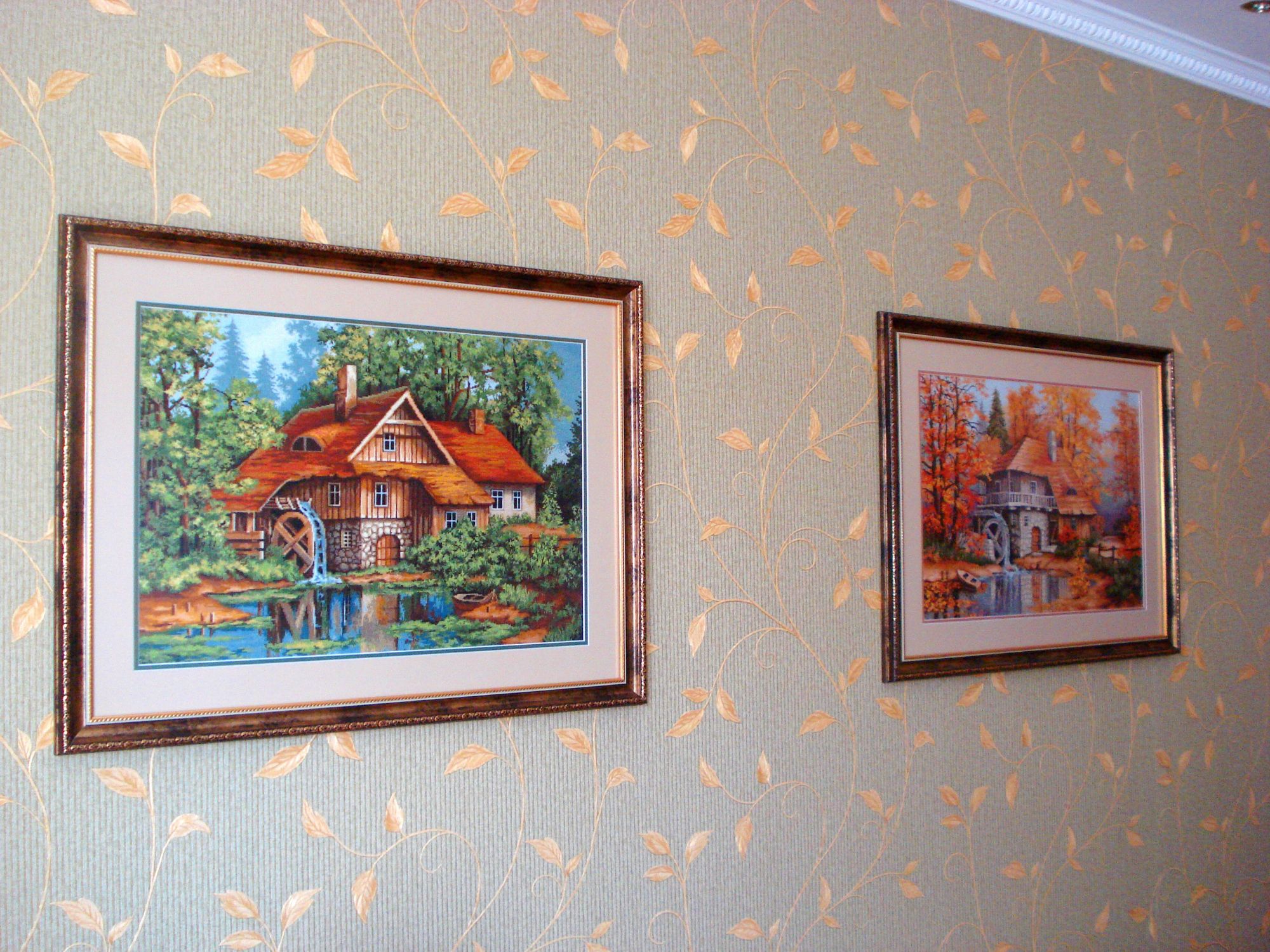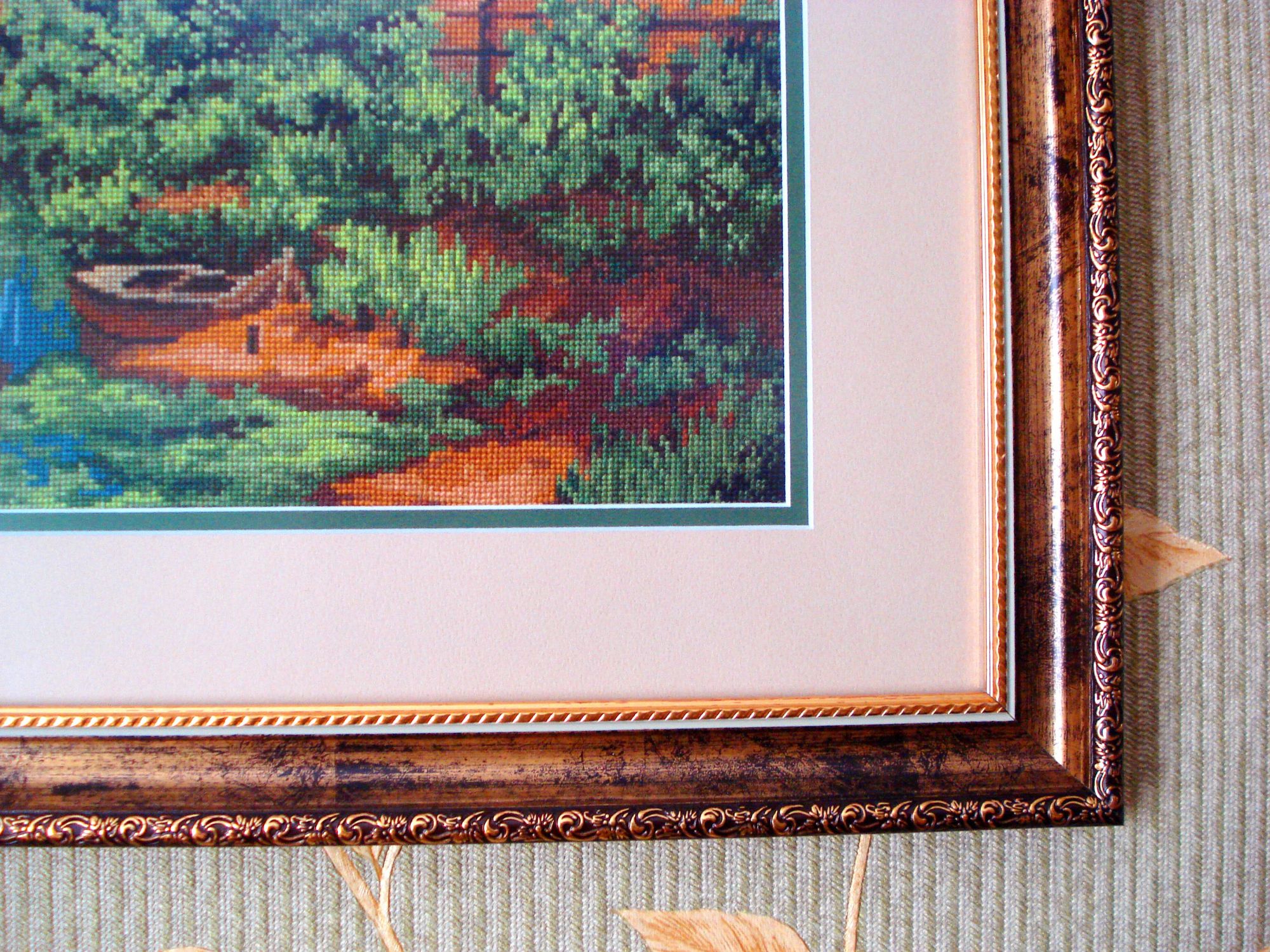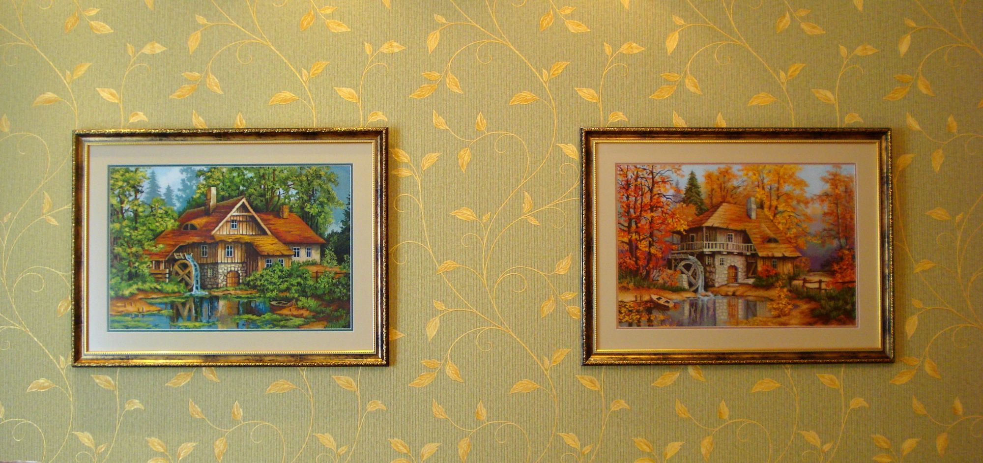 30 сентября 2019 Пришла показать долгожданное оформление моих долгостройных мельниц от Лука-С. Вот что получилось: Если честно, я не очень довольна фотографиями. Камера на телефоне и старенький фотоаппарат не передают в полной мере все то, что видно вживую. Поигралась с настройками в программе обработки фотографий, чтобы хотя бы приблизительно получить результат, приближенный к реальному. Итоговый размер обеих работ 70х52 см. Оформление было подобрать довольно сложно, так как изначально я обе работы хотела оформить одинаково и при этом вписать их в интерьер родительской квартиры (мельницы подарила маме на день рождения). Различия только в нижнем паспарту: у летней мельниц оно темно-зеленое, у осенней - темно-оранжевое. Багет коричневый с золотом и потертостями, верхнее паспарту сложного непонятного цвета, который при разном освещении выглядит по-разному (что-то светлое серо-бежевое). Тут косяк багетки. Я точно знаю, что верхнее паспарту выбрала намного светлее того варианта, который мне в итоге поставили. Возвращаться и исправлять ничего не стала, так как сразу подарила. Будет мне урок на будущее - проверять все артикулы сразу при приемке. И еще у меня небольшое продвижение по прибрежному городу от Дима - готова четверть работы. Дальше решила двигаться вниз и вышить левый нижний угол. Было: Стало: Leutnant Ripley, irchick2308, teresa и 4 других сказали спасибо Поделиться сообщением Ссылка на сообщение