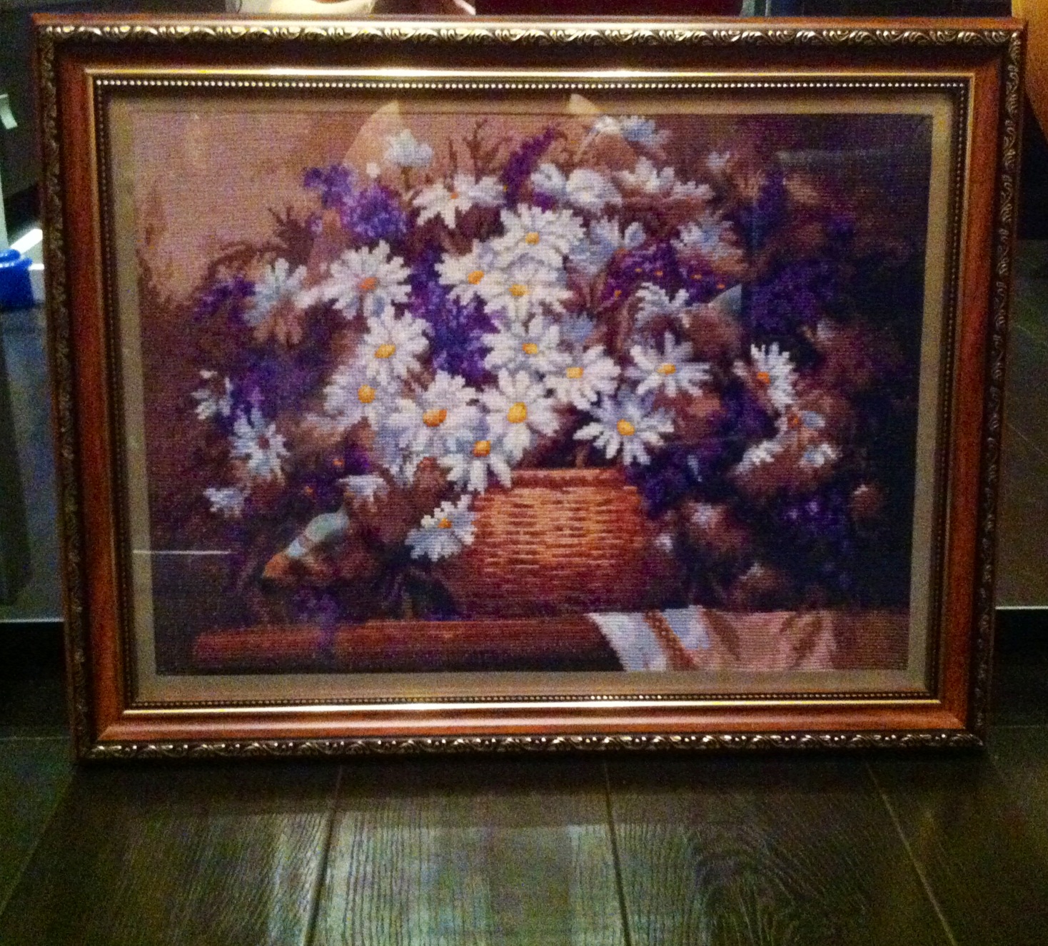 15 августа 2013 Оформила замечательно! Хорошо подобраны рамы и качественно сделано, паспарту удачное у ромашек Поделись секретами мастерства: натягивала как ? Оксаночка, спасибо) Про качество: я старалась, но главное, чтобы ничего лишнего в глаза не бросалось Паспарту- я 2 дня ломала голову, натягивала ромашки так, что картон трещал ))) но надо было что-то менять, т.к. рама была больше вышитой картины, моя мама нашла дома старые наборы цветного картона большого размера, цвета конечно там не ахти , но к моим ромашкам что- то подошло))) его даже картоном не поворачивается язык назвать, так, бумажка цветная... Натягивала так, покупала готовую раму, брала оттуда картон, обклеивала обратную сторону двусторонним скотчем, отмечала на вышивке места сгиба и соединяла вышивку с картоном, картон старалась немного согнуть, дабы натянуть вышивку на пять с плюсом)) можно еще пройтись, как я , мебельным степлером, если есть паспарту ) Воть) Ofelia сказал(а) спасибо Поделиться сообщением Ссылка на сообщение