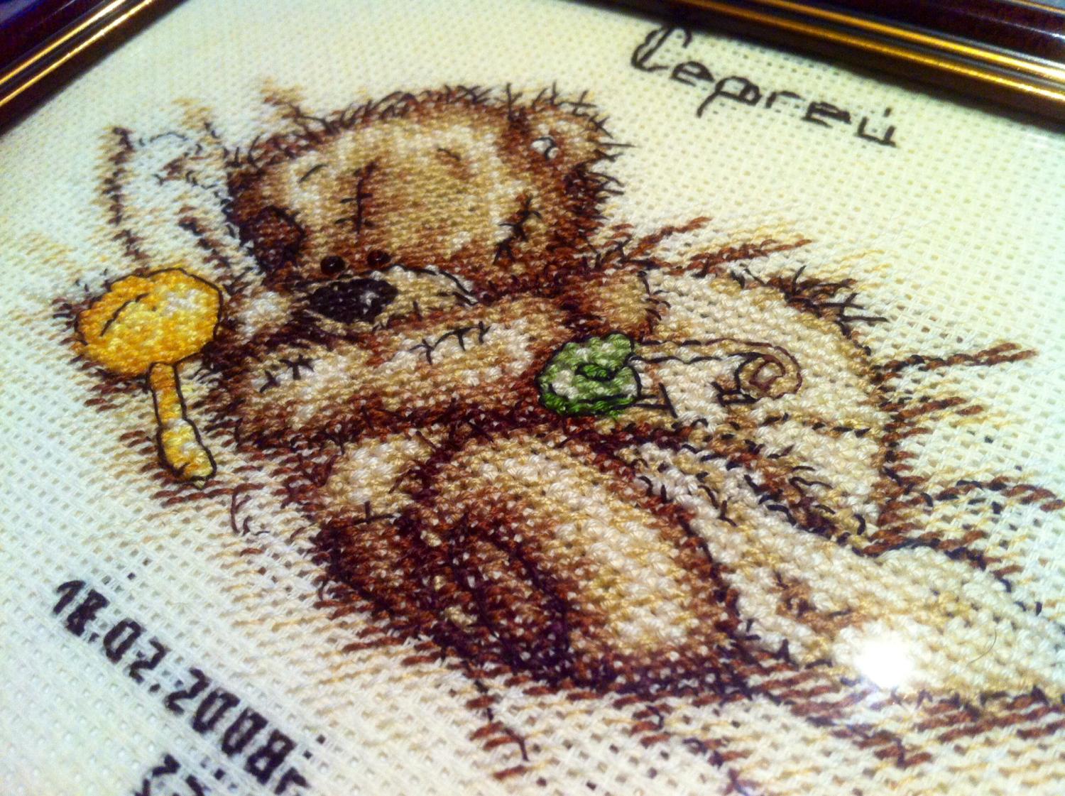 30 марта 2014 девочки, привет запылилась моя темка, вот пришла пыль стряхнуть) вчера встречались с подругами ( бывшие однокурсницы), чему была очень рада) ностальгия по колледжу, где проучились 4 года и там же подружились и решила оформить им маленькие презенты в виде мишек, один был почти готов на работе, а второго пришлось клепать за 3 дня и я справилась)))) итого: на неделе закончила 2 процесса вот завершенный процесс: было стало: готово: и новый и уже законченный процесс (фото для гаечки): на работе уже начала свадебную метрику, тоже Анкоровских мишек правда я уже от них устаю потихоньку... нашла в запасах немного серых оттенков и начала их в родных цветах: вот такие мишковые новости на этой неделе) Свадебная фотка приостановилась, с понедельника берусь за нее, надеюсь дней 10-14 мне хватит для ее завершения Nekleska, innesa, Tanya_RTK и 4 других сказали спасибо Поделиться сообщением Ссылка на сообщение